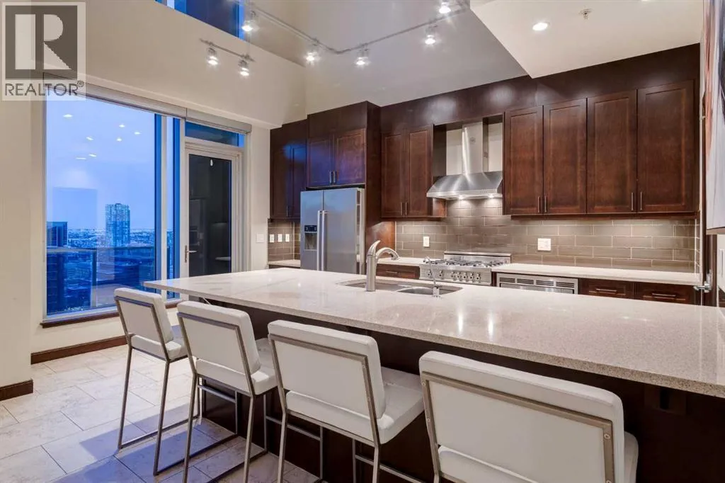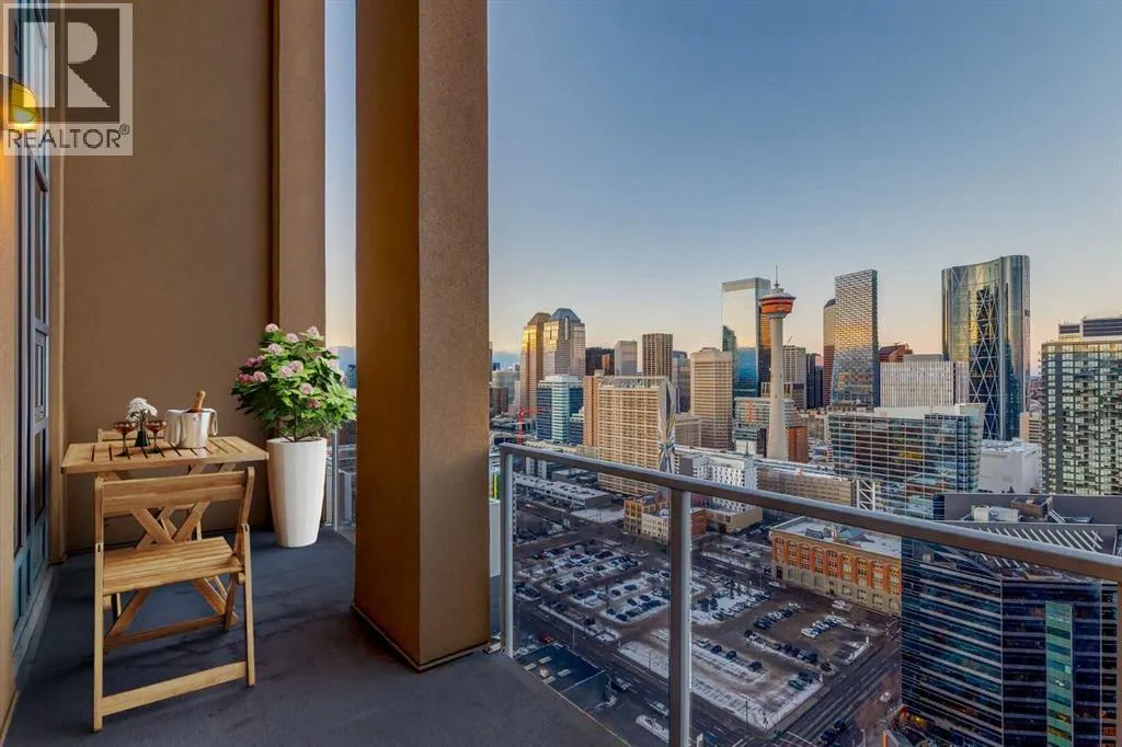 This Exceptional SUB-PENTHOUSE RESIDENCE in the BELTLINE is FIT for the next KING AND/OR QUEEN of the CASTLE on the 30th + 31st FLOOR!! With 1,192 SQ FT of REFINED LIVING across a 2-STOREY, 1 BED, 1.5 BATH EXECUTIVE LAYOUT, this home showcases an UPGRADED $25K HOME AUTOMATION SYSTEM, 2 OVERSIZED TITLED PARKING STALLS (YES - EVEN A ONE TON FITS), an ASSIGNED STORAGE UNIT, + access to PREMIUM BUILDING AMENITIES. Crafted for individuals who ASPIRE to a LUXURY-DRIVEN URBAN WAY OF LIVING, this residence offers a sophisticated MULTI-LEVEL EXPERIENCE w/ SOARING DOUBLE-HEIGHT CEILINGS, DRAMATIC FLOOR-TO-CEILING GLASS, and UNSTOPPABLE CITY VIEWS from SUNRISE TO NIGHTFALL.The main level opens with a WELCOMING FOYER, in-suite storage, + a 2 PC BATHROOM, all enhanced by HEATED PORCELAIN TILE FLOORS that elevate both comfort + style. The OPEN-CONCEPT LIVING ROOM is framed by TOWERING NORTH-FACING WINDOWS, while an INTEGRATED WET BAR elevates your ENTERTAINING EXPERIENCE - perfect for hosting Friends + Family. NATURAL LIGHT floods the space, highlighting the SEAMLESS CONNECTION between the living, dining, + kitchen areas. The CHEF-INSPIRED KITCHEN features a BERTAZZONI PROFESSIONAL SERIES GAS RANGE, BOSCH REFRIGERATOR, BOSCH BUILT-IN MICROWAVE, BOSCH DISHWASHER, sleek cabinetry, + a PANTRY WITH WOOD SHELVING for added functionality. Casual dining is easy at the BREAKFAST BAR. OVERSIZED GLASS DOORS open to a 20'10" x 6'5" PRIVATE BALCONY w/ GAS LINE - your front-row seat to PANORAMIC DOWNTOWN VIEWS, glowing sunsets, and Calgaryâs iconic skyline.The upper level is equally IMPRESSIVE, accessed via the OPEN STAIRCASE or directly from the 31 FLOOR through the unitâs PRIVATE 2nd LEVEL ENTRY - a RARE feature offering exceptional CONVENIENCE + PRIVACY. A WORK-FROM-HOME OFFICE NICHE sits at the landing + leads into the EXPANSIVE 21'11" x 14'4" PRIMARY BEDROOM - a TRANQUIL RETREAT w/ multiple LARGE WINDOWS, CUSTOM BUILT-INS, + plenty of space for a full suite of furnishings. The LUXURIOU S 5-PC ENSUITE boasts a DOUBLE VANITY, DEEP SOAKER TUB, WALK-IN SHOWER, + a HUMIDITY-SENSING FAN. UPPER-LEVEL LAUNDRY completes this thoughtful floorplan.Modern SMART-HOME ENHANCEMENTS include ALEXA-COMPATIBLE WI-FI SWITCHES, SMART SHADE OPENERS, SMART LOCK, + INDEPENDENT HEATING, COOLING, + IN-FLOOR HEATING for year-round personalized comfort. Residents of NUERA enjoy access to a STATE-OF-THE-ART FITNESS CENTRE, 24-HOUR SECURITY, CONCIERGE SERVICE, SECURE BIKE STORAGE, + beautifully maintained common areas. Ideally located in the heart of the BELTLINE, this residence delivers unmatched walkability to dining, shopping, entertainment, + transit - w/ effortless access to the C-TRAIN, Stampede Park, the Downtown Core, + major commuter routes.With its striking architectural design, premium finishes, intelligent layout, + BREATHTAKING VIEWS, this home stands as a TRUE EXECUTIVE-LEVEL RESIDENCE for the discerning buyer seeking LUXURY, SOPHISTICATION, + UNPARALLELED INNER-CITY LIVING. BOOK YOUR SHOWING TODAY!! (id:27476)