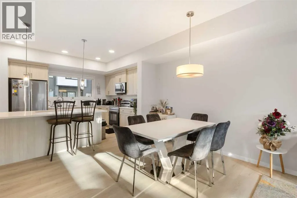 Tucked in the vibrant and family-oriented community of Seton in Southeast Calgary, this beautifully appointed 3-bedroom townhome offers an ideal balance of comfort and convenience.The main floor welcomes you with a bright open-concept layout, with an elegant kitchen featuring stylish and full height cabinetry, stainless steel appliances, modern countertops, and a tasteful backsplash. The extensive island transitions into a large dining room and a spacious living area, while a large south-facing window fills the space with natural sunlight throughout the day. Enjoy the peaceful view of the community from a 12â by 6â balcony. Just perfect for your relaxation and entertainment! Also on this floor, a bonus den/home office provides the perfect space for working from home or for extra family needs.Upstairs, the primary suite features a sizeable walk-in closet, a lush ensuite with a standing shower and double vanity. Two additional bedrooms (perfect for kids and guests), a 4-piece main bath, and a roomy laundry area adds convenience for family living.Park your car in the warm and safe double side by side garage, put on your walking shoes and step out to have a feel of the bespoke amenities and beautiful views outside your front door.Perfectly situated near the South Health Campus Hospital, top-rated schools, shopping, restaurants, and parks, this pet friendly complex offers the ideal balance of comfort, convenience and serenity.Youâll feel right at home in this spacious 1,814.96 Sq ft town home. (id:27476)