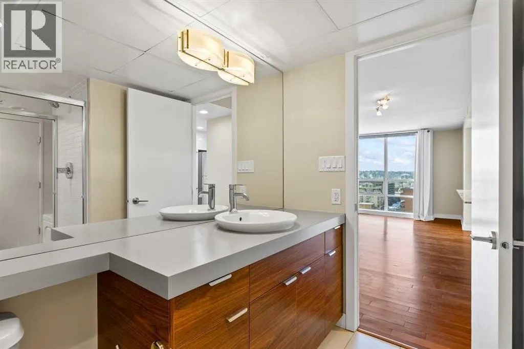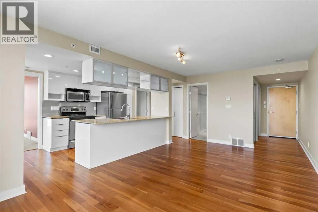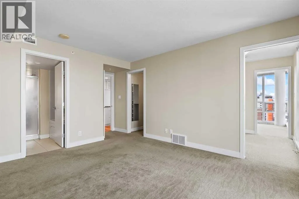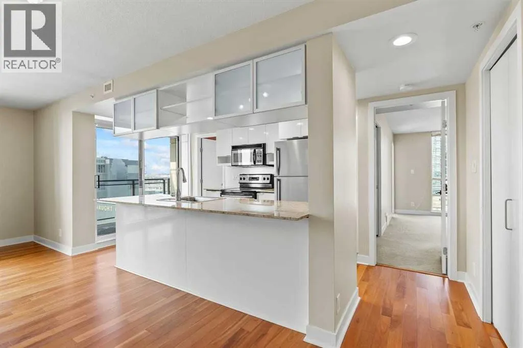 Experience refined living at Stella in this highly desirable 2-bedroom + den, 2-bath residence offering breathtaking, unobstructed downtown views from an exceptional 12th-floor corner location with floor-to-ceiling windows that flood the home with natural light. Concierge service welcomes you at the lobby, while a generous foyer leads to contemporary hardwood and tile flooring, complemented by warm, luxurious carpet in the bedrooms and custom California Closets throughout. The chef-inspired Ramsay kitchen overlooks the great room and features stainless steel appliances, high-gloss white cabinetry, granite countertops, and a large breakfast island, ideal for entertaining and everyday living. Recently replaced ST fridge and insuite stacked washer and dryer set are a true bonus. The primary and second bedrooms are thoughtfully separated by a private den with pocket-door access, and the well-designed ensuite offers a walk-through shower with convenient access to both bathrooms. Enjoy sweeping views of the Bow River Valley to the west, Nose Hill to the north, and downtown to the east, with a west-facing balcony showcasing stunning mountain vistas. Additional highlights include in-suite laundry, a heated underground parking stall (#207 on P2), a separate storage locker (#28), access to a fitness center and guest lounge, and excellent transit connectivity to all areas of the city - contemporary design and vibrant urban living truly define this exceptional home. Pets are allowed with approval. Drive buy 1110-11 St S.W. for your private showing (id:27476)