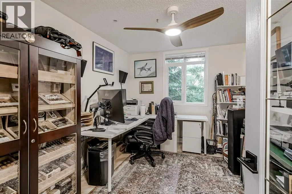 Experience the epitome of luxurious urban living in this stunning corner unit, perfectly positioned to offer breathtaking east, south, and west exposures that flood the space with natural sunlight. This spacious 2-bedroom, 2-bath residence features a versatile den, ideal for a home office or additional living space. Enjoy your mornings with a tree-top view through sun-filled windows that create a bright and inviting atmosphere.Recently upgraded with brand-new doors, trim, flooring, and lighting, this home exudes modern elegance. The large gourmet kitchen and full-sized dining area are perfect for entertaining guests, while the cozy living room with a gas fireplace provides a warm and inviting retreat after a long day. The spacious primary bedroom offers a king-sized layout, a generous walk-in closet, and an ensuite with double sinksâcombining comfort and luxury. The second bedroom also boasts ample closet space and a cheater door to the second bathroom. Convenience is unmatched with a full-sized washer and dryer, additional storage in the laundry room, and a separate storage room in the parkade. Two parking stallsâone titled and one rentedâadd to the practicality of this exceptional property.Don't miss the opportunity to call this stylish, move-in-ready home yours in a highly sought-after neighbourhood. Schedule your viewing today and enjoy the perfect blend of comfort, style, and location! (id:27476)