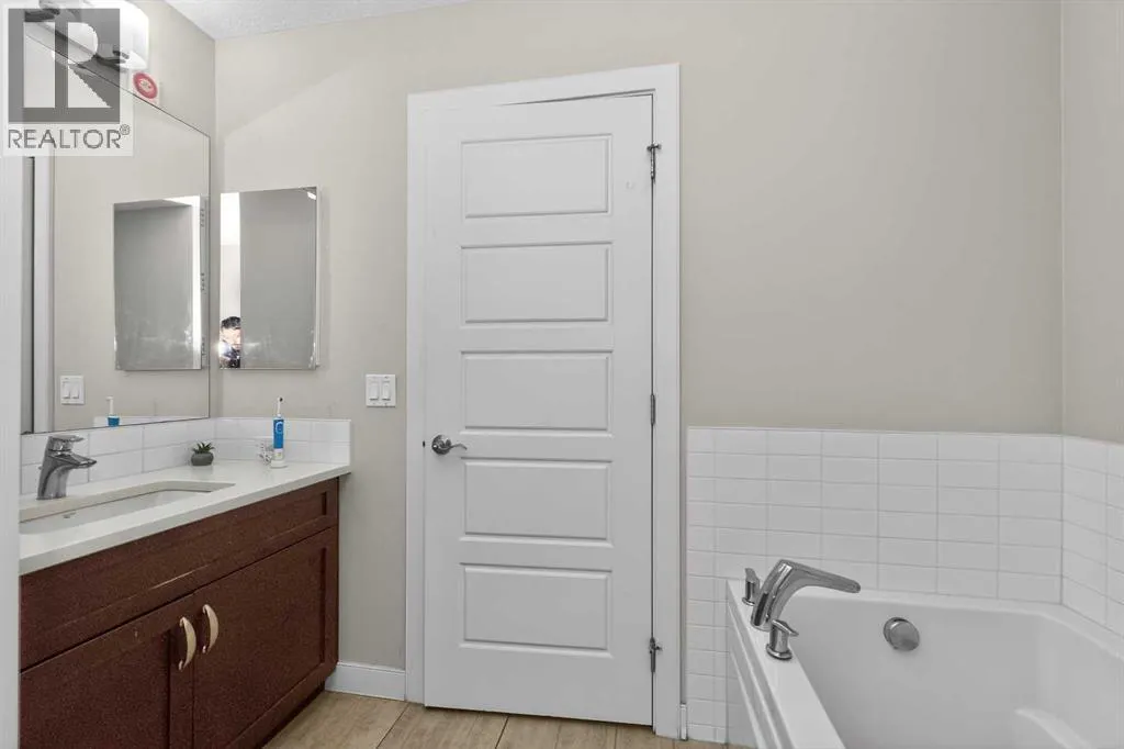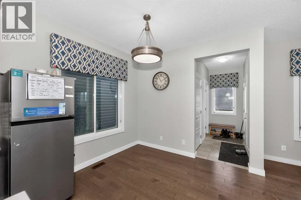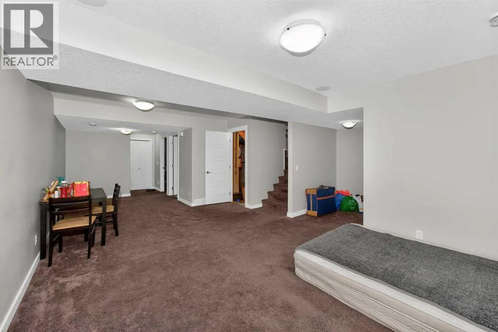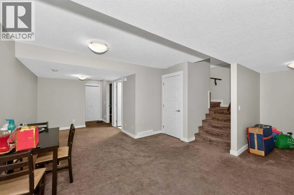 Discover this exceptional former showhome nestled in the highly desirable Cornerstone community, offering an impressive blend of space, upgrades, and location. This beautifully maintained residence features 5 bedrooms, 3.5 bathrooms, and a fully developed basement, providing approximately 2,513 sq. ft. of total living space. The home is fully air-conditioned and complemented by a spacious deck and a massive 25â x 23â double detached garage, ideal for parking, storage, and hobbies.Enjoy unmatched convenience with a playground just steps away and quick access to Stoney Trail, ensuring effortless commuting throughout the city. Upon entry, the home is filled with natural light streaming through expansive windows, creating a bright and welcoming ambiance. The main floor boasts 9-foot ceilings and offers two separate living areas, one enhanced by a gas fireplace, perfect for cozy evenings.Designed for both everyday living and entertaining, the open-concept kitchen showcases stainless steel appliances, including a gas cooktop, built-in oven, and microwave, along with a refrigerator and dishwasher. Elegant maple cabinetry, a pantry, and a large island featuring an undermount sink, wine storage, and additional cabinetry provide both beauty and functionality. Stylish pendant lighting, recessed lighting, and under-cabinet illumination complete the space.The main level is finished with hardwood flooring, while the staircases, upper floor, and basement are finished with soft carpeting for added comfort. Upstairs, the primary suite offers a private retreat with a custom built-in closet and a 4-piece ensuite featuring both a soaker tub and a separate standing shower. Three additional well-proportioned bedrooms and a full 4-piece main bathroom complete the upper level.The fully developed basement includes a large recreation area, ample storage, and a bedroom with a custom walk-in closet and a 3-piece ensuite, making it ideal for guests, extended family, or private use.Not able upgrades throughout the home include titanium wire shelving and railings, zebra blinds and window coverings, and a built-in speaker system. Security and peace of mind are enhanced with seven exterior security cameras and a Ring doorbell camera. An underground irrigation sprinkler system keeps the landscaping lush and well-maintained with ease.This remarkable property delivers comfort, functionality, and upscale finishes in a prime location. A rare opportunity not to be missedâbook your private showing today and experience everything this home has to offer. (id:27476)