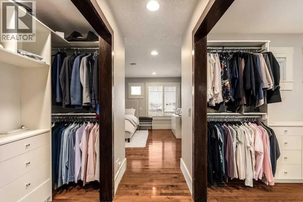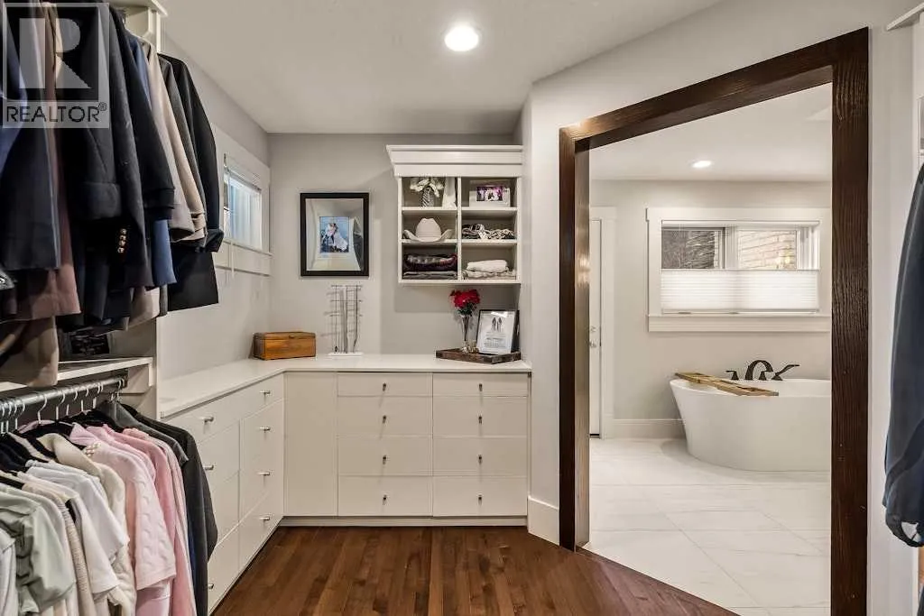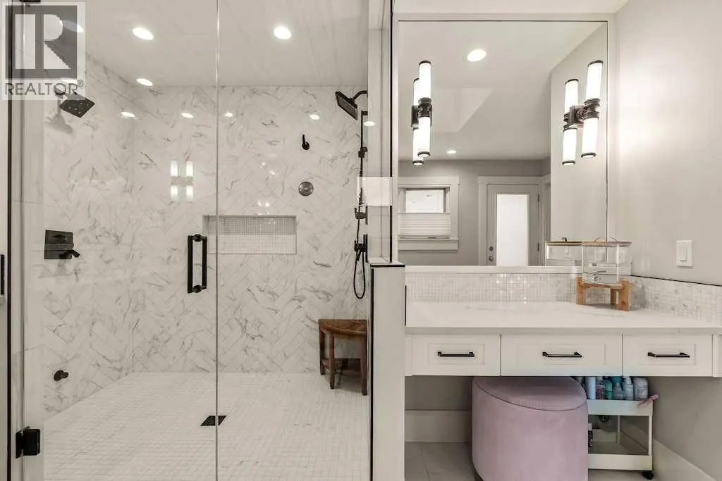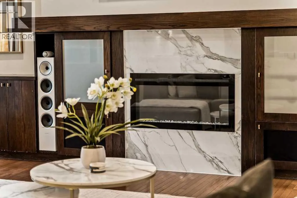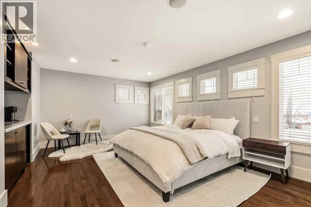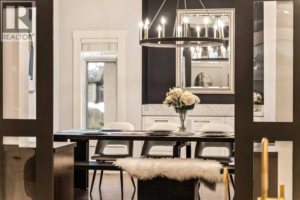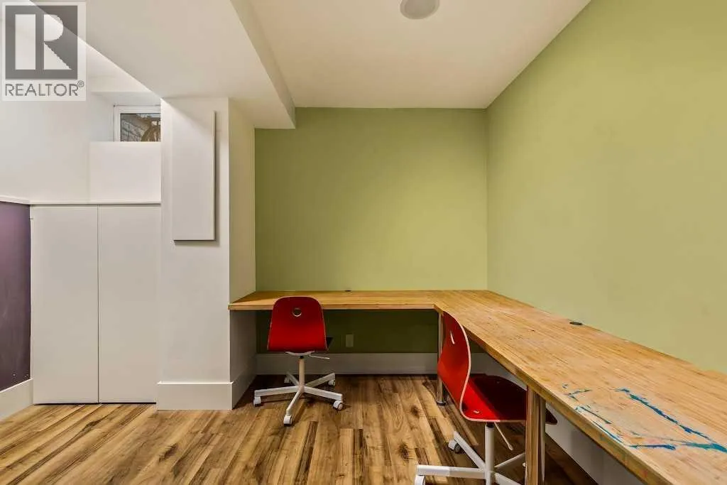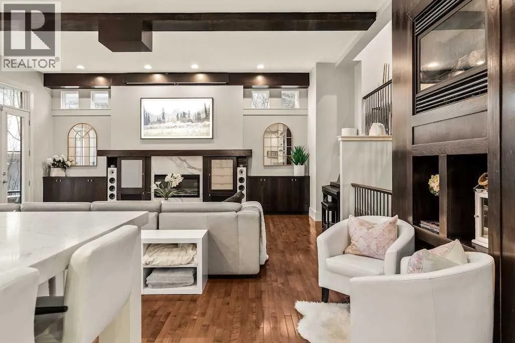 Extensively renovated and impeccably appointed, this architecturally striking five-level split is positioned on a quiet cul-de-sac in Signal Hill, offering almost 3,500sqft above grade and over 5,500sqft total, on a multi-tiered pie shaped lot with multiple outdoor living areas and mountain views. The heart of the home is a the huge custom created kitchen which has been thoughtfully renovated and designed with extensive built-ins, premium stone countertops with a 2.5" mitre edge, and a high-end appliance package including a 48" Monogram gas range, Miele dishwasher, separate built-in JennAir refrigerator and freezer units. A dedicated wine bar with custom cabinetry, new countertops, built-in wine fridge, floating shelves, and hanging wine rack seamlessly connects the kitchen to the dining and living spaces, making it ideal for both everyday living and entertaining. The main living areas are enhanced by custom millwork, updated lighting, and a new fireplace with tile surround, while the dining room features custom built-in cabinetry and lighting. The main floor also features a large private office, tastefully designed powder room, the spacious welcoming foyer, huge mudroom and access to the oversized attached garage. Ceiling heights add to the sense of scale, with approximately 13ft ceilings in the entry, 11ft ceilings on the main level, and 9ft ceilings in the basement. The upper level is anchored by a spacious primary retreat with coffee bar, two walk-in closets full of built-ins, access to the rooftop patio showcasing mountain views, and the ensuite complete with oversized double headed steam shower, dual vanity, heated tile, extra deep soaker tub and designated hair/makeup vanity. Two spacious additional bedrooms, connected by a jack-and-jill bathroom, as well as one of two laundry rooms complete this level. The basement rec room is wide-open and large enough to accommodate the needs of almost anything you can imagine, while still offering a designated gym space, arts&craft room, teen bedroom with its own hangout space, full bathroom, second laundry room and seemingly endless storage space. Practical upgrades include; Hunter Douglas blinds throughout, a radon mitigation system installed in 2022, a new furnace (2024), recently refinished roof top balcony with new TufDek waterproof vinyl decking and the addition of a new 8â x 8â patio door enhance flow to the huge outdoor space off the upper living/flex room. Outdoor living is a standout feature, offering multiple exterior spaces including a front porch with gas hookup, oversized entertaining deck, rooftop deck, fenced grass yard, and dedicated dog run. Located close to schools, parks, shopping, and westside amenities, this home represents a rare opportunity to own an extensively renovated, move-in-ready property in one of Calgaryâs most established communities. (id:27476)