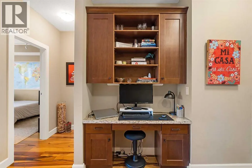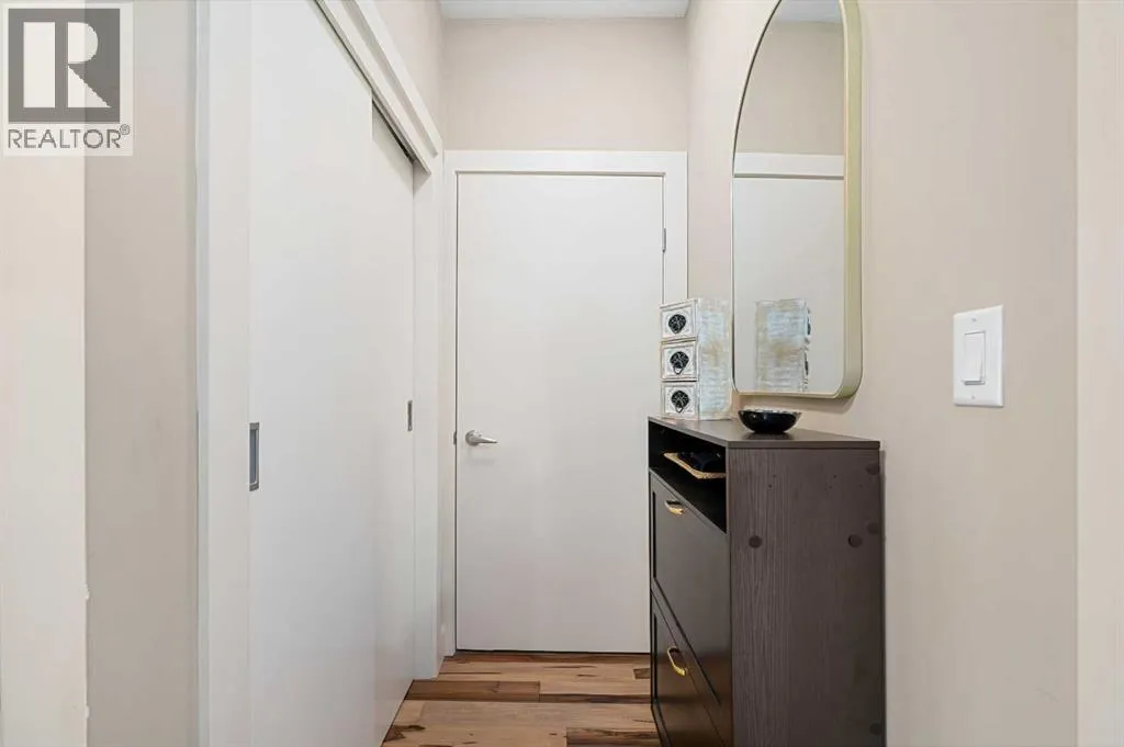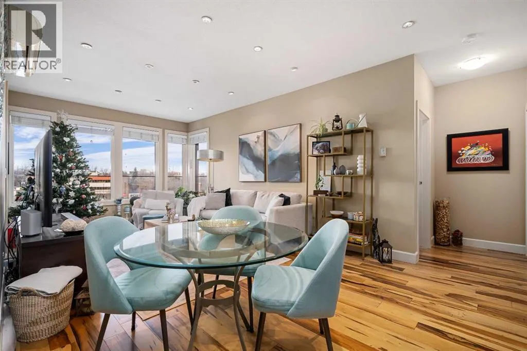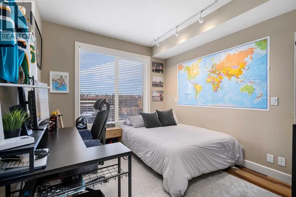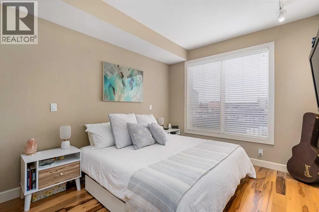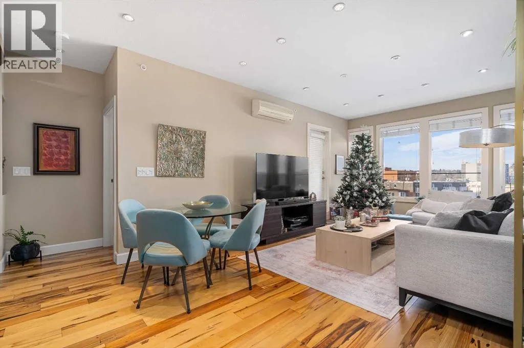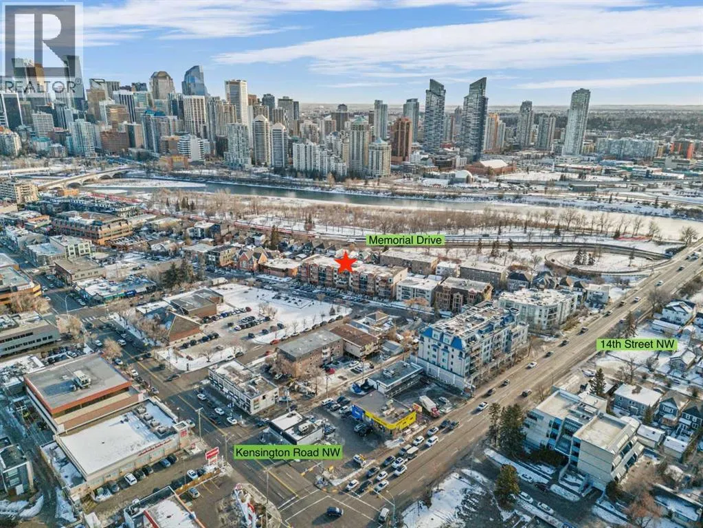 Welcome to this top floor condo in Providence Kensington, ideally located in the heart of Hillhurst, one of Calgaryâs most desirable inner city communities. This beautifully maintained 2 bedroom, 2 bathroom condominium offers executive finishes, a functional open-concept layout, and an unbeatable walkable lifestyle, just steps from Kensington shops and restaurants, the Bow River pathway system, public transit, and downtown Calgary. The interior features 9 foot ceilings, Brazilian Tigerwood hardwood flooring, air conditioning, and a warm, modern neutral colour palette. The chef-inspired kitchen is both stylish and practical with walnut cabinetry, granite countertops, stainless steel appliances, a natural gas stove, corner pantry, and an island with breakfast bar, perfect for entertaining. The refrigerator, washer, dryer, and kitchen faucet are all under one year old, offering added value and peace of mind for the next owner. The bright living room opens to a spacious north facing balcony with tranquil views overlooking the St. John Centre and surrounding green space. The thoughtfully designed floor plan places the bedrooms on opposite sides of the unit, ideal for privacy, guests, or a work-from-home setup. The primary bedroom retreat includes a walk-through closet and a generous 5-piece ensuite with dual sinks and an oversized walk-in shower. The second bedroom features a walk-in closet and is conveniently located next to the 4 piece bathroom and insuite laundry. Additional features include one titled underground parking stall, a dedicated storage locker, access to a fitness centre, and a secure bicycle storage room. North facing, top floor condos in Providence Kensington rarely come to market, making this a fantastic opportunity for professionals, downsizers, or investors seeking a premium inner-city Calgary condo. Donât miss your chance to own in one of Calgaryâs most vibrant communities! (id:27476)