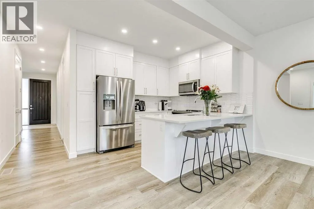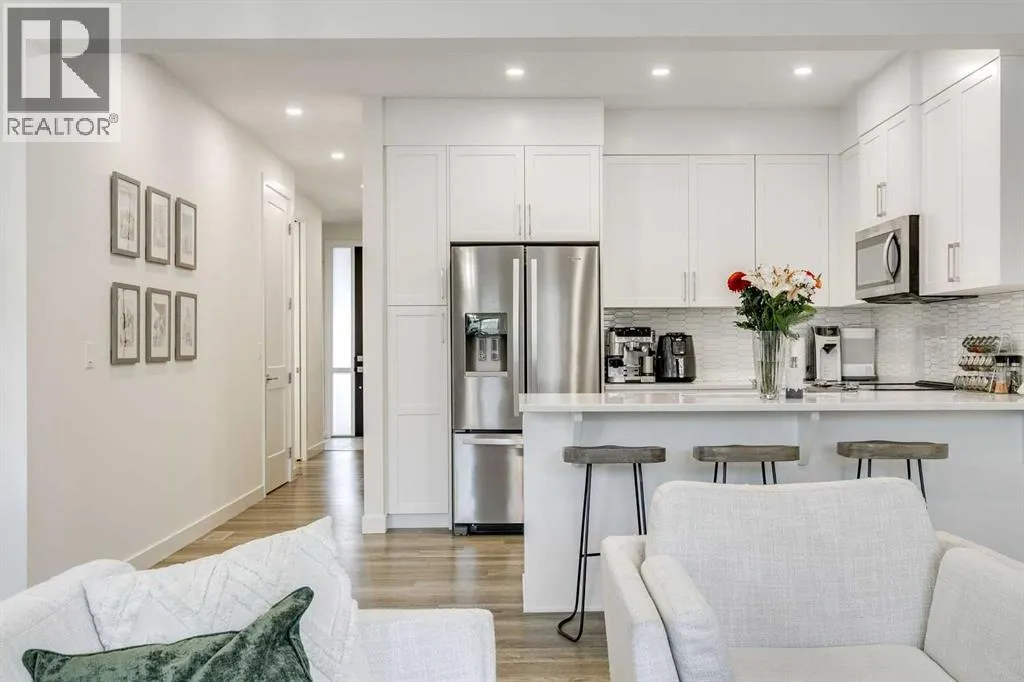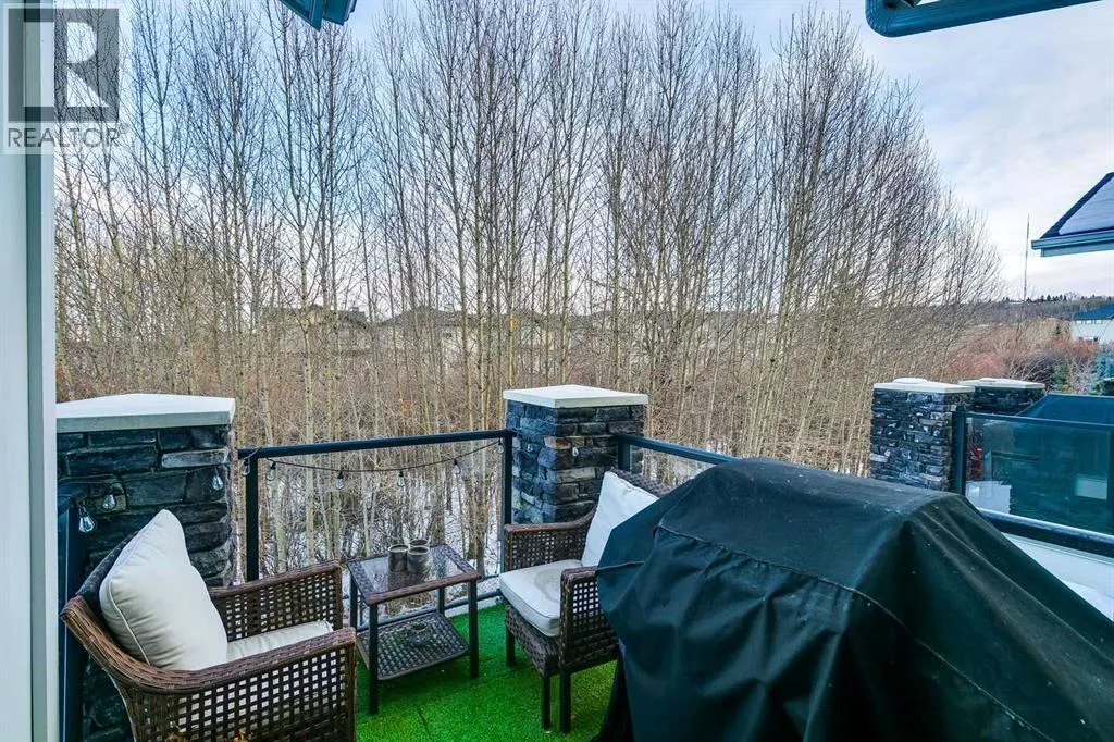Here it is! Exceptionally private and quiet ravine-backing home. Original owners have meticulously maintained this home, it's in excellent condition. Rare corner unit offering extra privacy, more natural light, and fewer shared walls. The ravine offers an extremely private and quiet setting with peaceful views and no neighbours behind. Fully-developed walk-out basement with a private concrete patio â ideal for additional living space, a home office, or guest suite. 1,470 sq. ft. above grade, plus a fully developed basement with an additional 543 sq. ft.; over 2000 developed. Basement includes a 4-piece bathroom. 9-foot ceilings throughout the main living areas with a modern, open-concept design. Vaulted ceilings in the primary bedroom, creating a bright and spacious retreat, and includes a private ensuite washroom with dual sinks. Large windows throughout the home, flooding the space with abundant natural light. Extra-large single attached garage with more than sufficient space for storage. Upgrades include: bright lighting throughout the home, kitchen cabinets and backsplash, stair railing, quartz countertops in the kitchen and all washrooms, modern appliances and more. Neutral, clean colours throughout, making it easy to decorate or maintain a modern design. Backing onto natural green space with two scenic ponds just steps away, perfect for walks or biking with extensive trails nearby, ideal for families, pet owners, and outdoor enthusiasts. Located in the highly family-friendly Crestmont community, known for its welcoming atmosphere; multiple playgrounds, and a shared community centre hosting regular events and activities, including a playground and a splash-park. Daycare and local shops just a 1-minute walk away, offering unmatched convenience. Multiple quick and easy access points to Highway 1, making mountain getaways effortless. Canmore in under 1 hour, Bragg Creek in under 30 minutes. Winsport just minutes away. Proactive condo board. Condo management handle s snow removal and landscaping year-round, doing an excellent and timely job, always completing tasks as soon as possible. Extremely low utility bills thanks to ultra-efficient heating, insulation, and an HRV system. High-capacity water softener included. Rough-in for air conditioning already in place. Visitor parking available for friends and family. Gas BBQ hookup on the upper balcony. Lower walk-out patio on a private concrete pad, ideal for relaxing while enjoying the ravineâs privacy and quiet. (id:27476)