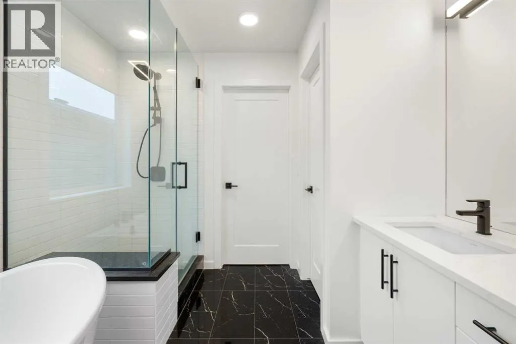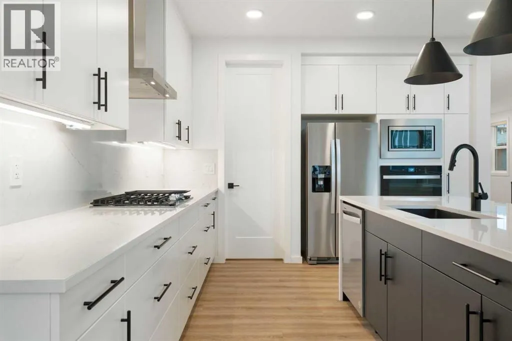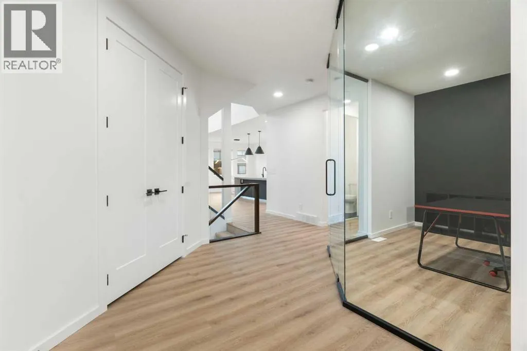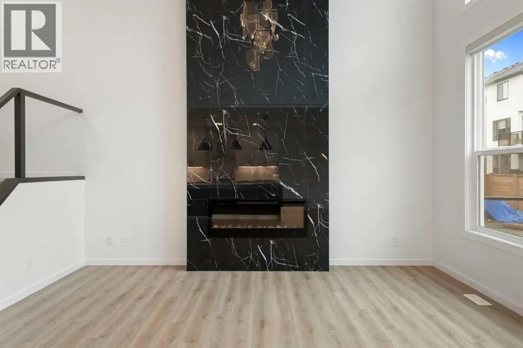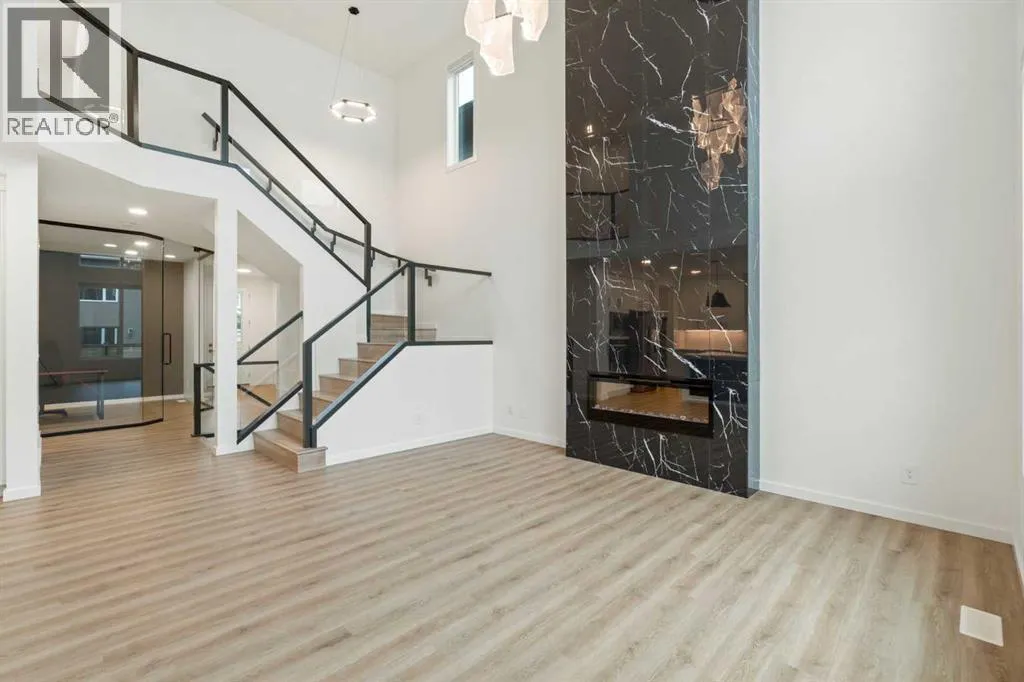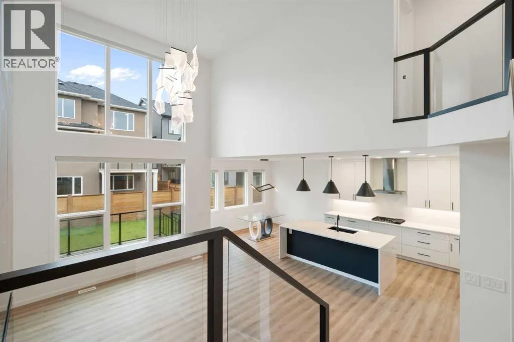 Aspen Spring Estates | 4+1 Bedrooms | 3.5 Bathrooms | 2,380+ Sq Ft Above Grade Welcome to this beautifully upgraded home in the prestigious Aspen Spring Estates of Springbank Hillâwhere refined design, everyday functionality, and an unbeatable location come together effortlessly. With over 2,380 sq. ft. above grade and a fully finished basement, this home offers the perfect blend of style and space for todayâs modern family.From the moment you step inside, youâre greeted by a bright, open-concept floor plan highlighted by soaring ceilings, expansive windows, and sleek contemporary finishes. The main level includes a stylish glass-enclosed home officeâperfect for remote work or homeworkâand a spacious great room anchored by a dramatic two-storey black marble feature wall. Luxury vinyl plank flooring adds both beauty and durability throughout.The chef-inspired kitchen is a true showstopper, featuring a large waterfall island with quartz counters, a built-in wall oven and microwave, gas cooktop, designer lighting, and ample two-tone cabinetry. The seamless flow between the kitchen, dining, and living spaces makes entertaining and everyday living effortless.Upstairs, discover four spacious bedrooms, including a luxurious primary suite with a walk-in closet and spa-style ensuite complete with dual vanities and a modern soaker tub. A generous laundry room and an additional full bathroom provide extra convenience.The fully developed basement offers even more living space, with a large rec room, fifth bedroom, full bathroom, and ample storageâideal for extended family, guests, or rental potential.Step outside into your private backyard featuring a large deck with elegant glass railingsâperfect for summer gatherings or quiet evenings. Additional highlights include a double attached garage and a mudroom with custom built-ins for daily practicality.Located steps from scenic walking paths, Pond, lush green spaces, and just minutes from top-rated schools, the LRT, Westside Rec Centre, and upscale shopping and diningâthis home truly has it all.Donât miss your chance to own this move-in-ready designer home in one of Calgaryâs most coveted communities. Book your private tour todayâopportunities like this are rare. (id:27476)