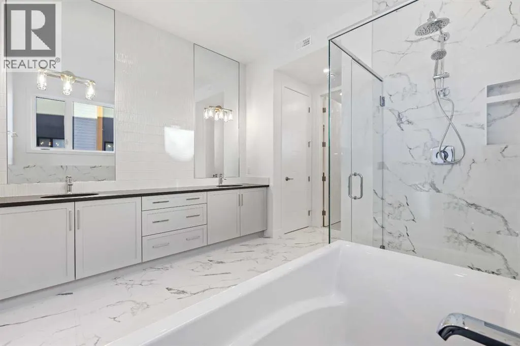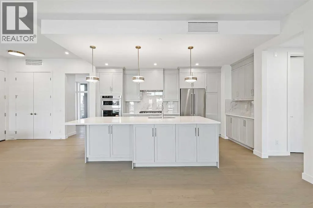 The Streams of Lake Mahogany present an elevated single-level lifestyle in our stunning Reflection Estate homes situated on the park Side on Mahogany Lake. Selected carefully from the best-selling, renowned Westman Village Community, you will discover THE CASCADE, a home crafted for the most discerning buyer, offering a curated space to enjoy and appreciate the hand-selected luxury of a resort-style lifestyle while providing a maintenance-free opportunity to lock and leave. Step into an expansive 1700+ builders sq ft stunning home overlooking a gorgeous greenspace adjacent to Mahogany Lake featuring a thoughtfully designed open floor plan inviting an abundance of natural daylight with soaring 10-foot ceilings and oversized windows. The centralized living area, ideal for entertaining, offers a Built-in KitchenAid sleek stainless steel package with French Door Refrigerator and internal ice maker and water dispenser, a 36" gas cooktop, a dishwasher with a stainless steel interior, and a 30-inch wall oven with microwave; all nicely complemented by an Elevated DRIZZLE Color Palette. All feature stunning Quartz countertops. You will enjoy two beautiful bedrooms, a generous central living area, with the Primary Suite featuring a spacious 5-piece oasis-like ensuite with dual vanities, a large soaker tub, a stand-alone shower, and a generous walk-in closet. The Primary Suite and main living area step out to a 39 ft x 15 ft terrace with a lovely view of the greenspace. Yours to enjoy and soak in every single day. To complete the package, you have a sizeable office area adjacent to the spacious laundry room, and a double-attached heated garage with a full-width driveway. Custom additions to this home include under-cabinet lighting, an upgraded Moen plumbing fixture package, air conditioning, a convenient laundry room with a folding table, a stunning electric fireplace, and an expansive covered terrace with access from the Living Room, Dining Room, and owner's suite. Jayman's s tandard inclusions feature their trademark Core Performance, which includes Solar Panels, Built Green Canada Standard with an Energuide rating, UVC Ultraviolet light air purification system, high-efficiency heat pump for air conditioning, forced air fan coil hydronic heating system, active heat recovery ventilator, Navien-brand tankless hot water heater, triple pane windows and smart home technology solutions. Enjoy Calgaryâs largest lake, with 21 more acres of beach area than any other community. (id:27476)