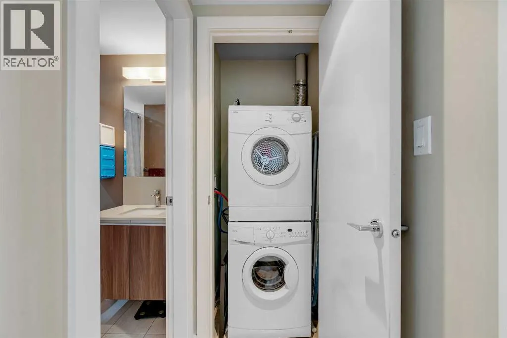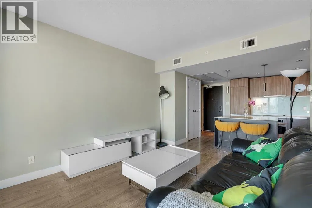 THE ABSOLUTE BEST DEAL IN GAURDIAN TOWERS | CALGARYâS TALLEST RESIDENTIAL TOWER | 1 BEDROOM WITH TITLED PARKING | CITY VIEWS | Located in the heart of the Beltline, this one bedroom residence in The Guardian offers sleek modern living with panoramic city views to the North and West (not facing the other tower). The open concept layout is smartly designed with floor to ceiling windows that flood the space with natural light and connect to a private balcony perfect for morning coffee or evening sunsets. The kitchen is finished with quartz counters, glass tile backsplash, and integrated appliances for a clean contemporary look, while the living and dining area flow seamlessly for everyday living. The bedroom includes a generous closet and the four piece bathroom is finished with modern fixtures and tile. In suite laundry and a titled underground parking stall provide everyday convenience. Residents of The Guardian enjoy premium amenities including a fully equipped fitness centre, social lounge with kitchen, party and recreation rooms, workshop, and concierge with 24 hour security. Just steps to Stampede Park, the BMO Centre, C Train, restaurants, shops, and entertainment, this home is ideal for first time buyers, young professionals, or investors looking for a prime downtown location. (id:27476)
