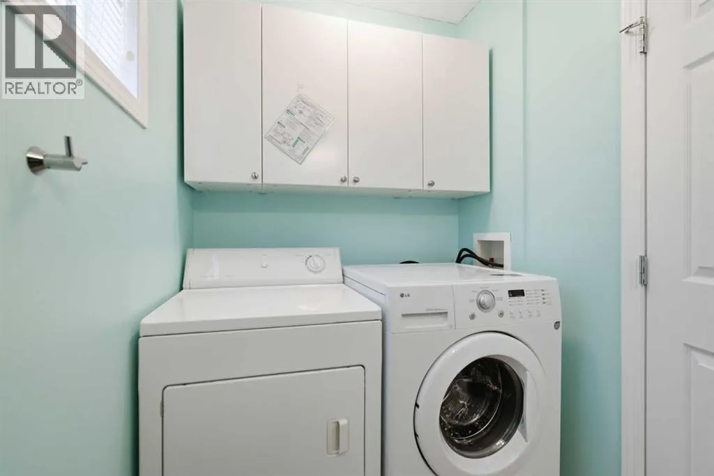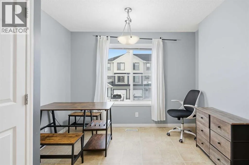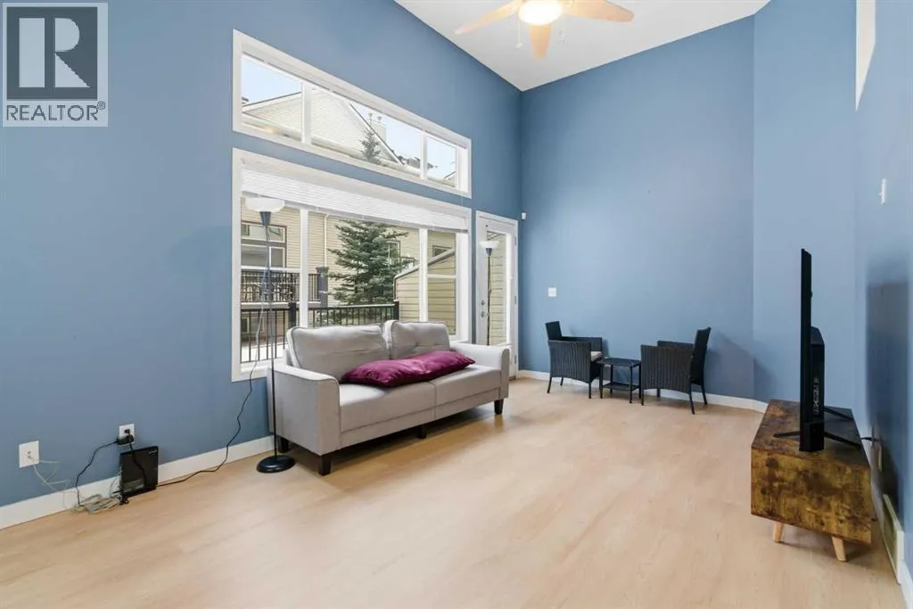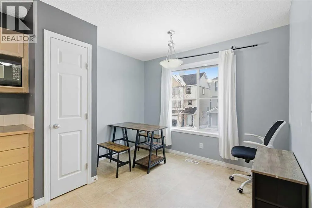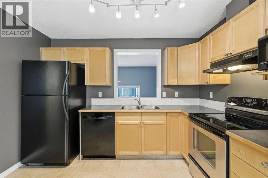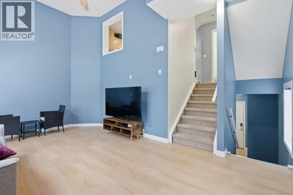 Beautiful sunny end-unit townhome located steps from Fish Creek Park. This low-maintenance townhouse backs onto a green space and features a private deck. The oversized living room offers 14-ft ceilings and tall windows for excellent natural light. Spacious kitchen with maple cabinets, upgraded laminate flooring, black appliances, and a bright breakfast nook.The home includes two primary suites, each with large closets and private ensuites. The lower-level flex space is ideal for a family room, office, gym, or playroom. Attached single garage plus driveway parking. Small pets allowed. Easy access in and out of the complex. (id:27476)