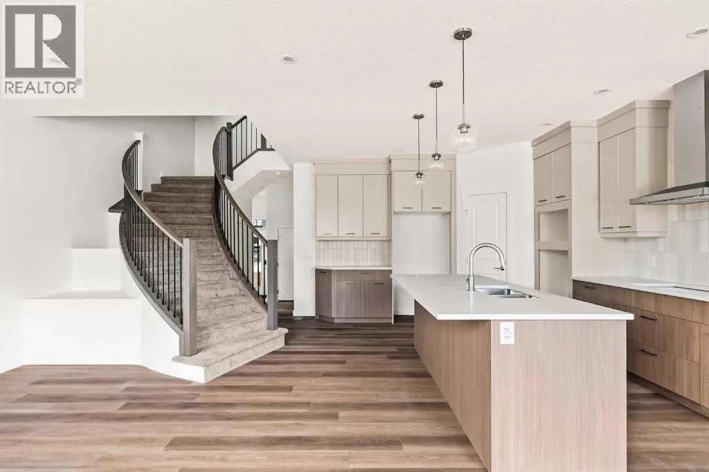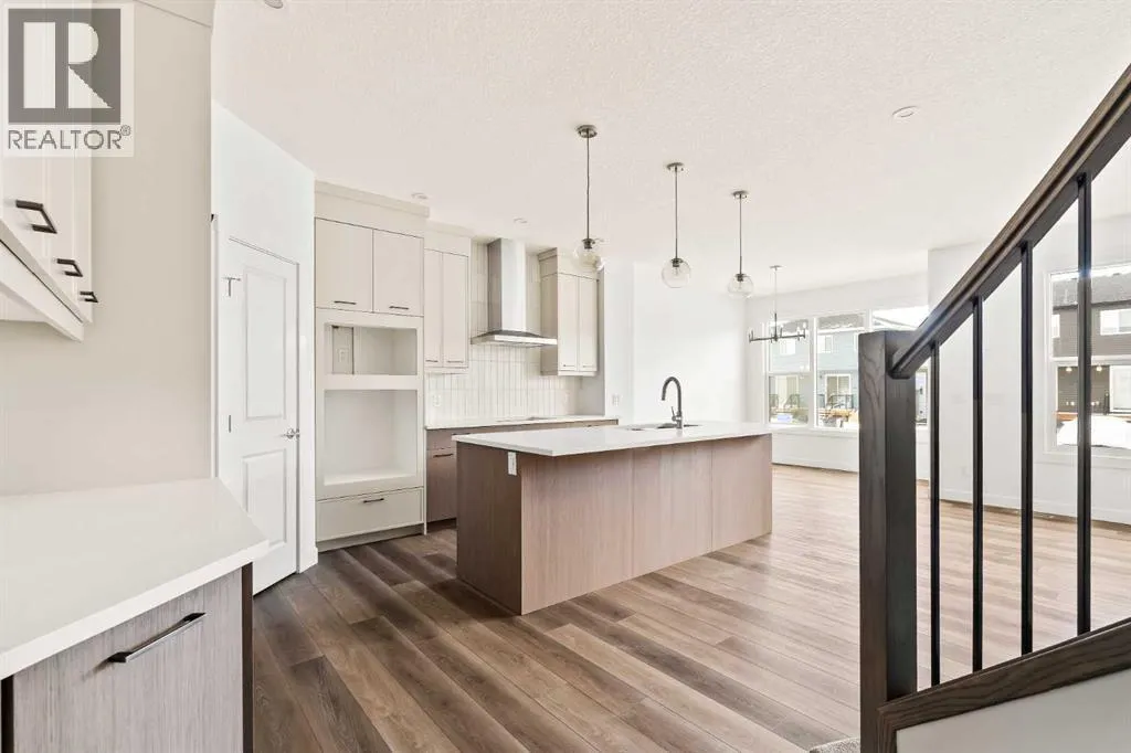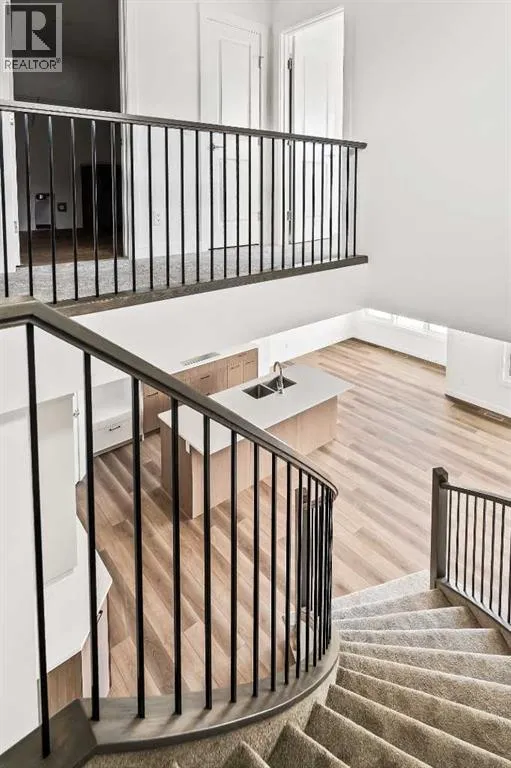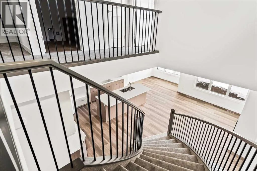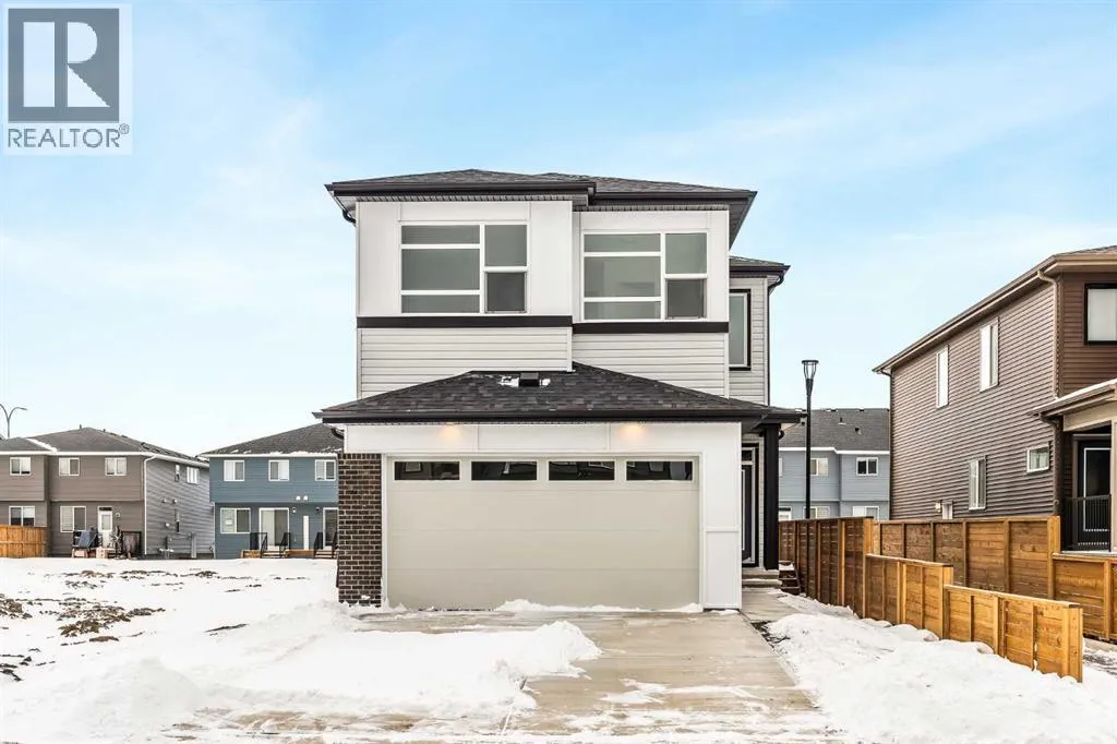 Introducing the Robson 24 by Brookfield Residential - a beautifully designed, fully move-in ready family home showcasing the modern Prairie elevation and situated on a large conventional lot (not zero lot line)! Thoughtfully planned with over 2,200 sq. ft. of developed living space above grade, this home perfectly blends style, function, and flexibility for todayâs family lifestyle. The grand front foyer welcomes you with a sense of space and light, while the open-concept layout ensures seamless flow between the living, dining, and kitchen areas. The main level offers a spacious living area with a design that is perfect for entertaining. The kitchen is complete with an upgraded appliance package including a built-in chimney hood fan, built-in oven & microwave and a gas cooktop. The kitchen overlooks both the living and dining areas with a central fireplace in the great room providing the perfect space for cozy winter nights. A wall of windows across the back of the home allows for natural light from the west-facing backyard to flood the space with sunshine all day long. The main level is complete with a bedroom and full bathroom - perfect for a guest room, multi-generational living or easily can be converted to a home office space. At the heart of the home, a striking spiral staircase becomes an architectural centerpiece - a rare design feature that elevates this home beyond the ordinary. Upstairs, the curved staircase leads to a central bonus room that smartly separates the primary suite from the secondary bedrooms, offering privacy and a natural flow to the upper level. The primary retreat features a spa-inspired 5-piece ensuite with a private water closet, dual sinks, a soaker tub, and a walk-in shower, along with an expansive walk-in closet. Two additional bedrooms, a full bathroom, and a convenient upper-floor laundry room complete the second level. The undeveloped basement offers a private side entrance and awaits your creative vision - perfect for a future le gal suite (subject to municipal approval), home gym, or media space with 9' foundation walls making development that much easier for a brighter and more open space. Laundry rough-ins with sink hookups are already in place for added convenience. Outside, the west-facing backyard is ideal for soaking up the sun and provides the perfect outdoor retreat while keeping the main living areas bright year-round. Situated on a large conventional lot, this home has a traditional side yard and offers an incredible outdoor living space. Backed by Brookfieldâs comprehensive builder warranty and the Alberta New Home Warranty Program, this brand-new home allows you to purchase with complete confidence. With its timeless finishes, distinctive architectural details, and move-in-ready convenience, the Robson 24 is truly the perfect place to call home. (id:27476)