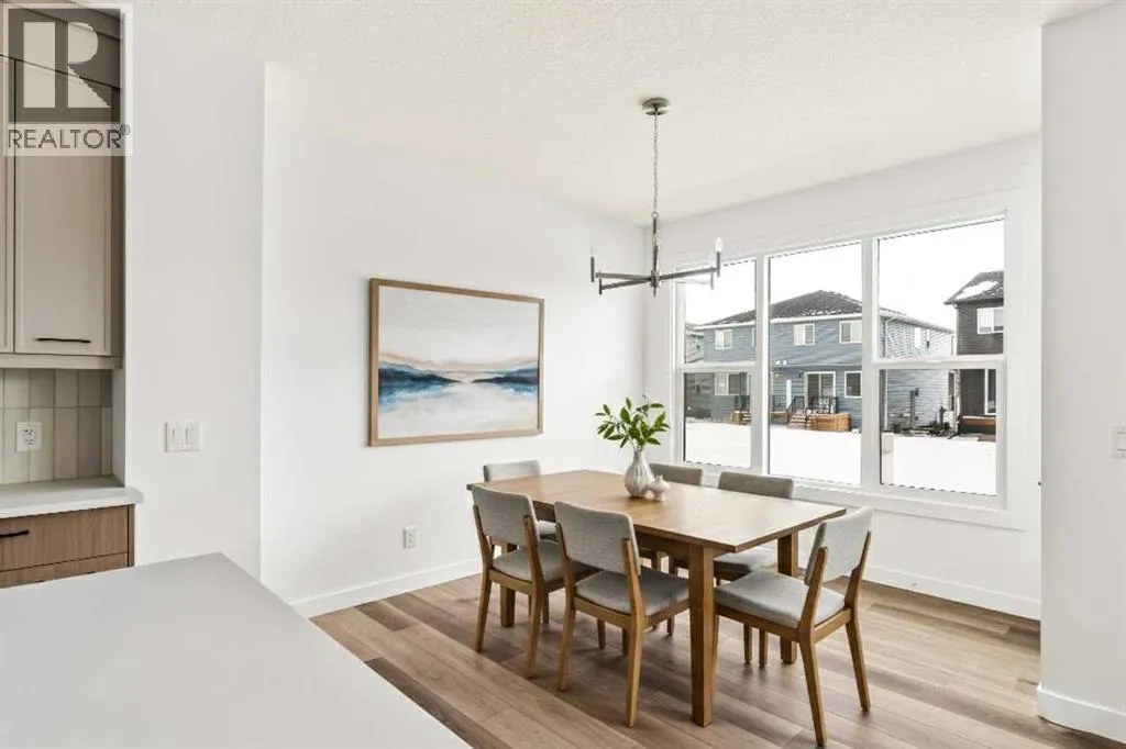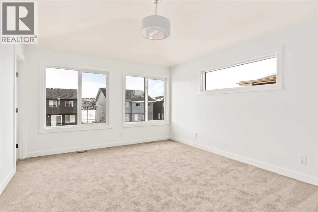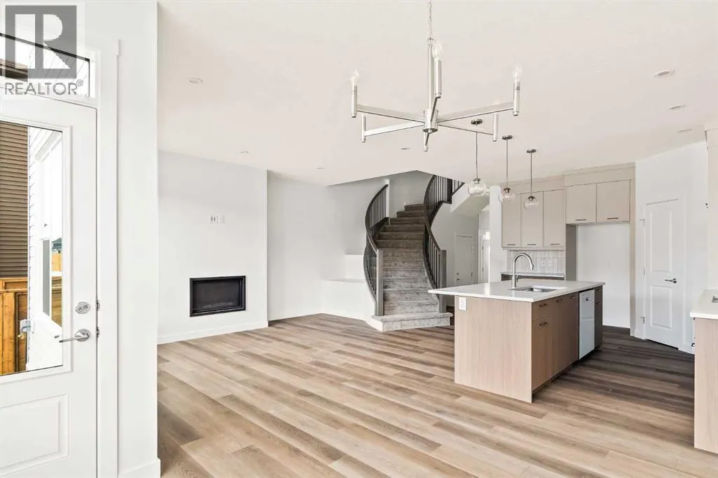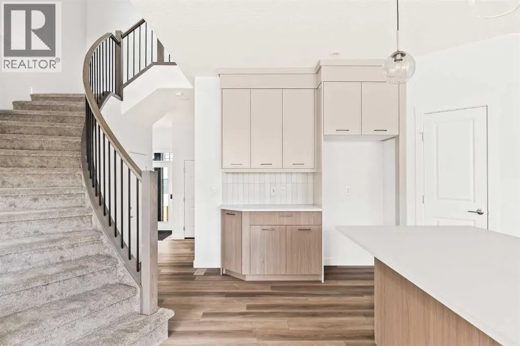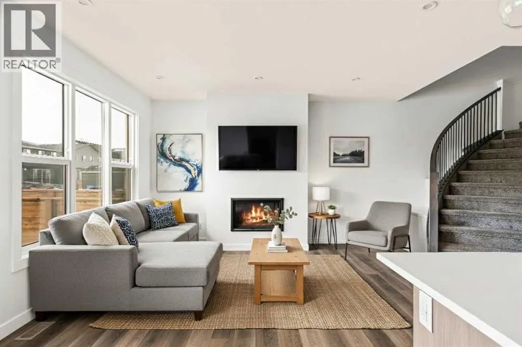 Introducing the Robson 24 by Brookfield Residential - a beautifully designed, fully move-in ready family home showcasing the modern Prairie elevation and situated on a large conventional lot (not zero lot line)! Thoughtfully planned with over 2,200 sq. ft. of developed living space above grade, this home perfectly blends style, function, and flexibility for todayâs family lifestyle. The grand front foyer welcomes you with a sense of space and light, while the open-concept layout ensures seamless flow between the living, dining, and kitchen areas. The main level offers a spacious living area with a design that is perfect for entertaining. The kitchen is complete with an upgraded appliance package including a built-in chimney hood fan, built-in oven & microwave and a gas cooktop. The kitchen overlooks both the living and dining areas with a central fireplace in the great room providing the perfect space for cozy winter nights. A wall of windows across the back of the home allows for natural light from the west-facing backyard to flood the space with sunshine all day long. The main level is complete with a bedroom and full bathroom - perfect for a guest room, multi-generational living or easily can be converted to a home office space. At the heart of the home, a striking spiral staircase becomes an architectural centerpiece - a rare design feature that elevates this home beyond the ordinary. Upstairs, the curved staircase leads to a central bonus room that smartly separates the primary suite from the secondary bedrooms, offering privacy and a natural flow to the upper level. The primary retreat features a spa-inspired 5-piece ensuite with a private water closet, dual sinks, a soaker tub, and a walk-in shower, along with an expansive walk-in closet. Two additional bedrooms, a full bathroom, and a convenient upper-floor laundry room complete the second level. The undeveloped basement offers a private side entrance and awaits your creative vision - perfect for a future le gal suite (subject to municipal approval), home gym, or media space with 9' foundation walls making development that much easier for a brighter and more open space. Laundry rough-ins with sink hookups are already in place for added convenience. Outside, the west-facing backyard is ideal for soaking up the sun and provides the perfect outdoor retreat while keeping the main living areas bright year-round. Situated on a large conventional lot, this home has a traditional side yard and offers an incredible outdoor living space. Backed by Brookfieldâs comprehensive builder warranty and the Alberta New Home Warranty Program, this brand-new home allows you to purchase with complete confidence. With its timeless finishes, distinctive architectural details, and move-in-ready convenience, the Robson 24 is truly the perfect place to call home. (id:27476)
