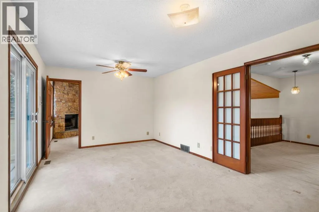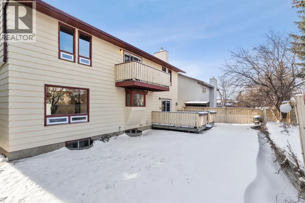 First time offered in years, this well-loved Edgemont home - originally owned by the BUILDER - offers an excellent opportunity for new owners to enjoy this house and this GREAT location! This LARGE home offers 2534.01 sq ft above grade. 3 bedrooms - 3 ½ bathrooms plus TWO wood burning fireplaces. LARGE floor to ceiling front windows ensures this home is filled with SOUTH light throughout the day! The main floor features gleaming hardwood floors, a formal living room with soaring 20-ft vaulted ceilings with tongue-and-groove wood ceiling, spacious dining room for all those special meals, eat-in kitchen with island and window above the sink - so you can prepare dinner and watch your kids - or your DOGS! - in the backyard. Sunken family room with wood-burning fireplace for those cozy winter nights. Wet bar area for entertaining - plus patio doors allowing direct access to the deck. Super convenient main floor laundry, access to your double ATTACHED / OVERSIZED garage and a 2-piece bath finish this level. Head up to the second level via the dramatic staircase! Nice landing at top of stairs makes it feel roomy and spacious. Plus vault allows you to feel connected with that beautiful front room at all times! LARGE primary bedroom with BALCONY, 4-piece ensuite, walk-in closet and attached den or "flex" space with another fireplace - open to below! Two additional good sized bedrooms and a 4-piece bath complete the top level. Basement is wide open and ready for your creativity. The windows in this lower area are LARGE and bring in loads of natural light. Exceptionally well cared for, this is a true LEGACY home with strong bones and outstanding potential. Enjoy close proximity to Nose Hill Park, one of Calgaryâs largest urban parks - offering extensive pathways, open green space and sweeping city and mountain views. A lifestyle bonus for people that enjoy daily walks and outdoor recreation. Located in Edgemont, a highly regarded NW community known for its elevated setting, m ature trees, strong schools and excellent access - without the impact of busy roads. SO quiet here on this street - but close to major roadways to get in and out of community. Be at the airport OR downtown in 20 mins! A neighbourhood valued for its stability, space, and enduring appeal. Steps to Mother Mary Greene Catholic Elementary, safely accessible across the street and through the alley. Such a quick and safe walk! Edgemont Community Association programs, events and classes, off leash park, John Laurie Park, extensive pathways, green spaces - this community offers SO much to a future buyer! Move in right away and start enjoying your new home. (id:27476)