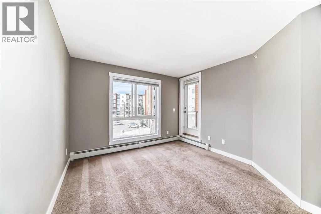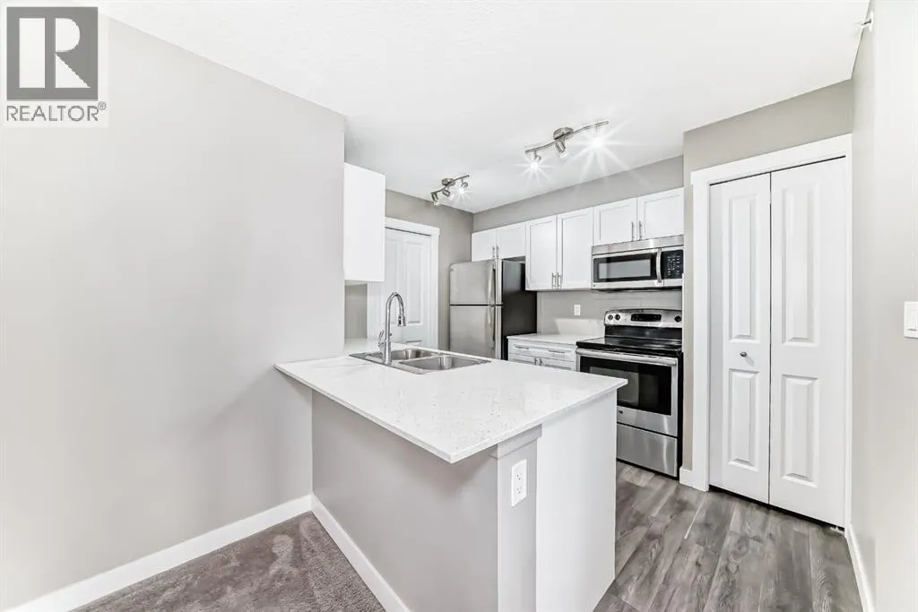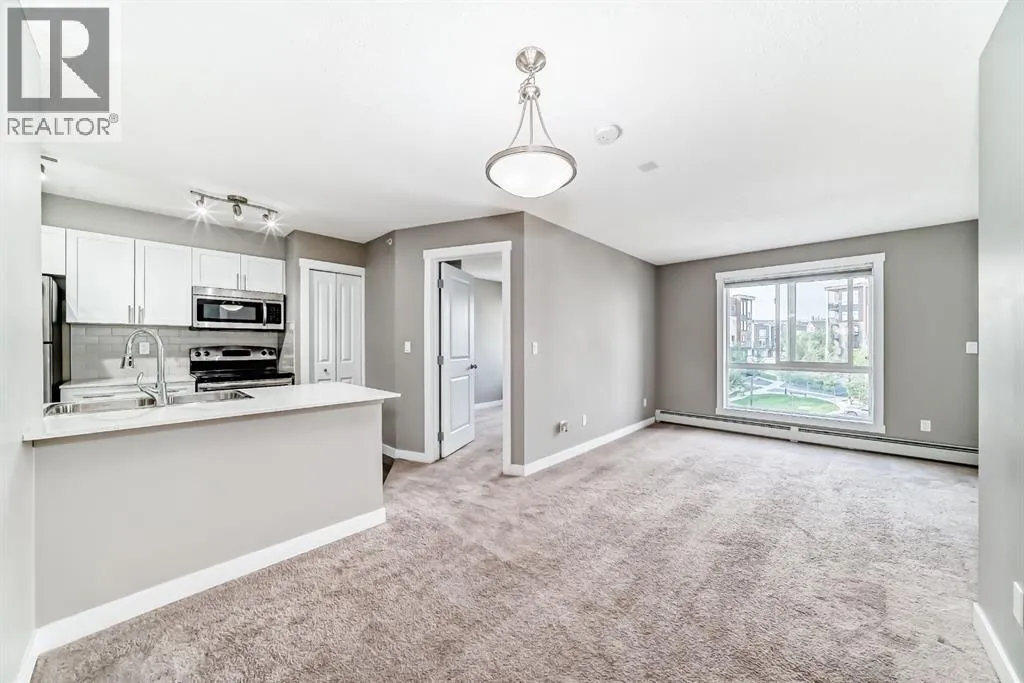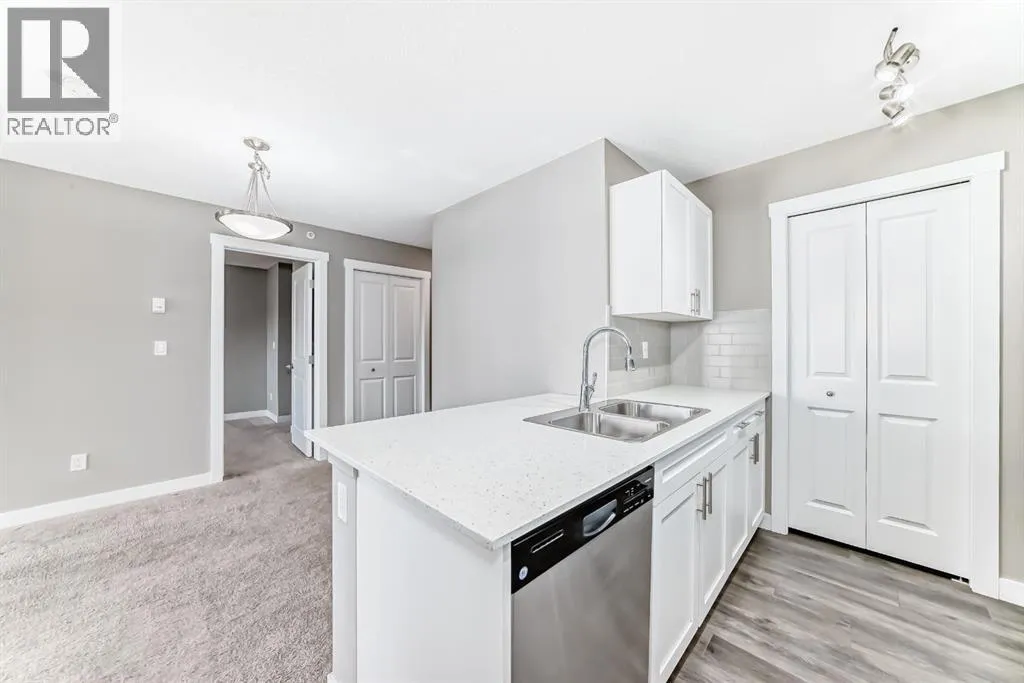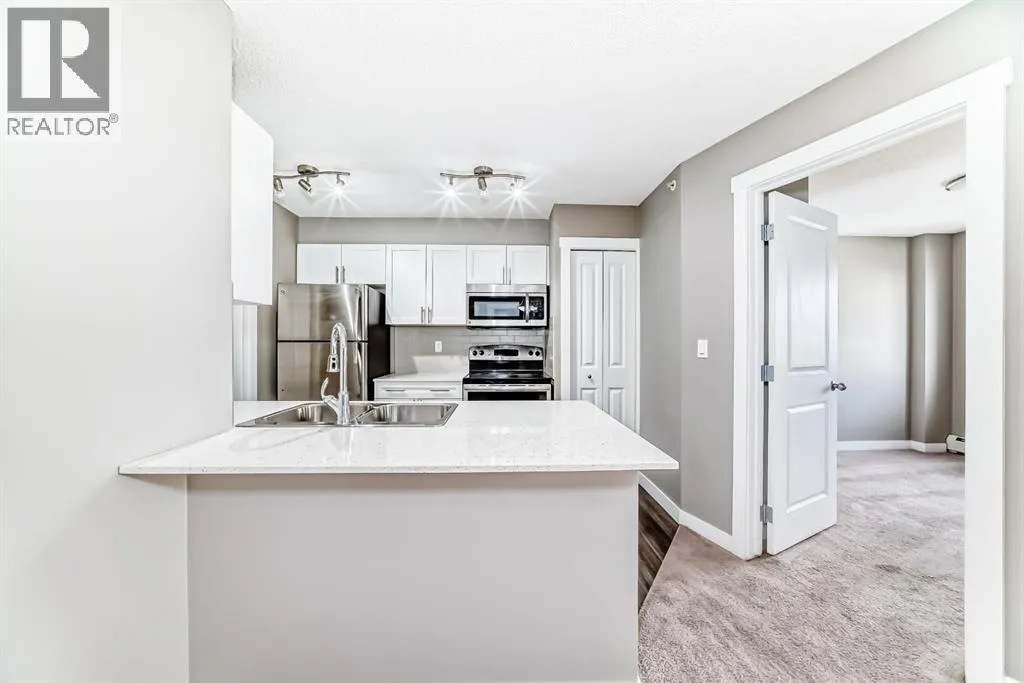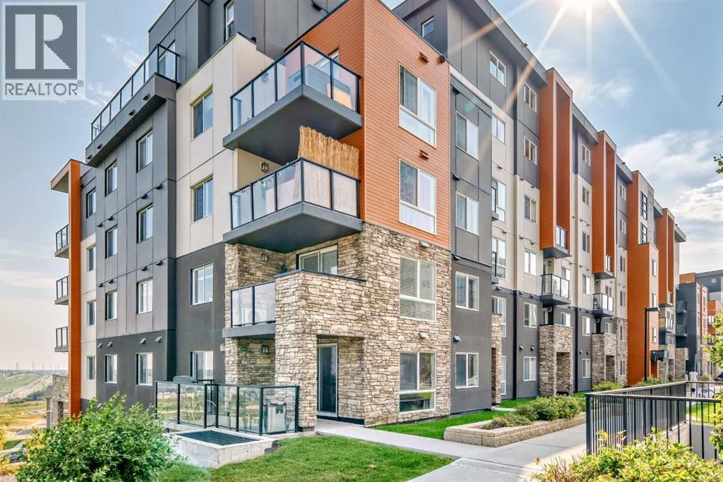 Welcome home to this bright, beautifully designed 2-bedroom, 2-bath condo in an ultra-quiet, 8-storey concrete building. Thoughtfully laid out with bedrooms on opposite sides, the floor plan offers a sense of privacy and balance âideal for shared living, a dedicated home office, or a young family. In-suite laundry conveniently located off the kitchen adds everyday ease.The modern white kitchen is both stylish and functional, featuring quartz countertops, stainless steel appliances, and soft-close cabinetryâperfect for cooking, hosting, or simply enjoying quiet evenings at home. The open living area flows effortlessly to the east-facing balcony.This home also includes titled underground parking, a titled storage locker and access to fantastic rooftop patio offering expansive community viewsâan inviting space to relax, unwind, or gather with friends. Emerald Sky is a well-maintained, pet-friendly building (with approval) that backs onto parks and green space, creating a calm and connected atmosphere.Set within an established yet growing community, youâre just steps from the future Symons Valley Park, a planned 16-acre destination with sports fields, playgrounds, skating rinks, walking paths, and year-round gathering spaces. Youâll also enjoy easy access to the amenities of Creekside and Sage Hill Plaza, offering everyday conveniences including Walmart, banks, shops, restaurants, and fitness studios. With quick access to Stoney Trail, Shaganappi Trail, and Beddington Trail, everything you need is close at hand.Comfort, connection, and lifestyle come together hereâthis is a place youâll truly love coming home to! (id:27476)