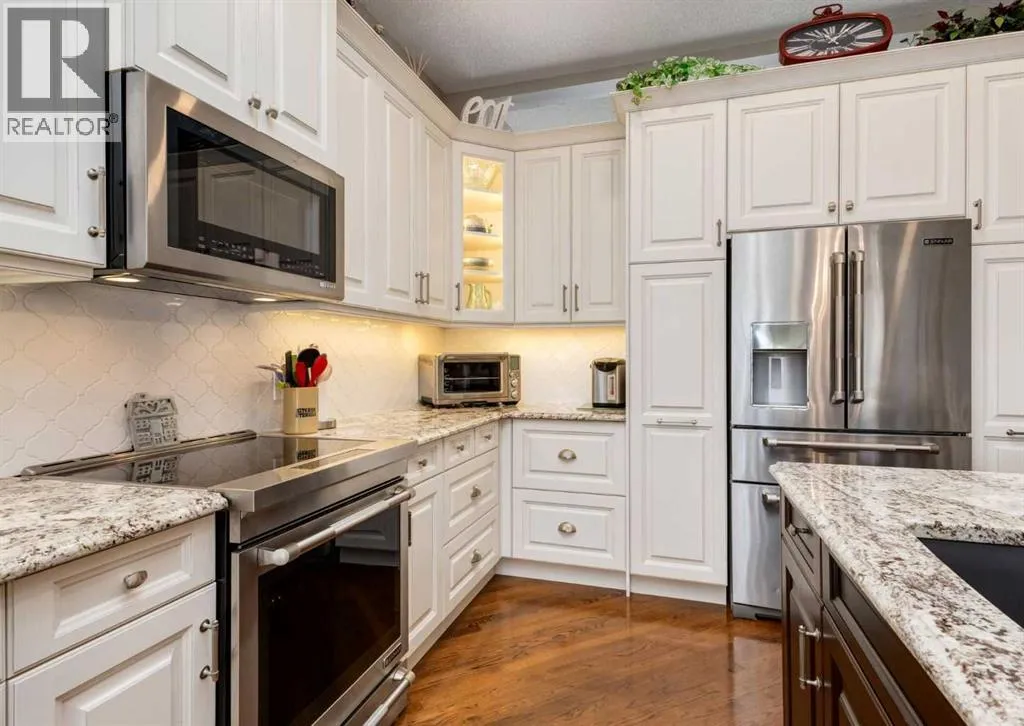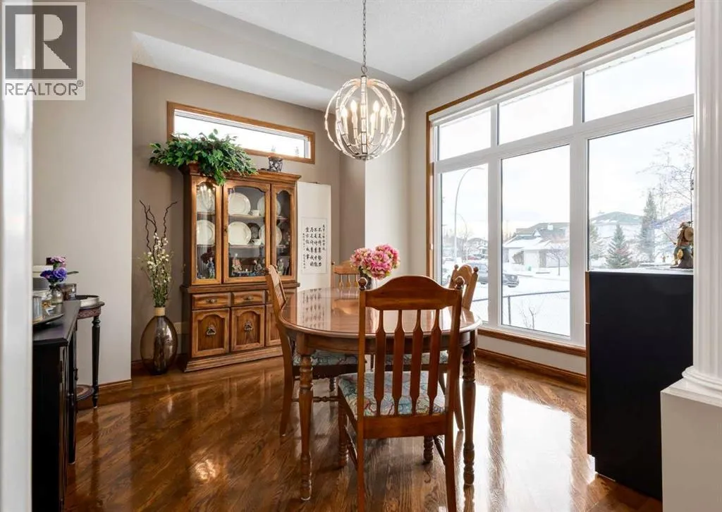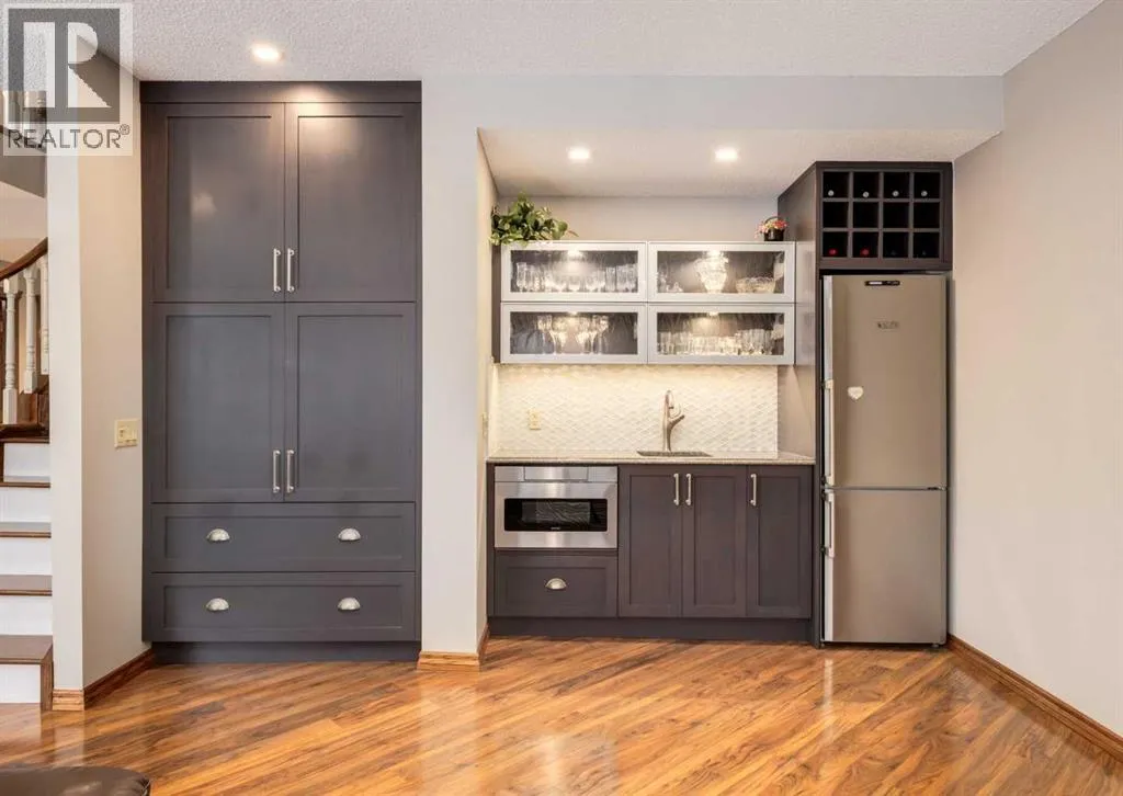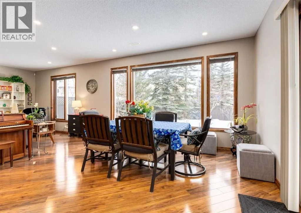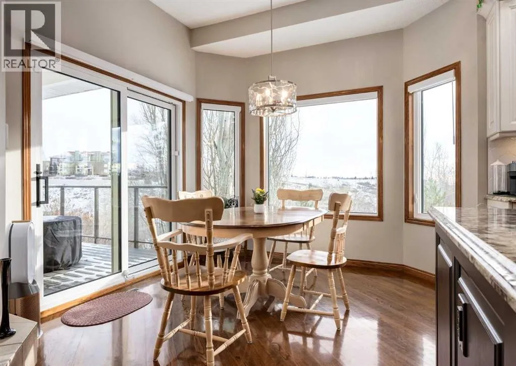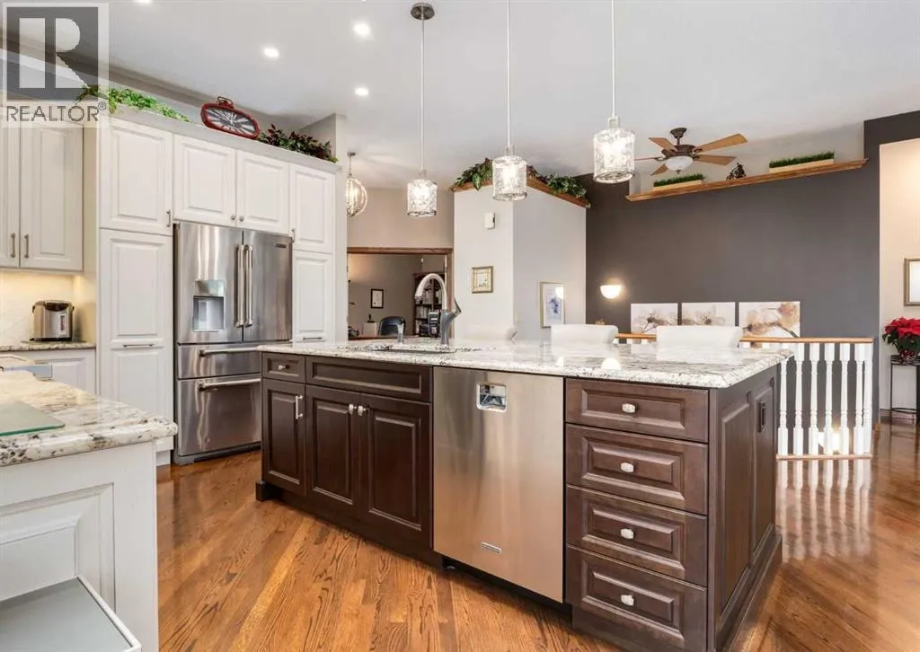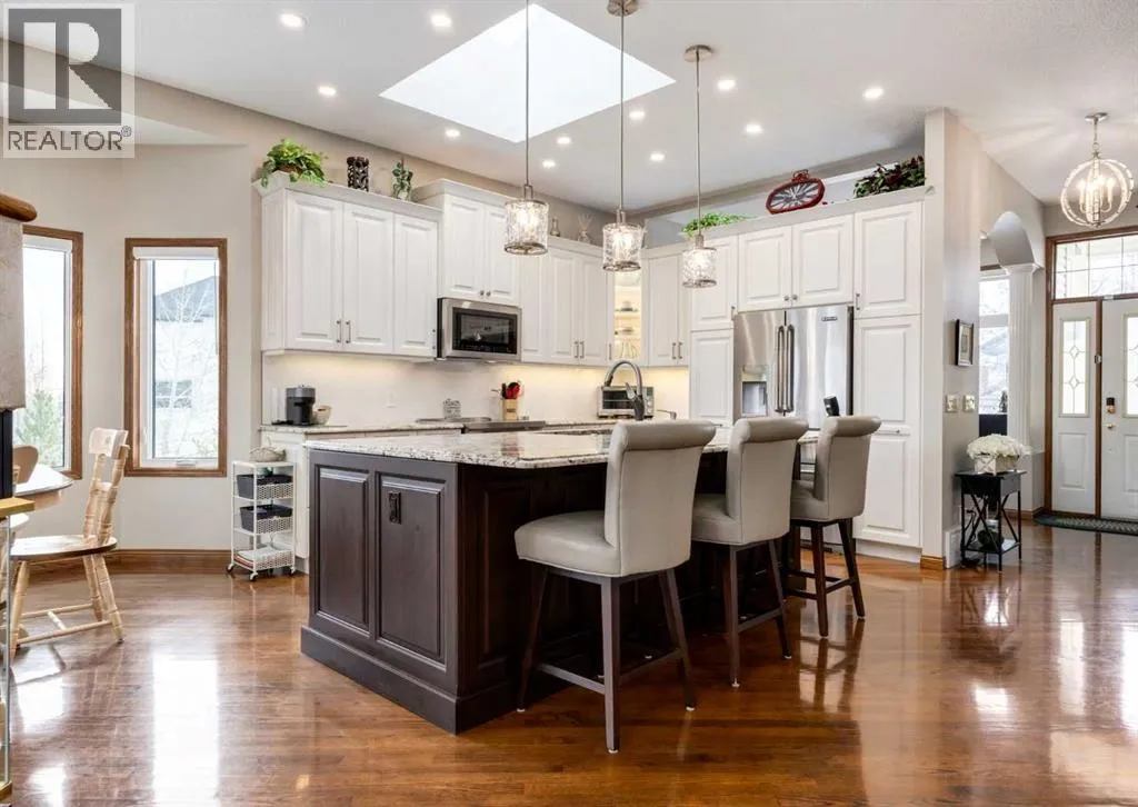 Nestled in the highly sought-after community of Tuscany in Northwest Calgary, this exceptional walkout bungalow presents a rare and unique opportunity to own a home siding/backing directly onto a serene green space and ravine. Meticulously maintained by the original owners, this home exudes pride of ownership from the moment you arrive. Step inside to be greeted by soaring 10' ceilings on the main floor, timeless solid red oak hardwood flooring, and an abundance of natural light flooding through large windows and a skylight. A front den with elegant French doors provides the perfect home office or flex space and the formal dining room features a huge southwest-facing window. The heart of the home is the beautifully updated kitchen by Legacy Kitchens, boasting granite countertops, soft-close dovetail maple drawers, and premium Jenn-Air stainless steel appliancesâincluding an induction stove and convection microwave hood fan. The adjacent breakfast nook overlooks the ravine and pathway system, where wildlife sightings are common. Flow seamlessly into the spacious living room, centered around a stunning three-sided fireplace. Step out to the maintenance-free composite deck with glass railings, complete with a BBQ gas line for effortless outdoor entertaining. The primary bedroom retreat offers updated tile flooring, a luxurious jetted tub, separate shower, and a generous walk-in closet with built in organizers. The 1/2 bath and convenient laundry/mudroom featuring a sink has direct access to the double attached garage and completes the main floor. The fully finished walkout lower level is where you'll find a bright family/media room, a built-in bar with microwave, two additional bedrooms, and a full bathroomâperfect for guests or extended family. There is plenty of storage in the utility/mechanical room. Outside the established yard enhances the peaceful setting, while the side-onto ravine location invites abundant wildlifeâspot deer, moose, and moreâright from your windows and outdoor spaces. Modern comforts/updates include central air conditioning, powered blinds, an on-demand tankless water heater, water softener, HRV system and majority of windows on the main floor have been updated with Lux Vinyl windows. In the heart of Tuscanyâwith its extensive pathway network connecting to the 170-acre ravine system, excellent schools, LRT access, and the exclusive Tuscany Clubâthis home combines luxury, nature, and convenience in one extraordinary package. Properties like this are exceedingly hard to find, offering unparalleled privacy, tranquility, and a front-row seat to nature's beauty. Don't miss this truly rare gem. Click on media for the video and book your private showing today! (id:27476)
