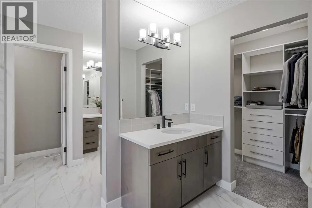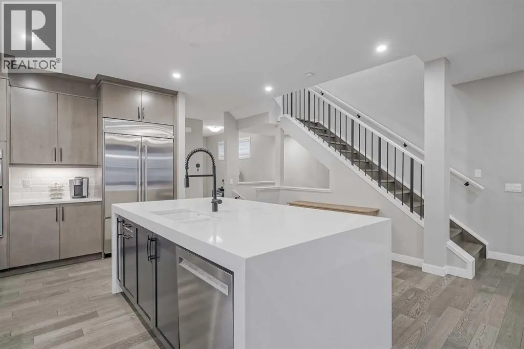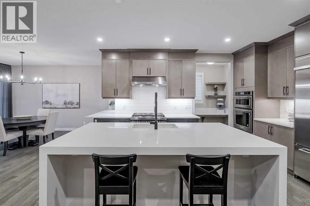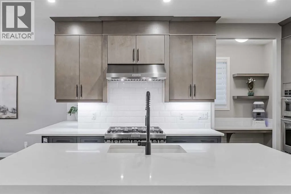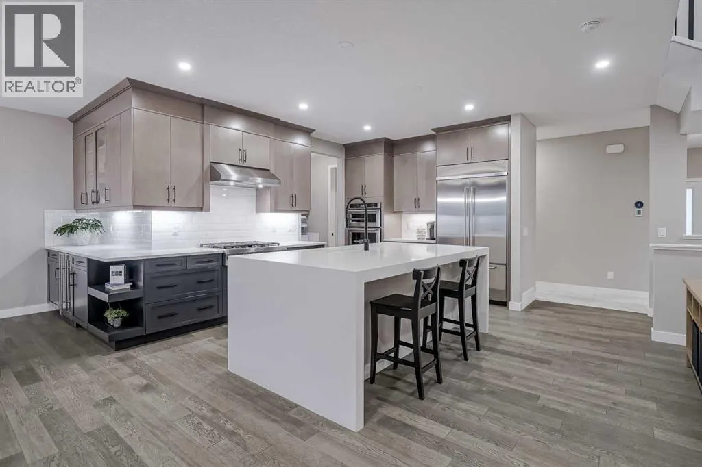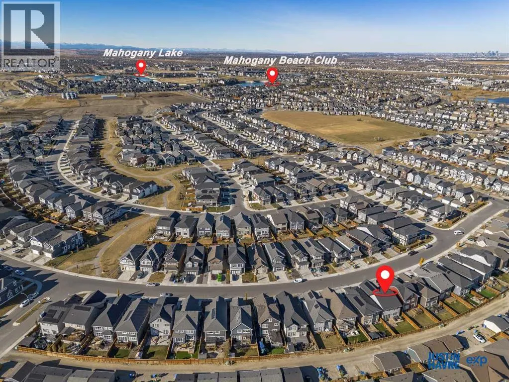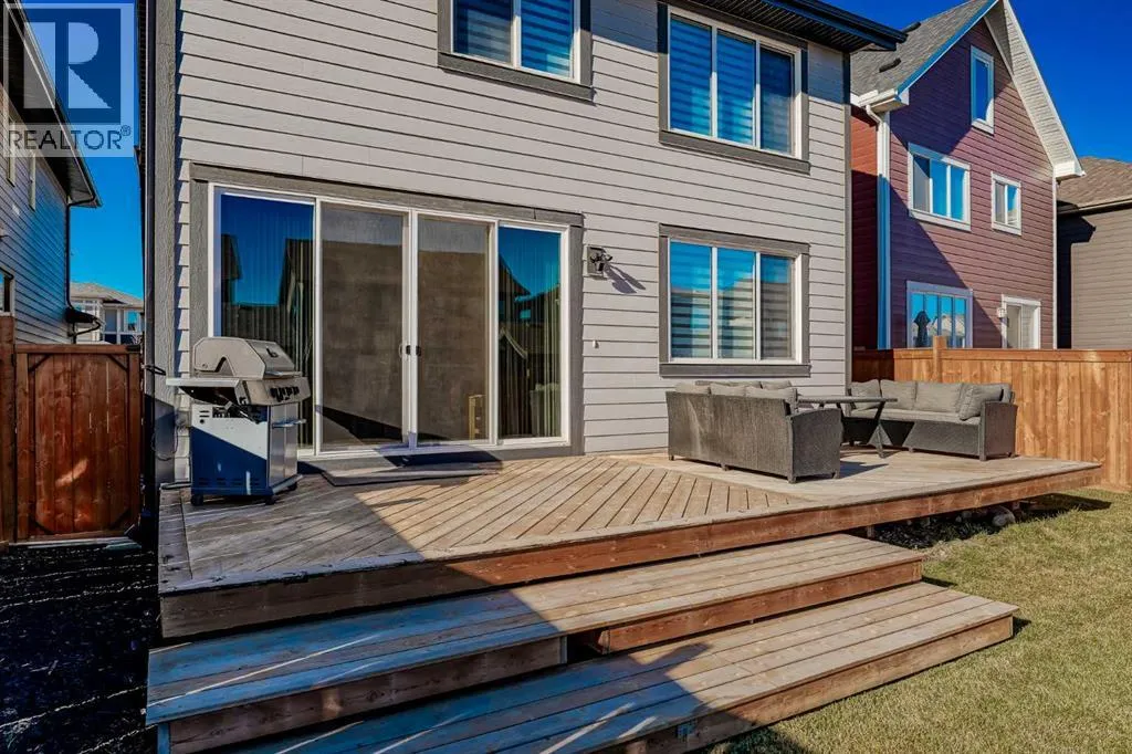 OPEN HOUSE SUNDAY JANUARY 4 (12:00-2:00pm). Set on a quiet street in the highly sought after lake community of Mahogany, this Jayman built executive home is thoughtfully designed for modern living, flexibility, and comfort, with spaces designed to adapt as life changes.The main living space supports both daily life and remote work, featuring a built in workstation and room to create a homework zone or family command centre. The chef inspired kitchen anchors the home and is ideal for entertaining and everyday living, offering high end stainless steel appliances, dual wall ovens, a professional six burner natural gas cooktop, a wine fridge, a built in beverage fridge, an extended side counter for serving and an extra large island that provides a generous working surface for everything from meal prep to projects and gatherings. Large windows bring in abundant natural light, while hardwood flooring, recessed lighting, and an electric fireplace add warmth and refinement.Upstairs is a spacious bonus room easily adapts over time, whether as a playroom, media room, second office, or a combination of all three. The primary bedroom feels like a true retreat, enhanced by a distinctive lighting feature that creates a calming atmosphere. The spa inspired ensuite includes a large soaking tub, dual sinks, and a shower with customizable lighting. A well designed walk in closet with extra built in drawers completes the primary suite. Three additional bedrooms and a secondary bathroom with dual sinks offer space that works equally well for young children, teens, or guests.Below, the unfinished basement with large windows provides the opportunity to expand your living space when you are ready, whether that means additional bedrooms, a home gym, a recreation area, or a space tailored to future needs.Outside, an oversized cedar deck creates an inviting outdoor retreat for family gatherings and entertaining, while the meticulously maintained lawn offers space to play and relax. W ith walkable access to the lake and close proximity to schools, daycares, shopping, restaurants, and major routes, this home offers a rare balance of flexibility, lifestyle, and long term livability in one of Calgaryâs most desirable lake communities. (id:27476)