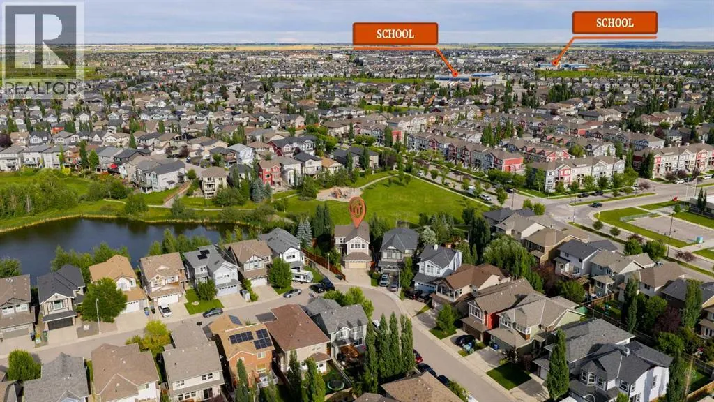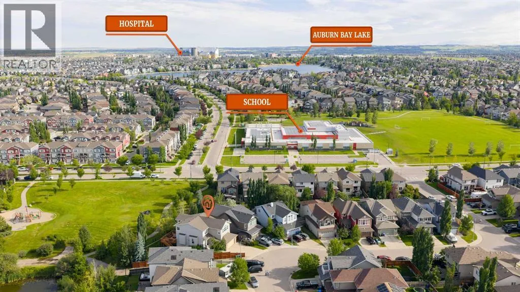 Where do we even start with this STUNNING and meticulously maintained home!? Fully finished walkout basement home that backs DIRECTLY onto the playground, pathway, pond and forested area - all on a large PIE LOT! Opportunities like this are truly rare and seldom come to the market! Just under 4,000 sq ft of finished space in this amazing property AND it's literally a 30 second walk to Auburn Bay school and transit stops. As you enter this home you are wowed by the abundance of natural light, open floor plan, large entryway and light color scheme. The kitchen is the focal point of the main floor and features a large island with built in storage and wine racks, granite countertops, tiled backsplash, large pantry, stainless steel appliances with plenty of cabinet and counter space! Adjacent to the kitchen there is a great sized dining area with amazing views and the huge living room also has great views, corner gas fireplace and built in cabinetry! The main floor also has a den/office area for the work from home professional, a half bath and a mudroom with a sink and built ins as well as the laundry area all leading to the garage! The upper level is just as awesome! You will love the MASSIVE primary bedroom which can easily accommodate a king sized bed, side tables and has a sitting room to enjoy the epic views behind the home! The ensuite features separate sinks, shower and a soaker tub as well as a walk in closet. There are 2 additional bedrooms upstairs, another full bathroom and a great bonus room to unwind in! Now let's head downstairs where you have a walkout, a 4th bedroom, ANOTHER full bathroom, a massive sun filled rec room with 2 separate built ins for extra storage! Outside you have a massive deck to enjoy the views and peace and quiet, a well manicured pie lot with tons of mature trees for added privacy, tons of room for the kids to enjoy and a lower patio from the walkout doors! As if that isn't enough to love here - you have a garage with shelving built in, year round access to the 4 season LAKE, easy commute to Deerfoot & Stoney Trails, TONS of local amenities including a hospital, YMCA, loads of pubs and restaurants, shops, off leash dog park, walking paths and a multitude of schools, parks and playgrounds! (id:27476)