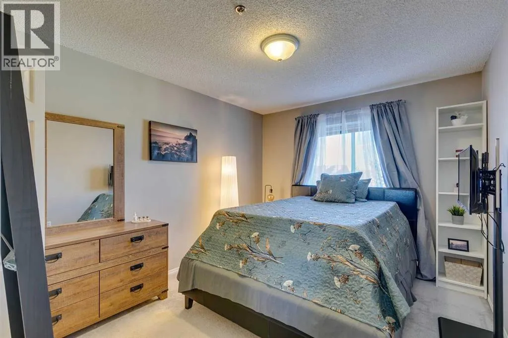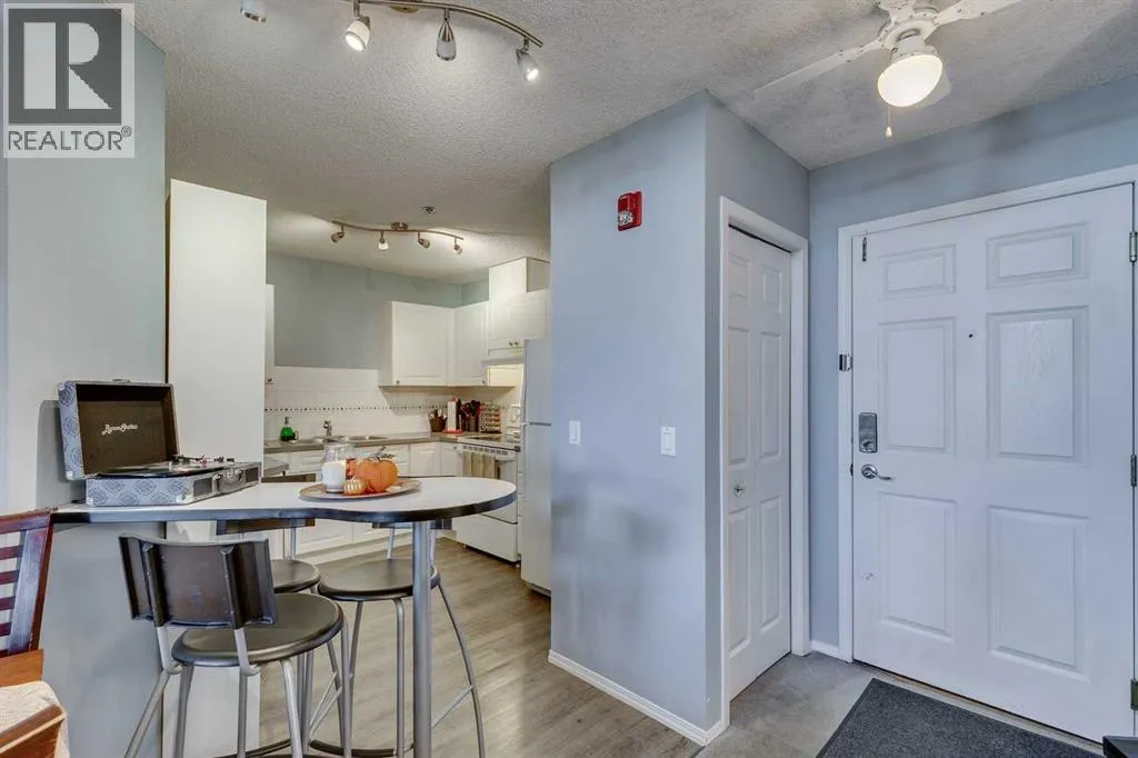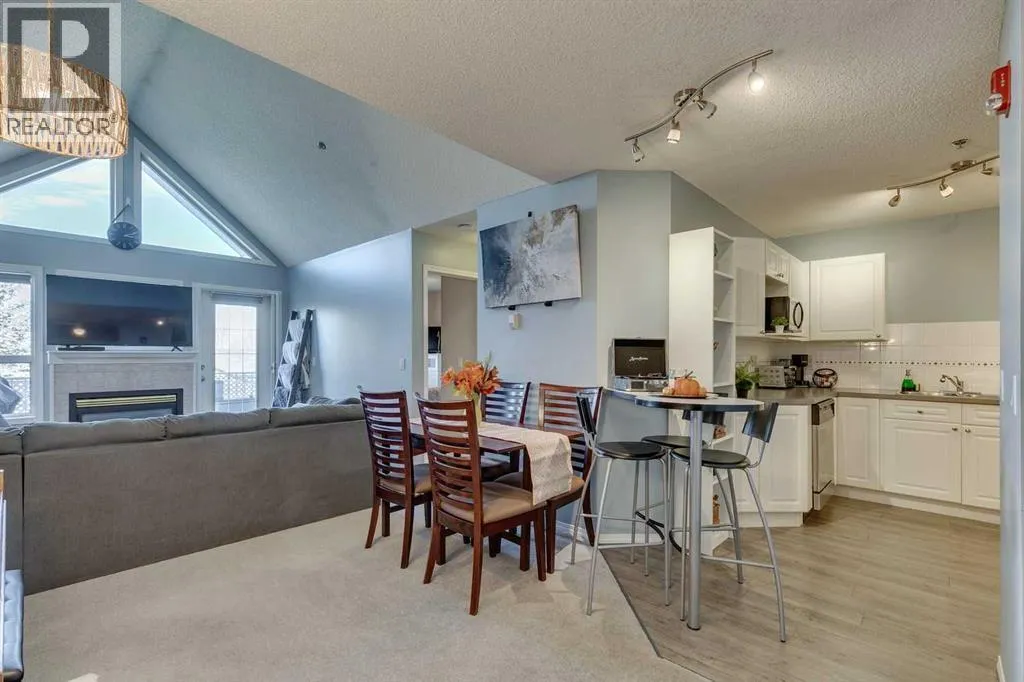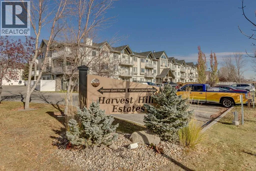 Welcome to Unit 305 at 7 Harvest Gold Manor NEâan exceptional top-floor home that stands out as one of the best in the building - only one direct neighbour! This bright and airy unit is defined by its soaring vaulted ceilings and a stunning wall of windows that fill the open-concept living space with natural light.Step inside to discover a spacious layout featuring a formal dining area and a comfortable living room complete with a cozy gas fireplace. The well-appointed kitchen is semi-open to the main living area, providing the perfect balance of connection and privacy. A dedicated den or home office offers an ideal workspace for those working remotely or needing a quiet retreat.The thoughtfully designed floor plan features two bedrooms located on opposite ends of the unit for maximum privacy. The primary suite includes a walk-through closet leading to a private 3-piece ensuite, while the generous second bedroom is conveniently adjacent to the main 4-piece bath.Additional highlights include in-suite laundry, a dedicated storage room, and a private balcony with a gas line for your BBQâperfect for relaxing or entertaining. This unit also includes a heated underground parking stall with a full storage cage at the front for added convenience.Ideally situated across the street from the T&T Supermarket, close to transit, shopping, major routes, and the airport, this is a rare opportunity to own one of the most desirable top-floor units in the complex.Donât miss your chanceâbook your showing today! (id:27476)