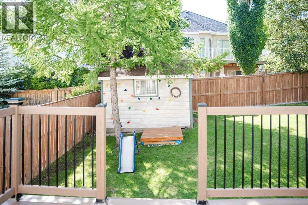 Rare 4-Level Split in Rocky Ridge and Royal Oak â Over 2,250 sq. ft. of living space! This beautifully maintained home with double attached garage is perfectly situated at the end of a quiet cul-de-sac with a park and green space right across the street. This home is within walking distance to the Tuscany LRT station and the Rocky Ridge Ranch House with its activity rooms, childrenâs pool, tennis and basketball courts. The main floor is bright and inviting with hardwood floors, vaulted ceilings, and large windows that flood the living and dining areas with natural light. The kitchen features a 10' ceiling, stainless steel appliances, an oversized pantry, and a sunny eating nook overlooking the 3rd level. The 3rd level offers a cozy family room with a corner fireplace, a 3rd bedroom, and a full bathroom. Upstairs, youâll find two spacious bedrooms, each with its own bathroom, including the primary suite with walk-in closet and private ensuite. The fully finished basement includes a large rec room, office space, laundry, and ample storage. Outside, enjoy a large west-facing backyard with a deck and storage shed. Recent updates include triple-pane windows, hot water tank, and refreshed bathrooms with new vanities, toilets, and vinyl plank flooring. This is a fantastic family home in a great location with wonderful neighbors â a true gem in the border of Rocky Ridge and Royal Oak! (id:27476)