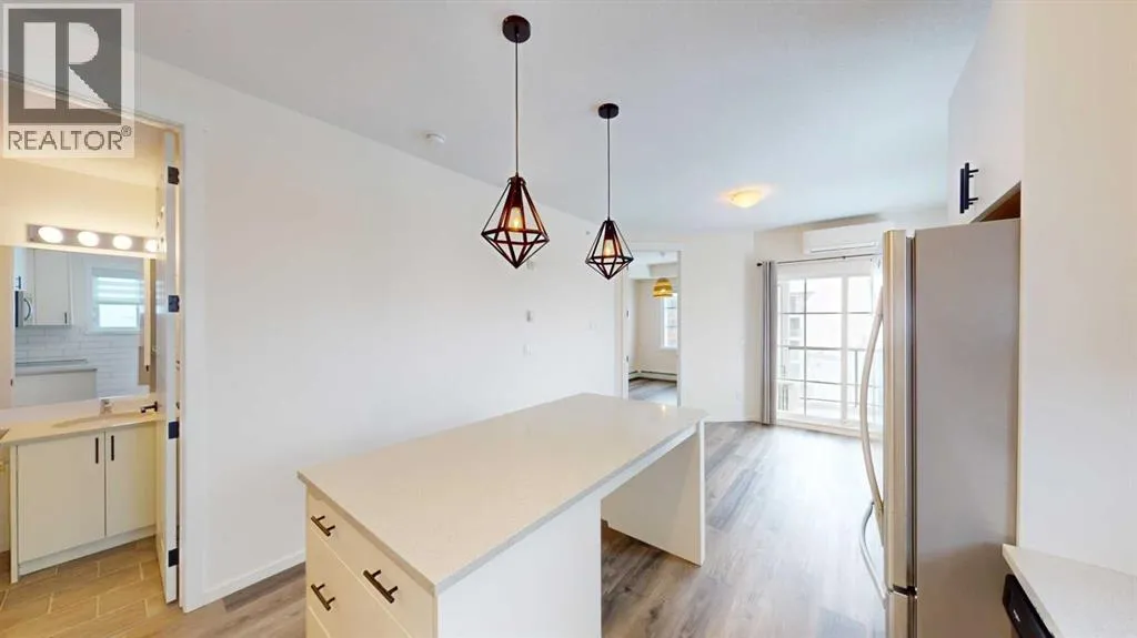Welcome to Sage Hill Park and this beautifully modern, corner unit, prestigiously located on the top floor. As you enter you will notice the gorgeous vinyl plank flooring and custom-built 8 foot high doors that accentuate the 9 foot ceilings. The stylish white kitchen is perfectly complemented by the quartz counter tops, subway tile backsplash, stainless steel appliances, upgraded lighting, and island with additional storage and space for seating. The vinyl plank flows through the open concept kitchen and living room and into the primary bedroom. The primary bedroom was redesigned to allow for a walk-through closet with built-in storage, leading to the full ensuite. The second bedroom is across from the other full bathroom. With air conditioning, in-suite laundry, a nice size balcony, two titled parking spots and additional storage, this unit offers luxury, comfort and convenience. One stall is located in the heated parkade, and the second stall is outside across from the front door of the building. Sage Hill Park is ideally located near many walking paths, ponds, loads of shopping choices like Costco and T&T, and just minutes from the Stoney Trail ring road. Book your showing today! (id:27476)