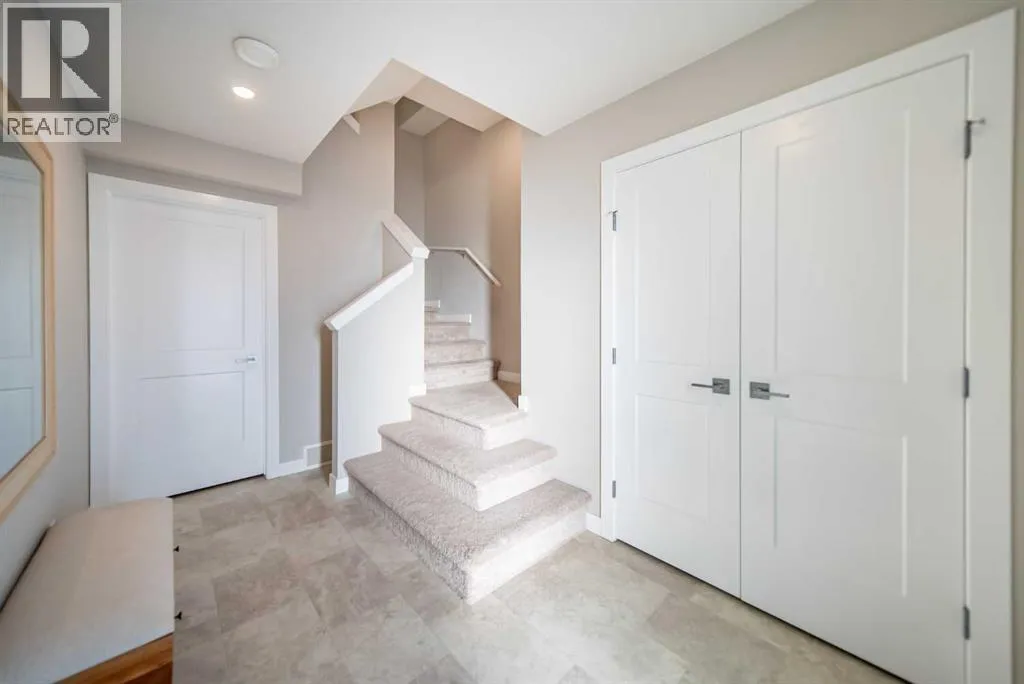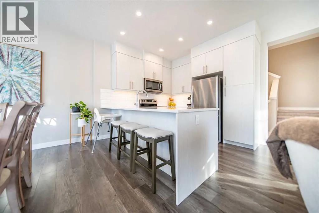Discover this stunning 3-storey corner townhome in Calgary's desirable Crestmont community, offering exceptional space, modern comforts, and family-friendly living right beside a kids' park. Step into a welcoming foyer with generous storage solutions leading to the oversized double garage, perfect for vehicles, gear, and family storage. This corner position maximizes natural light through extra windows, enhancing the airy feel throughout. Upstairs, unwind in the cozy living room that flows seamlessly into a versatile office space that could also be used as a 4th bedroom that accomodate's a full size bed. Elegant dining area, and chef-inspired kitchen with a center island for quick meals on the go featuring under-cabinet lighting, ceiling height cabinets and plenty of counter space. Step out to the convenient deck space featuring a gas BBQ line and incredible views, perfect for outdoor entertaining The top floor delivers three generously sized bedrooms, highlighted by a luxurious primary suite featuring a walk-in closet and spacious 4-piece ensuite bath. The additional two bedrooms share a well-appointed full bathroom, complemented by a dedicated laundry room for ultimate family convenience.Added upgrades include air conditioning, an efficient tankless hot water system, hard-wired networking connectivity throughout the home, and soaring 9-foot ceilings on every level for an elevated, modern feel.Nestled in upscale Crestmont, enjoy proximity to the Calgary Farmers' Market, numerous child care options, walking paths, and everyday amenities like shopping at West 85th and Trinity Hills. A short commute via Highway 1 puts downtown Calgary 20 minutes away and the Rocky Mountains under an hour, perfect for active families. (id:27476)