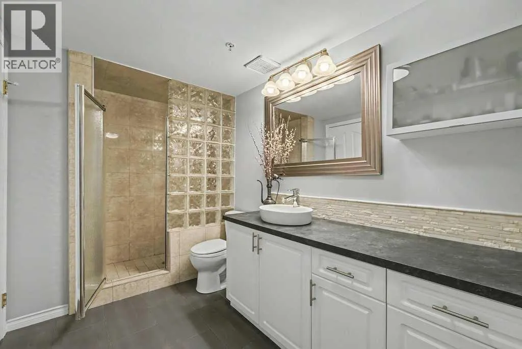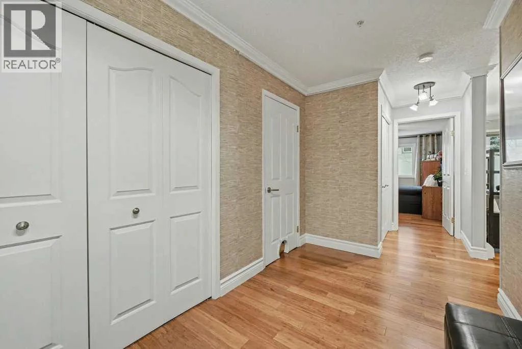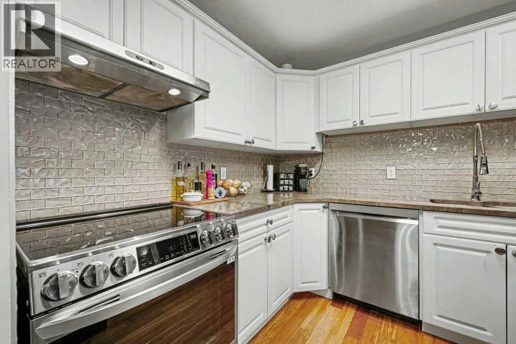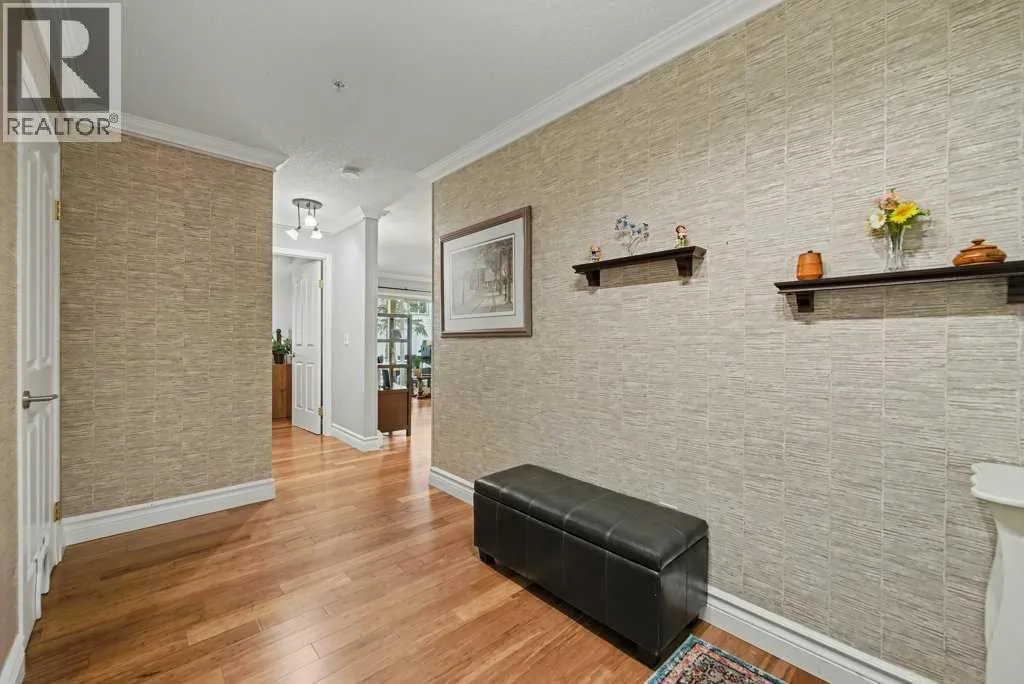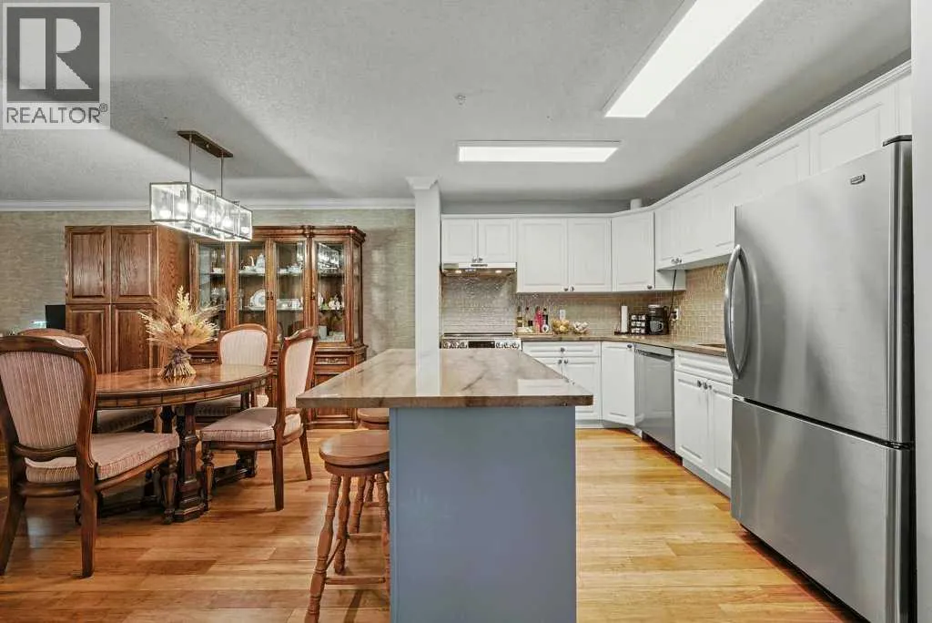 Impressively large condo that "lives like a home" - 1429 sq. ft. - and has been upgraded with high end finishings! Be welcomed as you enter the spacious foyer, adorned with engineered bamboo strand flooring. The open plan shows off the gourmet chef's kitchen, complete with an oversized granite island/counters, glass backsplash, light cabinetry and upgraded stainless steel appliances (*new induction range, new dishwasher and newer fridge)! The adjacent living room and dining room provide a perfect flow for entertaining. A unique open den area provides many options - family room/bonus room or work from home office space. Other features include: upgraded baseboards and crown moldings. The living room has plenty of space for entertaining family and friends. Enjoy effortless, stair-free living with the convenience of stepping directly from your living room onto your private patio - perfect for fresh air, easy pet access, and a seamless indoor-outdoor lifestyle! Both very large bedrooms feature new windows, mahogany custom California Closet organizers, air conditioners, remote bottom up / top down blinds. A 3 piece bathroom is located off the second bedroom, and the master bedroom features a 4 piece ensuite. A massive in-suite storage room is located next to the laundry - which has newer LG full sized washer and dryer. This home also includes 2 parking spaces and is located close to all amenities including: grocery, shopping, schools, golf, express transit to downtown and airport, future green line c-train station, public library, Vivo rec centre and more. Deerfoot & Stoney Trails are easily accessed. (id:27476)