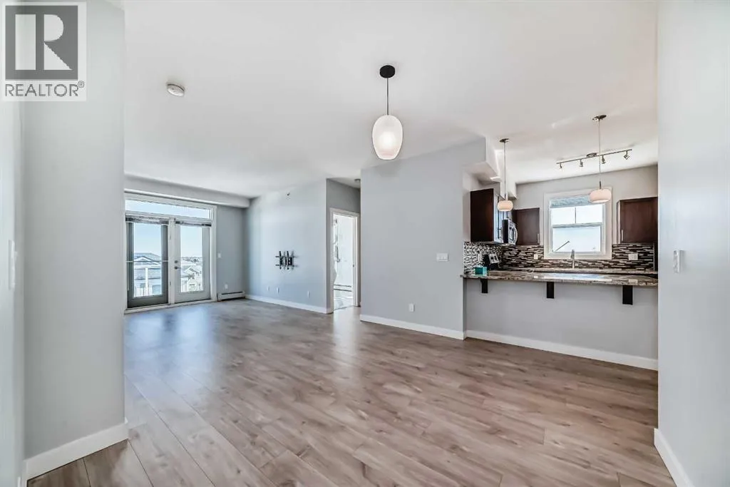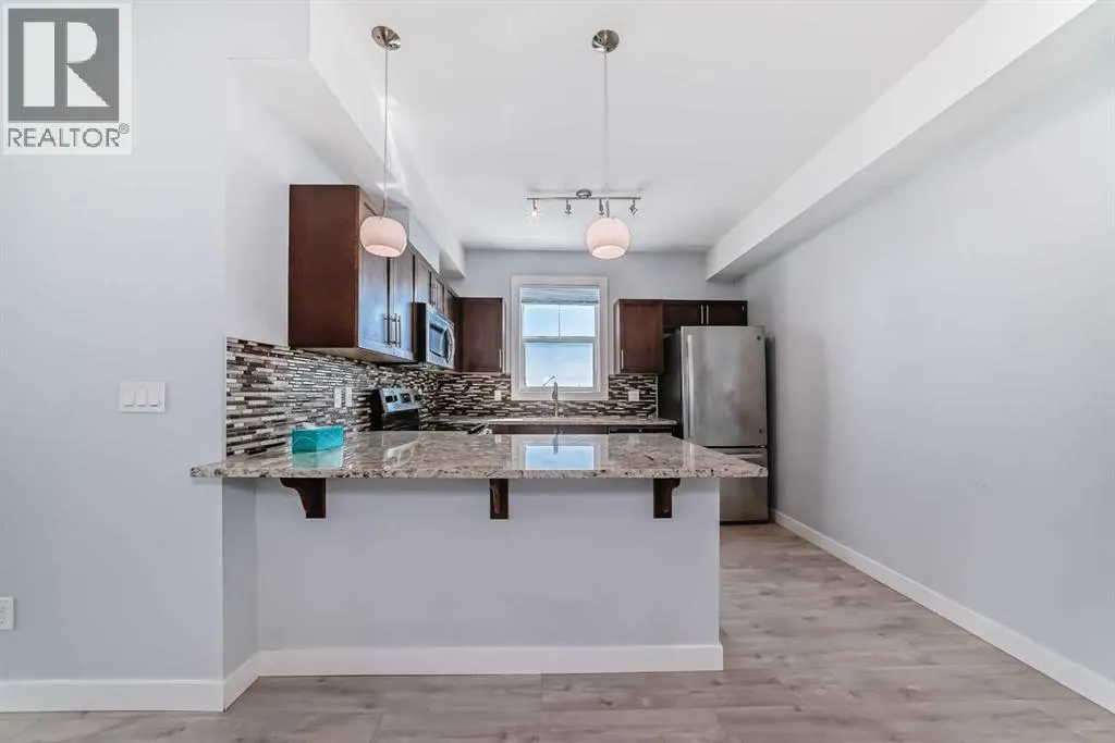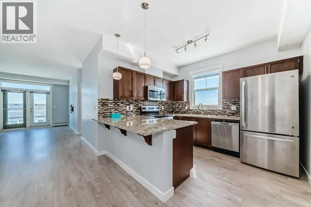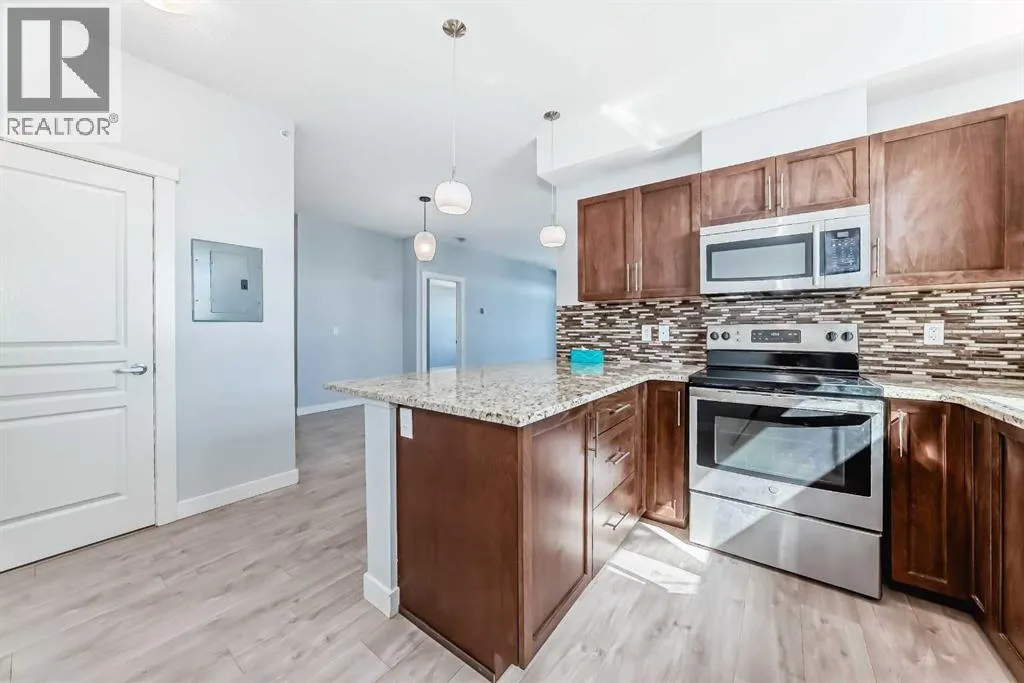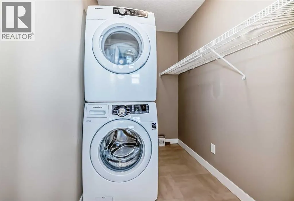 Beautifully laid out top floor, corner, huge 2 bedroom and 2 bathrooms apartment in well maintained Evanston Square. Barely any space wasted on hallways Space enough for a dedicated dining area. Natural light bathed living room looks out to the patio and beyond without obstruction. Good size patio with glass panels and natural gas outlet for barbecue. Ample size primary bedroom comes with a walk-in closet, and a four piece bathroom with shower stall. The second bedroom is just as spacious as the primary bedroom. The kitchen comes with stainless steel appliances and most of them were replaced recently. The quart countertop, and breakfast bar complete the kitchen. The laundry room doubles as a storage room, room enough to store and forget. If this is not enough there is an assigned external storage unit. This home was painted about 3 years ago with bright and lively colour. The floor was levelled and flooring replaced.The size of the titled underground parking stall will provide added incentives to own this home. The width of the stall is 13.5 with a pillar on one side and the wall on the other. It is almost like having your own garage. It is pet friendly too. Two major shopping centres, Creekside and Sagehill Crossings and minutes away. Major retailers like Walmart, T & T superstore, banks and other amenities are within easy reach. You are never far away from anywhere with easy access to Stoney and Shaganappi Trail. Come, visit and make this your place. (id:27476)