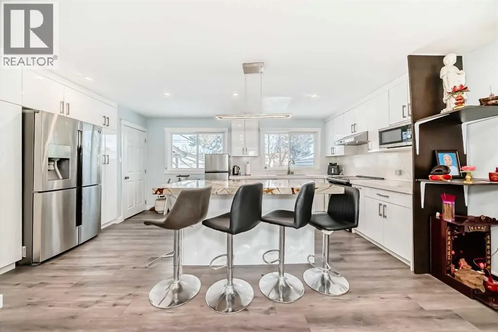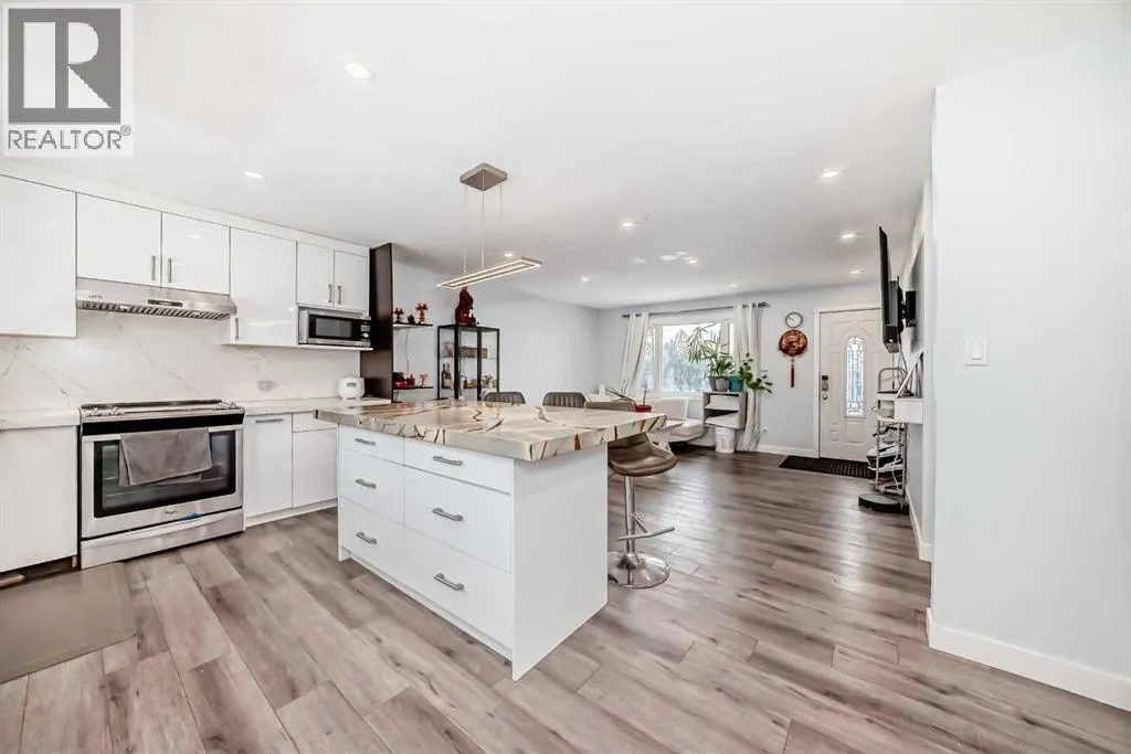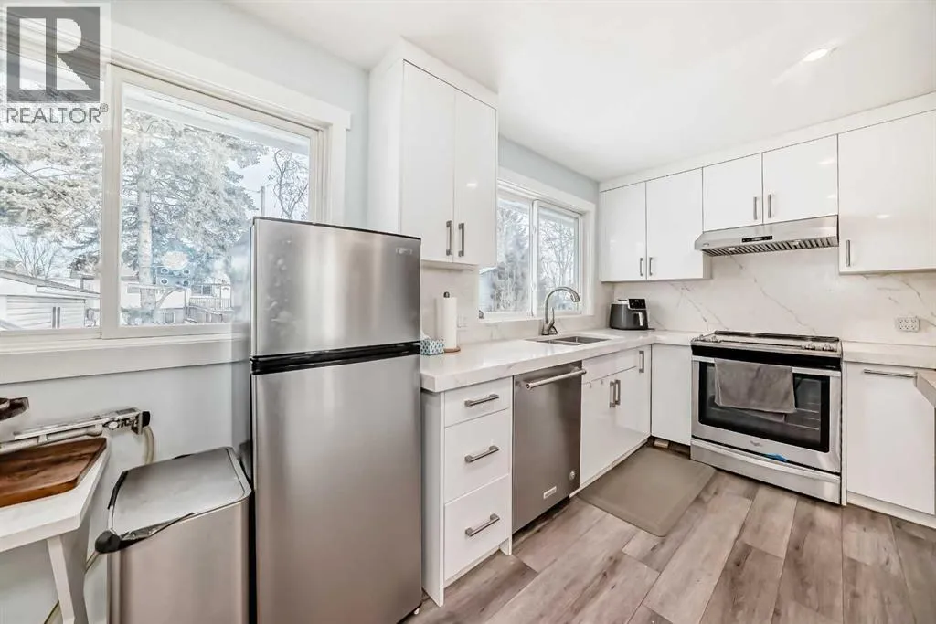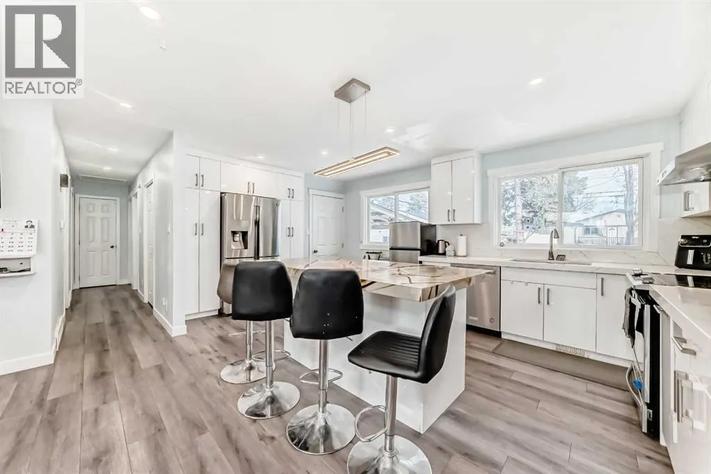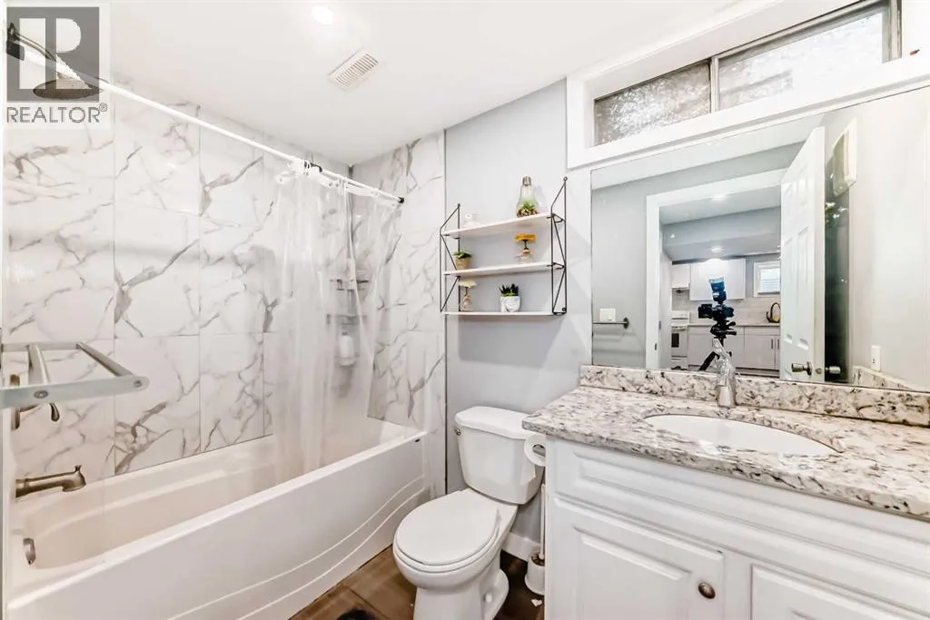 Welcome to this beautifully updated open-floor-plan bungalow featuring a bright open-concept living room, 3 bedrooms on the main level, and a renovated 4-piece bathroom with quartz countertop. Newer windows, Hotwater tank, high efficiency furnace. The home offers laminate flooring throughout, with tile flooring in the basement bathrooms & basement entrance for easy clean, modern finish. The stylish kitchen includes stainless steel appliances and quartz countertops, with all bathrooms fully renovated and upgraded with quartz surfaces.The lower level features a 2-bedroom illegal suite with a 2pc ensuite bathroom and another 4 pcs bathroom and its own private laundry, providing excellent versatility and income potential. Enjoy the private patio, double detached garage, and a fully fenced, landscaped yard.Ideally located within walking distance to schools and the LRT station, with quick access to Deerfoot Trail & Memorial Drive, this home delivers comfort, convenience, and value. (id:27476)