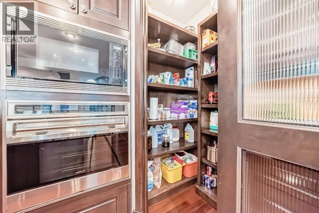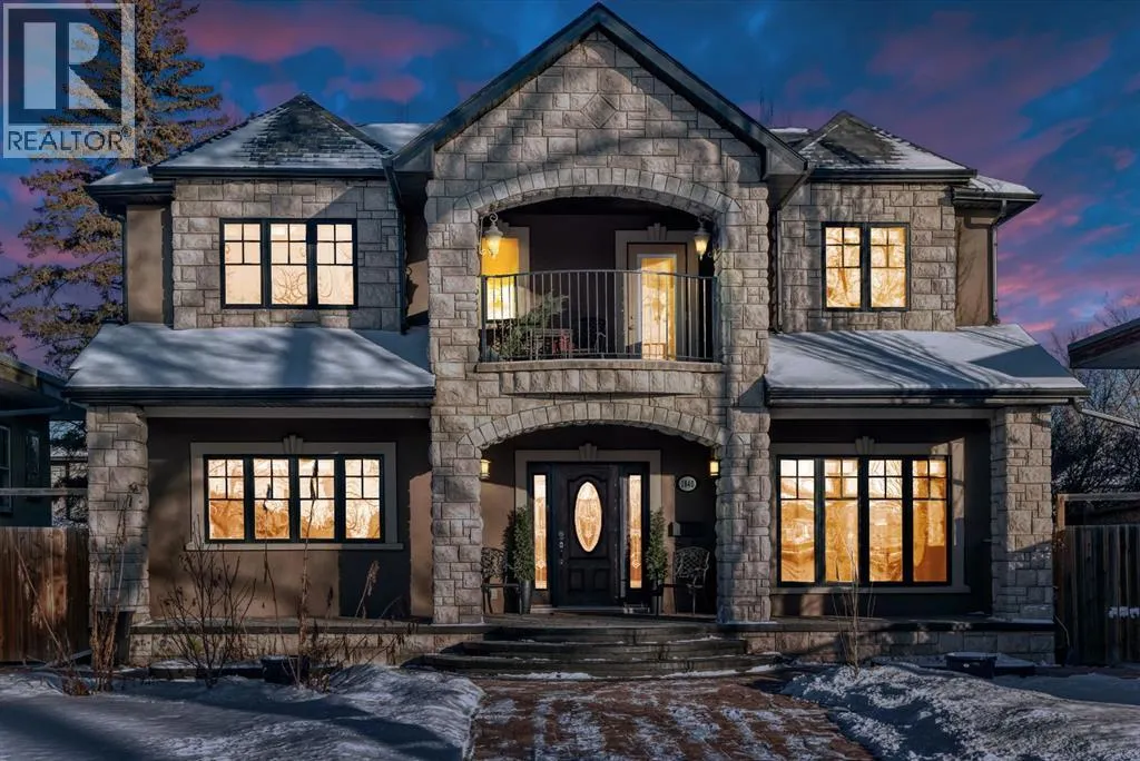 Welcome to this extraordinary custom riverfront estate positioned directly across from downtown Calgary, offering unobstructed Bow River and skyline views on a rare 179â deep lot in the heart of Hillhurst. Situated on an expansive ~8,300+ sq. ft. parcel, this one-of-a-kind residence offers over 5,200 sq. ft. of meticulously crafted living space plus more than 1,100 sq. ft. of covered outdoor living, delivering exceptional scale, craftsmanship, and enduring luxury. This custom-built home features over 8,000 board feet of handcrafted maple millwork, solid maple doors, Brazilian walnut flooring, and an extraordinary selection of exotic hardwoods including tigerwood, birdâs-eye maple, ebony, walnut, and cherry. Architectural details include curved moldings and archways, stone posts, wainscotting, in-stair lighting, built-in speakers, over 200 pot lights, and 11 skylights, creating a warm, timeless ambiance throughout. The main floor is thoughtfully designed for both everyday living and elegant entertaining, highlighted by a front-facing primary bedroom with spa-inspired ensuite featuring in-floor heating, jetted tub, and shower. A formal dining room or executive office complements the showpiece chefâs kitchen, equipped with a 36â Wolf gas range with pot filler, Sub-Zero refrigerator, Bosch dishwasher, walk-in pantry, beveled granite countertops, curved cabinetry, and a custom removable island table. The adjoining living room centers around a fireplace and opens seamlessly to expansive covered decks with cedar ceilings and stamped concrete flooring for year-round indoor-outdoor living. The upper level hosts four additional bedrooms, including two luxurious primary suites with fireplaces and spa-inspired ensuites. The main upper retreat offers a fireplace, sitting area, walk-in closet, steam shower, air-jetted tub, heated floors, and refined finishes. Two additional bedrooms share a Jack-and-Jill bath, alongside a wet bar, second-storey balcony with breathtaking river and skyline views, and a dedicated laundry room. The fully developed walk-out basement features in-floor heating, a recreation room, full kitchenette, two additional bedrooms, and two bathrooms, ideal for extended family, guests, or future income potential. Outdoor living is exceptional, with newly landscaped grounds, and two private putting greens. The real-stone exterior, stamped-concrete driveway, rear alley access, finished four-car garage, 66â RV pad, and parking for up to eleven vehicles complete this rare offering. Recent upgrades include a new roof, downspouts, central A/C, updated mechanicals, and a pre-poured foundation provides a ready-to-build addition (with city of Calgary Permit Approval). Energy-efficient features include triple-pane windows, thicker plywood sheathing, and premium construction materials, enhancing comfort, durability, and lowering utilities. Steps from river pathways, downtown, UofC, SAIT, and Foothills Hospital, this is a rare riverfront estate that truly stands apart. (id:27476)