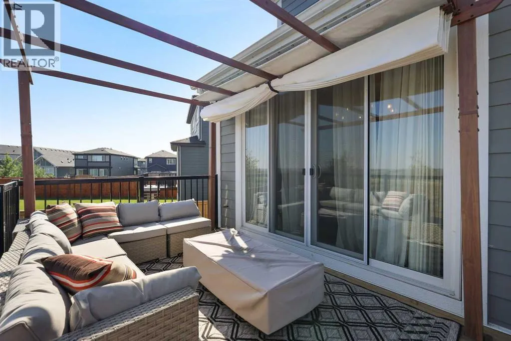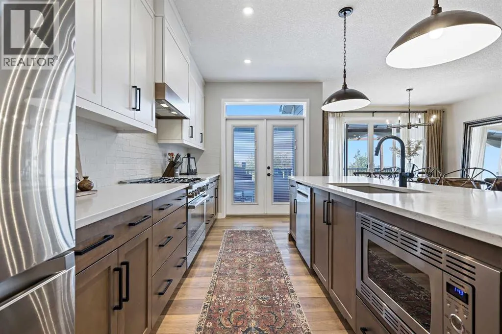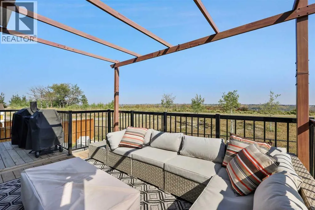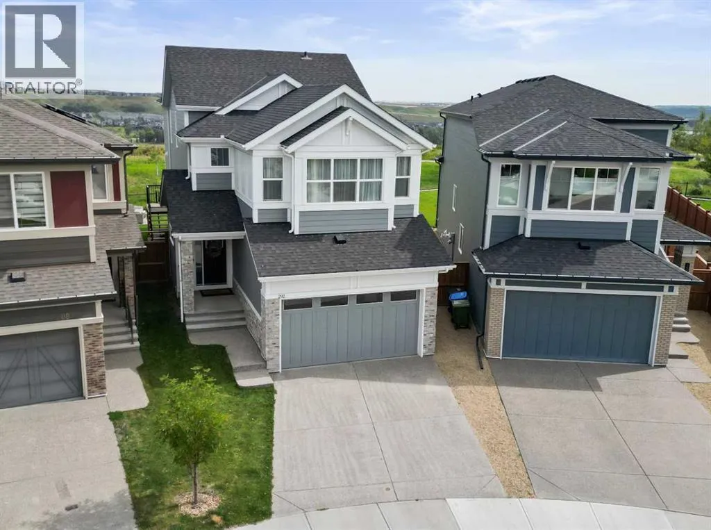 LEGACY RIDGE LOCATION | BOW RIVER VALLEY VIEWS | OVERSIZED PIE LOT | AWARD-WINNING ELLIOT 24 MODEL BY JAYMAN BUILTThoughtfully designed and beautifully finished, this 2348+ sq. ft. executive home offers high-end specifications, premium upgrades, and a floor plan perfect for family living and entertaining.Located in the sought-after Legacy Ridge with future access to the Bow River Valley and pathways, this home is just minutes from schools, shopping, healthcare services, Blue Devil Golf Course, daycare, dog parks, transit, and more.The open-concept main floor showcases a gourmet kitchen with an oversized quartz island, pendant lighting, sleek Bosch stainless steel appliances, a walk-in pantry, and an adjacent dining area that flows seamlessly into the extended great room with a custom gas fireplace and full-tile wall detail. A private main floor den is ideal for a home office or study space. Elegant engineered hardwood floors, upgraded lighting, and tall patio doors with side windows enhance the sense of space and light.Upstairs, youâll find a central bonus room, convenient laundry, and three bedrooms including a grand primary retreat with double-door entry, soaring ceilings, a walk-in closet, and a spa-inspired ensuite with dual vanities, a deep soaker tub, and a tiled glass shower.Other highlights include:9â & 11â ceilings for an airy feelGas line on the BBQ deck for outdoor livingLuxury finishes in all bathrooms and laundryOversized pie-shaped lot with future Bow River viewsPremium Jayman BUILT Quantum Performance Features:⢠6 Solar Panels for energy savings⢠BuiltGreen Canada Certified with EnerGuide Rating⢠Navien tankless hot water heater⢠High-efficiency furnace with HRV & MERV 13 filter system⢠Triple-pane windows⢠Smart home technology (incl. Kasa light switches)⢠Quartz countertops throughoutThis home delivers a rare blend of luxury, efficiency, and locationâall in one of Calgaryâs most desirable new communities.Donât miss thi s opportunityâcall your friendly REALTOR® today to book your private viewing! (id:27476)