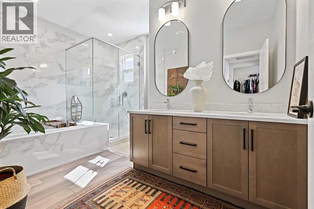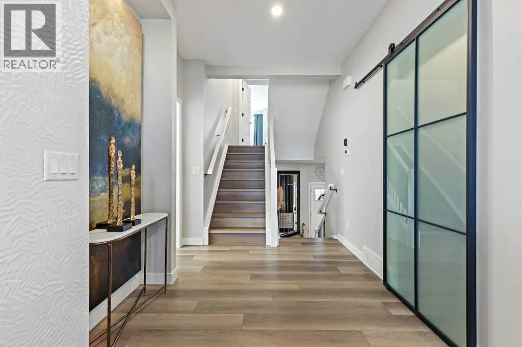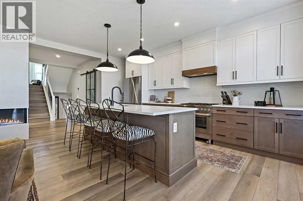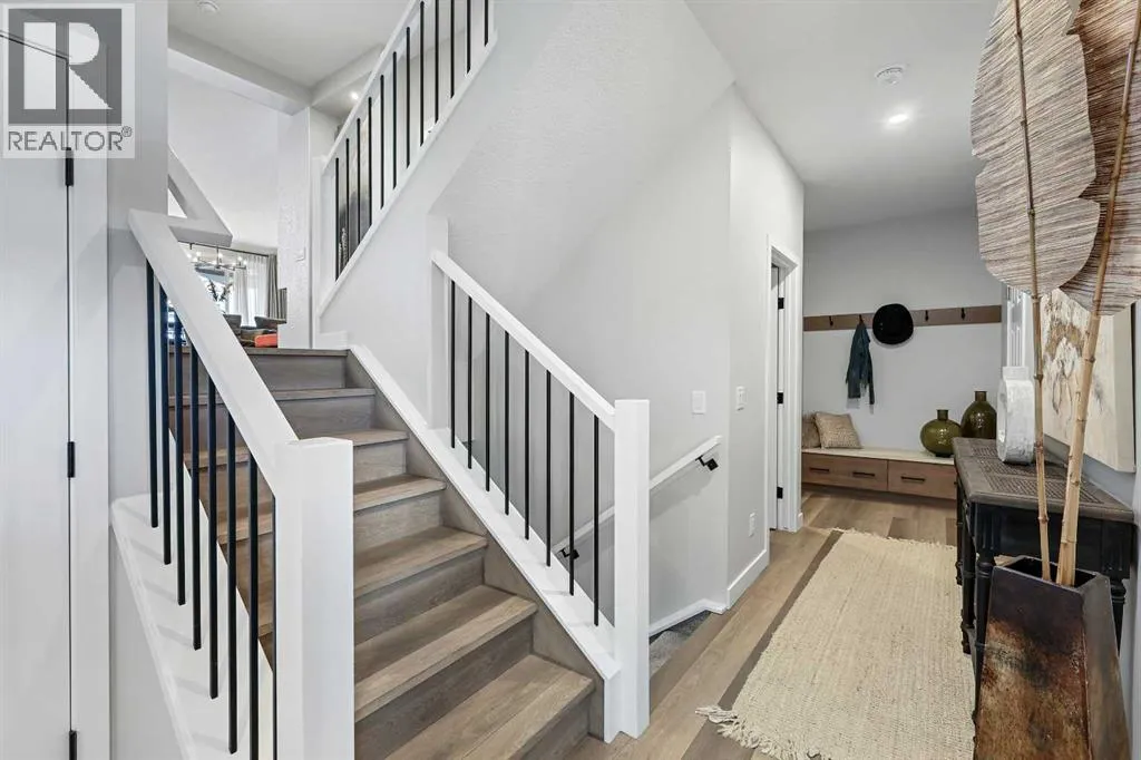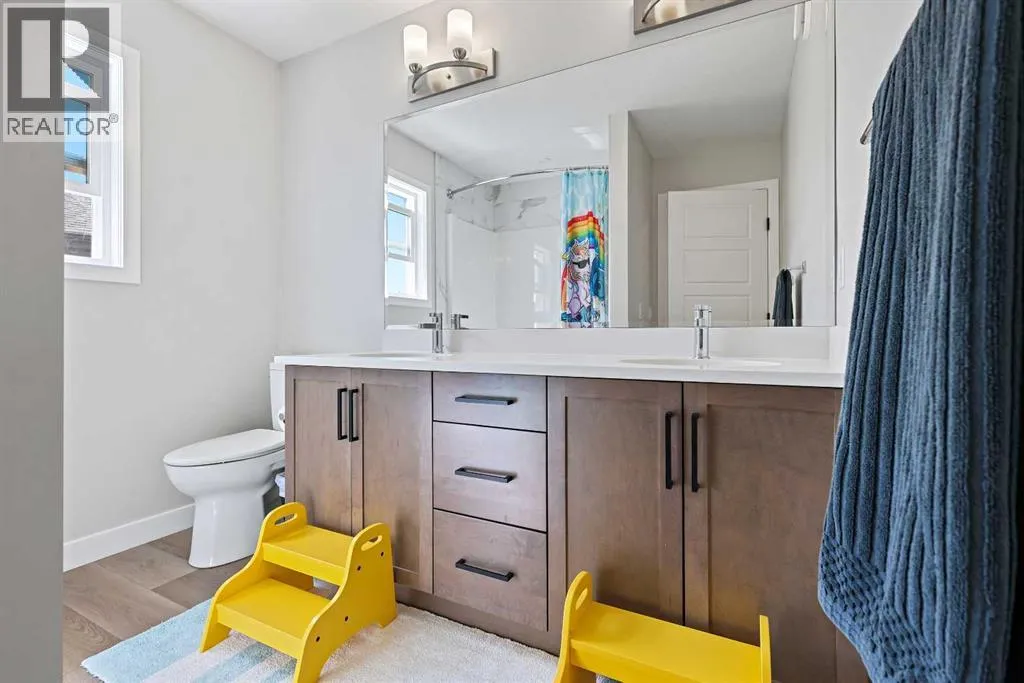 LEGACY RIDGE LOCATION | BOW RIVER VALLEY VIEWS | OVERSIZED PIE LOT | AWARD-WINNING ELLIOT 24 MODEL BY JAYMAN BUILTThoughtfully designed and beautifully finished, this 2348+ sq. ft. executive home offers high-end specifications, premium upgrades, and a floor plan perfect for family living and entertaining.Located in the sought-after Legacy Ridge with future access to the Bow River Valley and pathways, this home is just minutes from schools, shopping, healthcare services, Blue Devil Golf Course, daycare, dog parks, transit, and more.The open-concept main floor showcases a gourmet kitchen with an oversized quartz island, pendant lighting, sleek Bosch stainless steel appliances, a walk-in pantry, and an adjacent dining area that flows seamlessly into the extended great room with a custom gas fireplace and full-tile wall detail. A private main floor den is ideal for a home office or study space. Elegant engineered hardwood floors, upgraded lighting, and tall patio doors with side windows enhance the sense of space and light.Upstairs, youâll find a central bonus room, convenient laundry, and three bedrooms including a grand primary retreat with double-door entry, soaring ceilings, a walk-in closet, and a spa-inspired ensuite with dual vanities, a deep soaker tub, and a tiled glass shower.Other highlights include:9â & 11â ceilings for an airy feelGas line on the BBQ deck for outdoor livingLuxury finishes in all bathrooms and laundryOversized pie-shaped lot with future Bow River viewsPremium Jayman BUILT Quantum Performance Features:⢠6 Solar Panels for energy savings⢠BuiltGreen Canada Certified with EnerGuide Rating⢠Navien tankless hot water heater⢠High-efficiency furnace with HRV & MERV 13 filter system⢠Triple-pane windows⢠Smart home technology (incl. Kasa light switches)⢠Quartz countertops throughoutThis home delivers a rare blend of luxury, efficiency, and locationâall in one of Calgaryâs most desirable new communities.Donât miss thi s opportunityâcall your friendly REALTOR® today to book your private viewing! (id:27476)