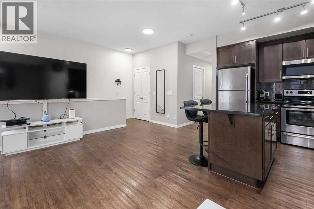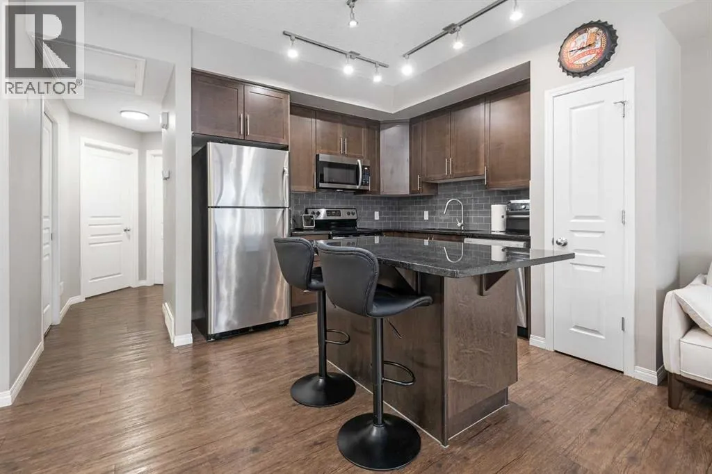 Fantastic and well-maintained 2-bedroom, 1-bathroom townhouse with an attached single garage, offering a functional layout and move-in-ready condition.The kitchen features a central island with granite countertops, espresso cabinetry, stainless steel appliances, a pantry, and a dedicated dining area. The bright living room is filled with WEST-facing natural light from a wall of windows and provides access to a private deck with a gas BBQ hookup.Down the hall is a 4-piece bathroom with in-suite laundry, a spacious primary bedroom with a walk-in closet, and a second bedroom ideal for children, guests, or a home office. Located in the highly desirable Auburn Bay, a four-season lake community, this home offers lake access and excellent proximity to amenities including multiple shopping plazas, South Health Campus Hospital, the largest YMCA in Calgary, VIP Cineplex Theatre, and nearby dog parks. An excellent opportunity for first-time buyers, investors, or those seeking a low-maintenance lifestyle in a prime SE location. (id:27476)