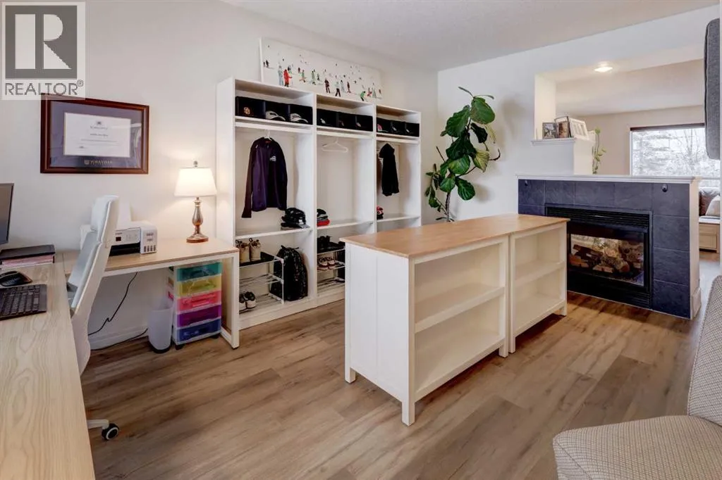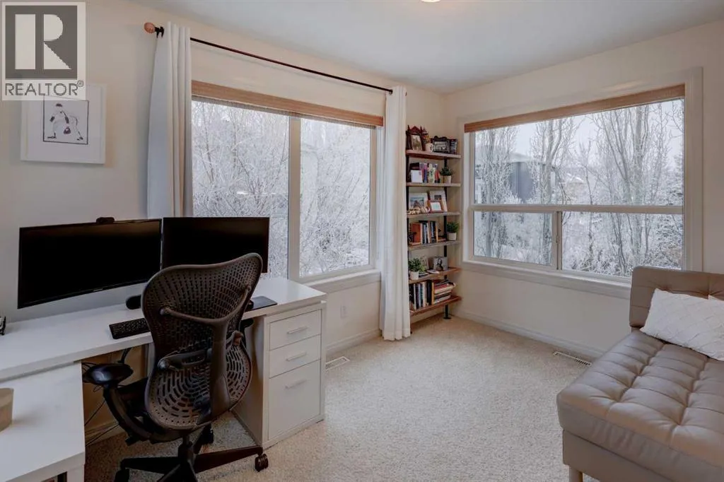 Nestled on one of the most quiet, sought-after streets in Cougar Ridge, this beautifully maintained two-storey home stands out for its immediate access to Calgaryâs west-side lifestyle. Just steps from the Paskapoo Slopes trail networkâone of the cityâs largest natural reservesâalong with a neighbourhood playground, this location offers a rare balance of everyday convenience and direct connection to nature, all while maintaining quick access to downtown, West Calgary amenities, and mountain routes. Designed with family living in mind, the home offers four bedrooms above gradeâthree with walk-in closetsâand a standout primary suite that includes a separate flex room. This additional space is ideal for a reading area, home fitness, or quiet workspace, providing a distinguishing level of versatility. The main level impresses with soaring 9-foot ceilings, newer luxury vinyl plank flooring, and fresh, premium Benjamin Moore Aura paint throughout, including cabinetry, railings, and vanities. A newer Waterboss water softener adds everyday luxury, while dual-zone Lennox heating and air conditioning enhance comfort on all levels. At the heart of the home is a chefâs kitchen complete with gleaming granite countertops, updated backsplash, abundant cabinetry and drawers, a corner pantry, stainless steel appliances, and a generous island perfect for casual meals or entertaining. Additional main-floor highlights include an adaptable office space (currently transformed into a captivating movie room), a convenient laundry area, powder room, and direct access to the attached double garage featuring ample storage with ceiling track hoists, shelving, and wall organizers. Upstairs, discover four well-appointed bedrooms, including one that could easily revert to a bonus room and served by a full four-piece bathroom featuring a new tile backsplash. The generous primary suite indulges with a luxurious five-piece ensuite (also with a new tile backsplash) , expansive walk-in closet, and the separate flex roomâperfect for whatever you desire. The developed portion of the basement elevates family fun with a dedicated sports room designed for hockey shooting and baseball batting practice, complete with netting, an L-screen for pitching, and full framing, insulation, electrical connections, and protected bright LED lighting. Step outside to a mature, beautifully landscaped backyard featuring a spacious deck with a natural gas BBQ line and a charming paver stone patioâperfect for summer gatherings and relaxing evenings. Donât miss this rare opportunity to own an exceptional family home in one of Cougar Ridgeâs most desirable locations. (id:27476)