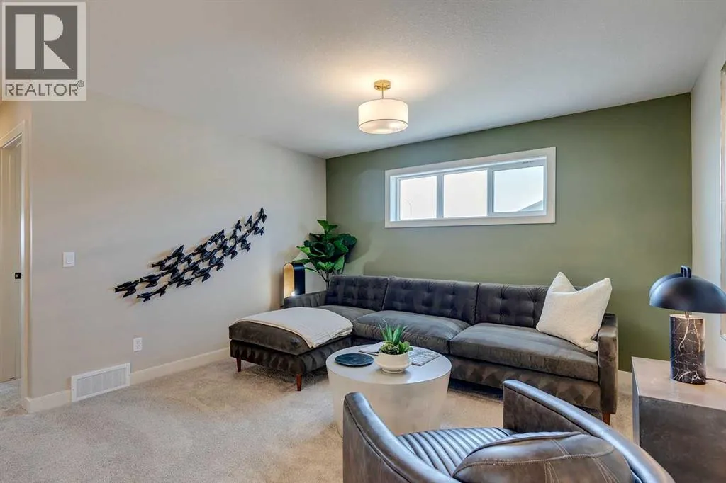 Meet the Winslow, Built by Master Builder Douglas Homes!Nestled in the highly sought-after community of Crimson Ridge, this stunning new build offers the perfect blend of luxury, comfort, and nature. Backing onto scenic walking paths and the prestigious Lynx Ridge Golf Course, this home provides views and an unparalleled sense of tranquility.Spanning over 2,000 sq. ft., this open-concept design is crafted with quality finishings and modern elegance. Hardwood floors flow seamlessly throughout the main level, leading to a great room with a cozy fireplace, an inviting dining room, and a chef-inspired kitchen featuring an oversized island, quartz countertops, stylish cabinetry, and five stainless steel appliances, including a gas stove. A spacious floor to ceiling pantry and coffee station adds convenience, while the flex room - ideal as an office, den or play room for the kids offers additional versatility. Step outside to enjoy the expansive 20â x 10â covered patio - perfect for entertaining or unwinding in nature.Upstairs, the home continues to impress with three spacious bedrooms, a loft-style bonus room, and a dedicated laundry room. The primary suite is a true retreat, featuring a luxurious 5-piece ensuite with a soaker tub, separate glass shower, double vanities, and a generous walk-in closet.The fully finished basement extends the living space with a large recreational room, an additional bedroom, and a full bathroom, making it perfect for guests or family gatherings.With 9 ft. ceilings, 8 ft. doors on the main level, and exceptional craftsmanship throughout, this home is both sophisticated and functional. Surrounded by nature and minutes from amenities, this is a rare opportunity to own a Douglas Home in one of the most desirable location. This home is under construction, some of the photo's may not be a true representation of this home. (id:27476)