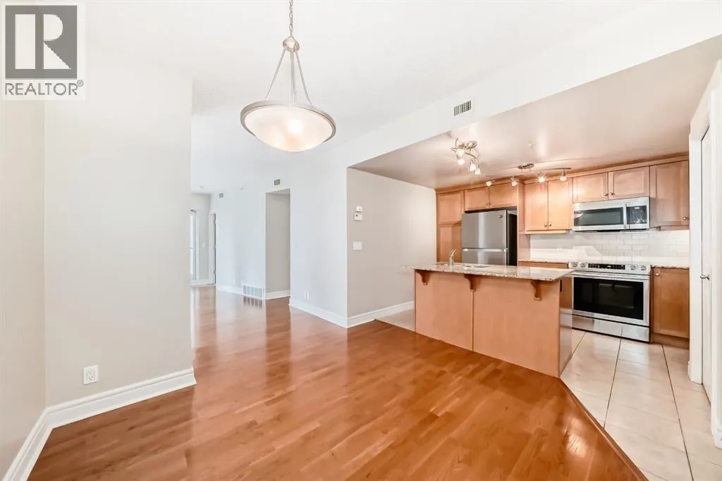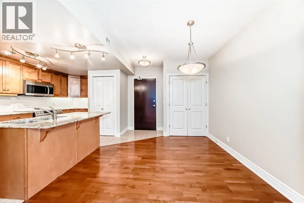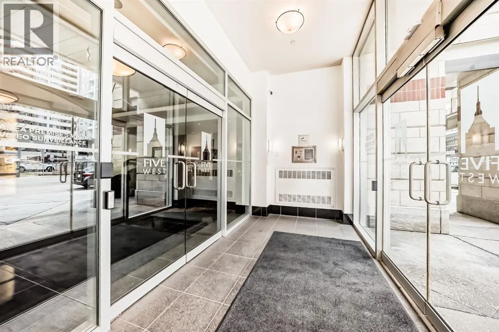 This Executive downtown West end condo in Luxury FIVE WEST has one of the best locations condo life has to offer, right in the downtown core with ideal access to the +15 walkway system, LRT, restaurants, shopping and the Bow River Pathways. This 1-bed condo has the fantastic upgrades. Fireplace, Granite counter tops and tile backsplash in the kitchen, Hardwood and Ceramic tile floors, and a gorgeous stainless steel appliances, central air-condition. New Paint recently has been done. You also get to enjoy amenities such as concierge service, a titled parking stall and storage locker, underground heated parking stall & Car wash bay as well. Make your appointment to see this unit today! (id:27476)