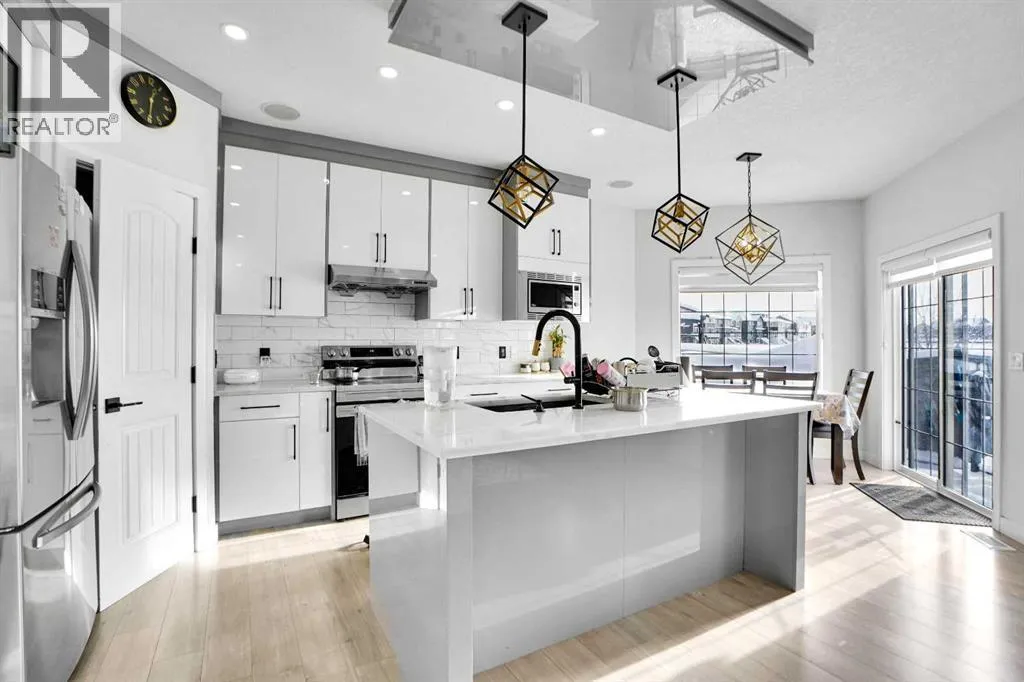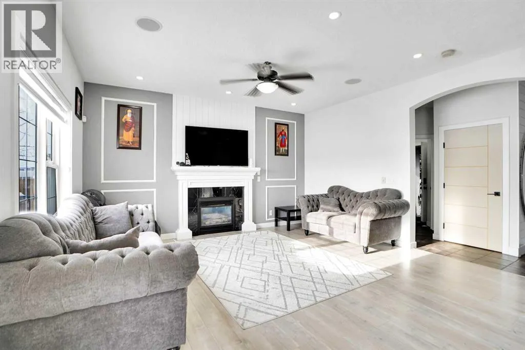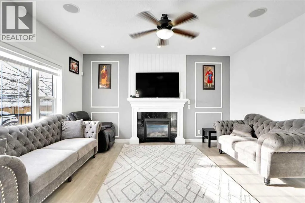 Stunning AIR-CONDITIONED former SHOW HOME backing onto a PLAYGROUND and Hugh A. Bennett School!From the moment you walk in, youâll be impressed by the abundance of natural light pouring through the large windows and the fresh NEW flooring. The spacious living room features a cozy gas fireplace, leading to a beautifully renovated kitchen with built-in stainless steel appliances and granite countertops. The bright breakfast nook opens to a sunny SOUTH-facing backyard complete with a large deckâperfect for family gatherings and summer BBQs.Upstairs, the huge primary bedroom offers a 5-piece ensuite and walk-in closet. Youâll also find two additional bedrooms, a full common bath, and a generous bonus room ideal for family movie nights. Additional highlights include: Built-in speaker system and security system, Fully finished drywalled attached garage , Outdoor recessed lighting. LEGAL 1-bedroom basement suite for mortgage-helping rental income.Located steps from the pond, pathways, playground, school, shopping, Saddletowne Circle, LRT, and the Genesis Centre.Donât miss this opportunityâcall today to view before itâs gone! (id:27476)