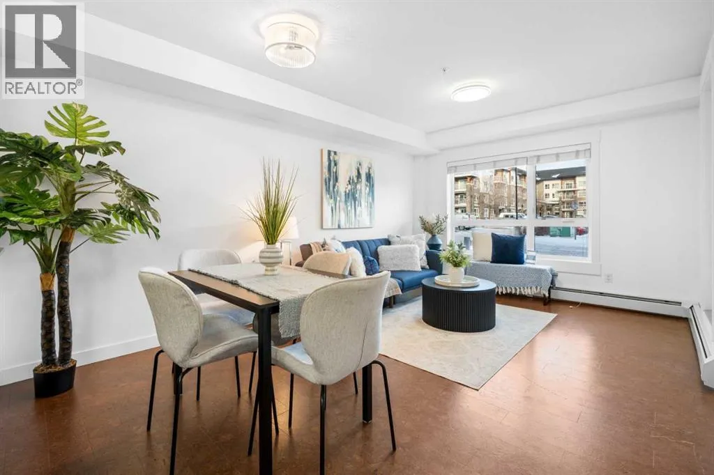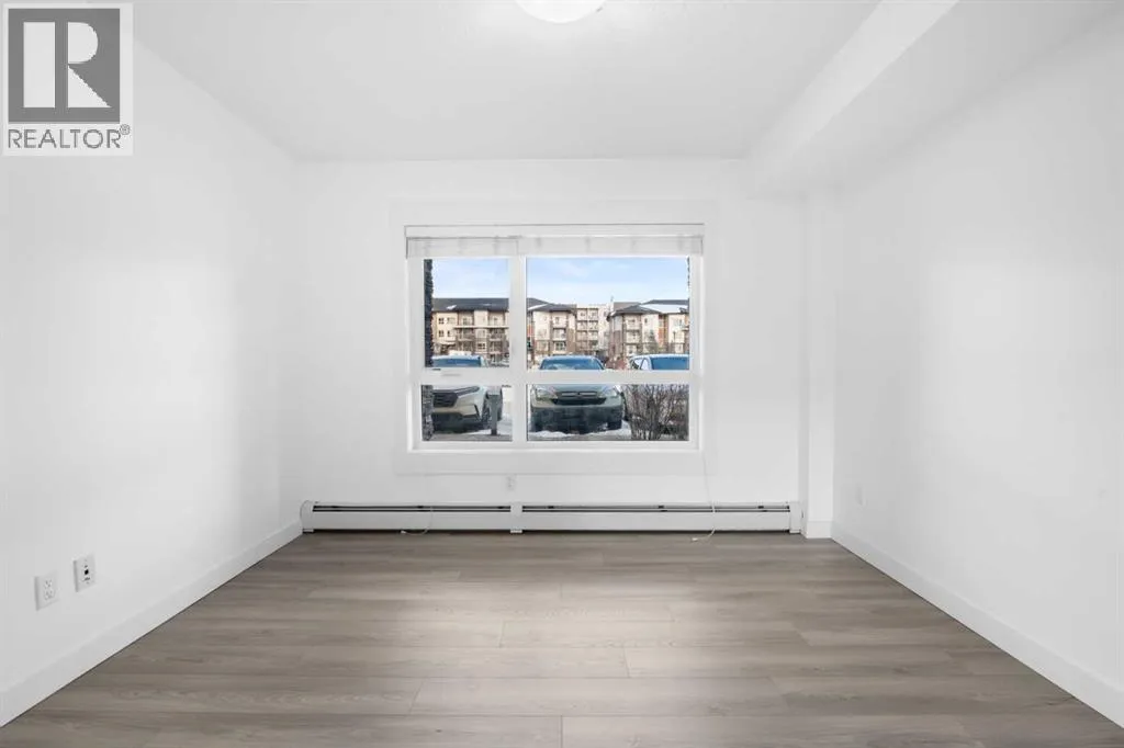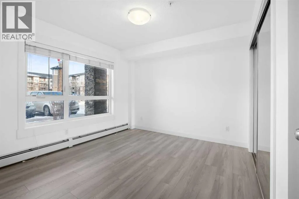 Welcome to this bright ground-floor apartment in the heart of Skyview Ranch, ideally located across from Public and Catholic schools. This well-designed 2-bedroom, 1-bathroom unit features an open-concept floor plan with approximately 630 sq. ft. of total area space, perfect for first-time buyers, downsizers, or investors.The kitchen offers granite countertops, stainless steel appliances, and a functional island that comfortably seats three bar stools, flowing seamlessly into the dining and living areas. The spacious living room opens through glass-panel patio door to an exposed concrete patio with a gas line, ideal for BBQ season.Both bedrooms are well-sized, with the primary bedroom offering generous space and dual closets. Enjoy the convenience of in-suite laundry with extra storage, along with titled surface parking.Situated in a well-managed complex with easy access to public transit, shopping, playgrounds, and close proximity to CrossIron Mills and major roadways.Book your private showing todayâthis one wonât last! (id:27476)