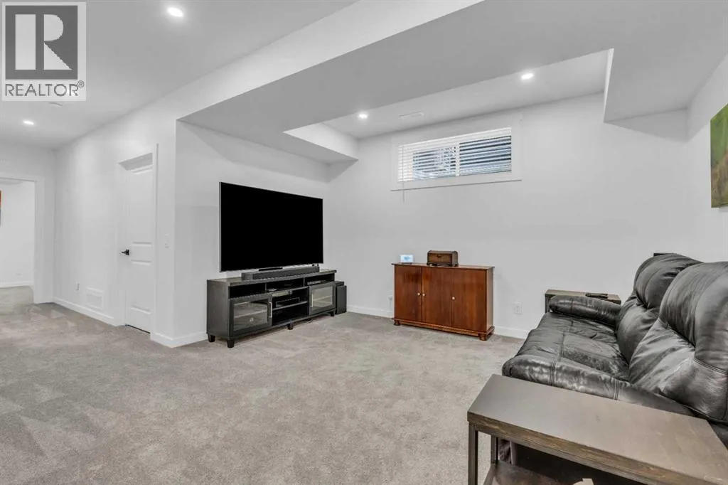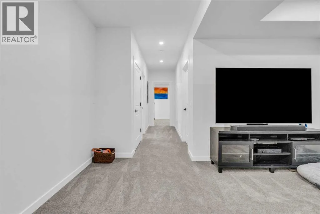 Designed and built by Shane Homes, this polished 4-bedroom, 3.5-bath residence offers over 2,400 sq ft of fully developed living space, blending contemporary finishes, smart-home comfort, and rare backyard seclusion in the heart of Wolf Willow.The main floor welcomes you with an open, airy feel highlighted by 9-foot ceilings, striking black-accented hardware, and a chef-inspired kitchen featuring premium appliances, streamlined cabinetry, and modern finishesâperfect for both entertaining and everyday living. The seamless layout creates a natural flow between the kitchen, dining, and living areas.The second level features three generously sized bedrooms and a flexible bonus room, ideal for a home office, playroom, or lounge. The primary retreat includes a walk-in closet and a sleek 3-piece ensuite, while a full 4-piece bathroom and a conveniently located upper-level laundry area add everyday functionality.The professionally finished, fully permitted basement expands the living space with a large fourth bedroom with its own walk-in closet, a modern 4-piece bathroom, and a spacious recreation areaâperfect for guests, teenagers, or a dedicated media room.This home is thoughtfully equipped for year-round comfort with central air conditioning, a water softener, and integrated smart-home features. Outside, the fully fenced and landscaped backyard leads to a 20â x 24â detached garage complete with an 8â overhead door, insulation, 30-amp service, and an upgraded 60-amp lineâideal for EV charging or workshop use.Backing onto a permanently closed road and city-owned green space, this home enjoys exceptional backyard privacy rarely found in newer communities. Located minutes from the Bow River, Fish Creek Park, and expanding commercial amenities, this move-in-ready home delivers the perfect blend of nature, convenience, and modern living.Schedule your private showing today and experience Wolf Willow at its finest. (id:27476)