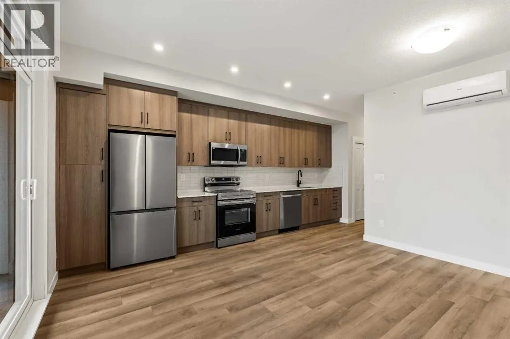 Where Modern Style Meets Everyday Convenience...Unit 402 at 50 Sage Hill Walk NW welcomes you to top-floor living within a beautifully designed 2024-built building offering modern comfort, clean aesthetic, and move-in ready appeal in one of Calgaryâs fastest-growing communities. This one-bedroom, one-bathroom condo instantly feels bright and inviting, with an open-concept layout that allows natural light to flow across every square inch of space.The contemporary kitchen features sleek laminate cabinetry, stainless steel appliances, a built-in dishwasher creating a polished and functional cooking space. Upgraded luxury flooring runs throughout the home, and the living room opens onto a spacious fourth-floor balcony, ideal for morning coffee, lounging, or simply enjoying fresh air with an elevated view.Thoughtful details bring comfort to everyday living: enjoy air conditioning, high-quality finishes, and a heat-recovery ventilation system designed to improve indoor air quality. In-suite laundry adds total convenience, while a titled parking stall and underground storage locker provide exceptional value and practicality.Outside, Sage Hill offers the best of both urban access and natural surroundings. Discover grocery stores, boutique cafés, local restaurants, fitness options, and major shopping centres all within minutes of your home. Scenic parks, walking paths, and biking routes weave throughout the area, connecting you to nature without sacrificing city convenience. Commuting is simple, with Stoney Trail, Shaganappi Trail, transit routes, and YYC International Airport all close by.Whether youâre a first-time buyer searching for the perfect entry into homeownership, a downsizer craving ease and comfort, or an investor looking for a modern, low-maintenance opportunity, Unit 402 delivers exceptional lifestyle and long-term value. This is contemporary condo living...fresh, stylish, functional, beautifully finished, and ready to be yours! (id:27476)