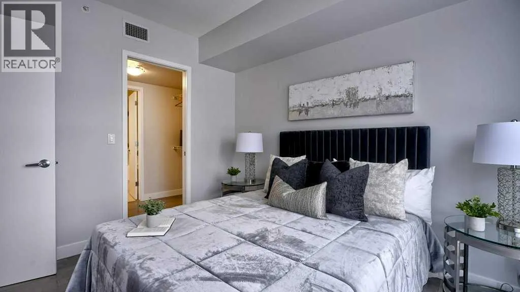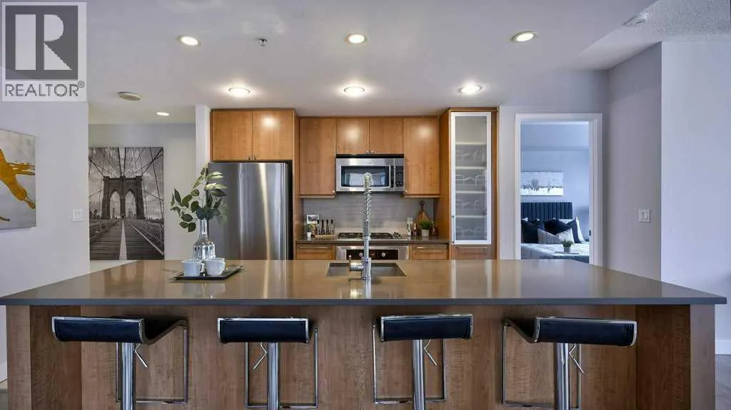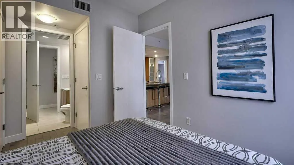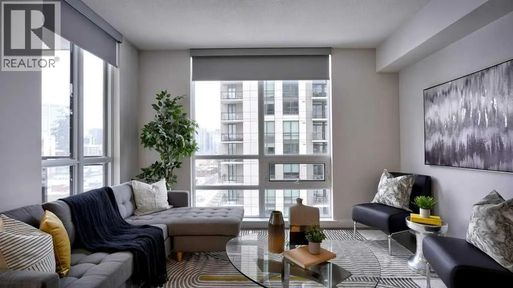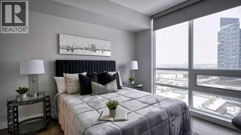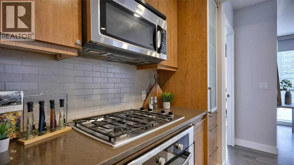 Panoramic city skyline views surround this sleek 14th-floor corner residence, featuring expansive floor-to-ceiling windows with custom blinds and a contemporary 2-bed, 2-bath layout. Freshly painted from top to bottom, including all trim and baseboards, for a crisp, move-in-ready finish. Step into a generous entryway with rich hardwood floors that extend into the bright, open-concept living space. The modern kitchen features extensive cabinetry with convenient pull-out shelves, sleek stainless steel appliances, and elegant quartz countertops. The kitchen flows seamlessly into the sun-filled living room and open dining area, which extends onto a glass-railed balcony offering uninterrupted city views. Thoughtfully designed with bedrooms on opposite sides, this layout ensures maximum privacy. The primary suite offers a spacious walkthrough closet and a luxurious 5-piece ensuite complete with double sinks, a deep soaker tub, and an oversized shower. The second bedroom provides two closets and a stylish 3-piece ensuite featuring a fully tiled shower and contemporary vanity. The flex room offers versatility as a den, home office (with cable and electrical outlets), or generous in-suite storage. Convenient in-suite laundry includes a Bosch washer and dryer. Residents of Nova enjoy a wealth of amenities: a state-of-the-art fitness Centre, inviting social room, guest suites, secure bike storage, 24-hour concierge/security, and a beautifully maintained outdoor garden on the second floor. The pet-friendly location is exceptionalâCo-op and Tim Hortons are right across the street, the C-Train is just three blocks away, and 17th Avenueâs vibrant dining, shopping, parks, and off-leash dog parks are all within easy walking distance. (id:27476)