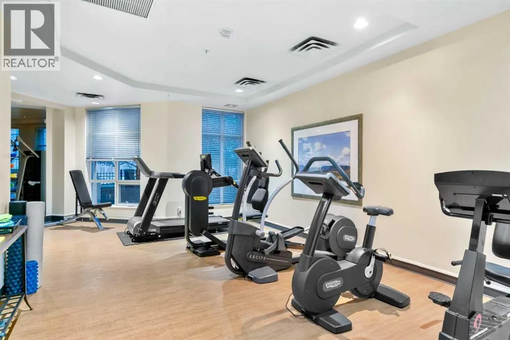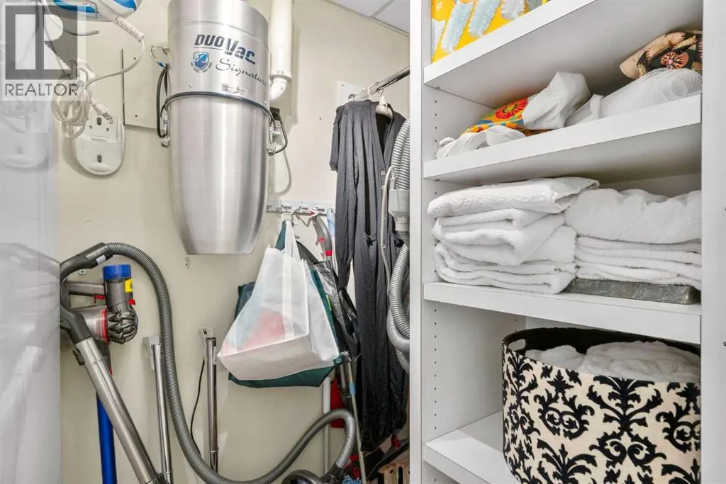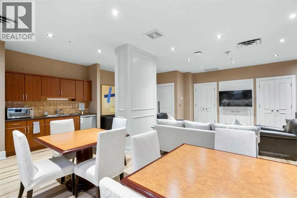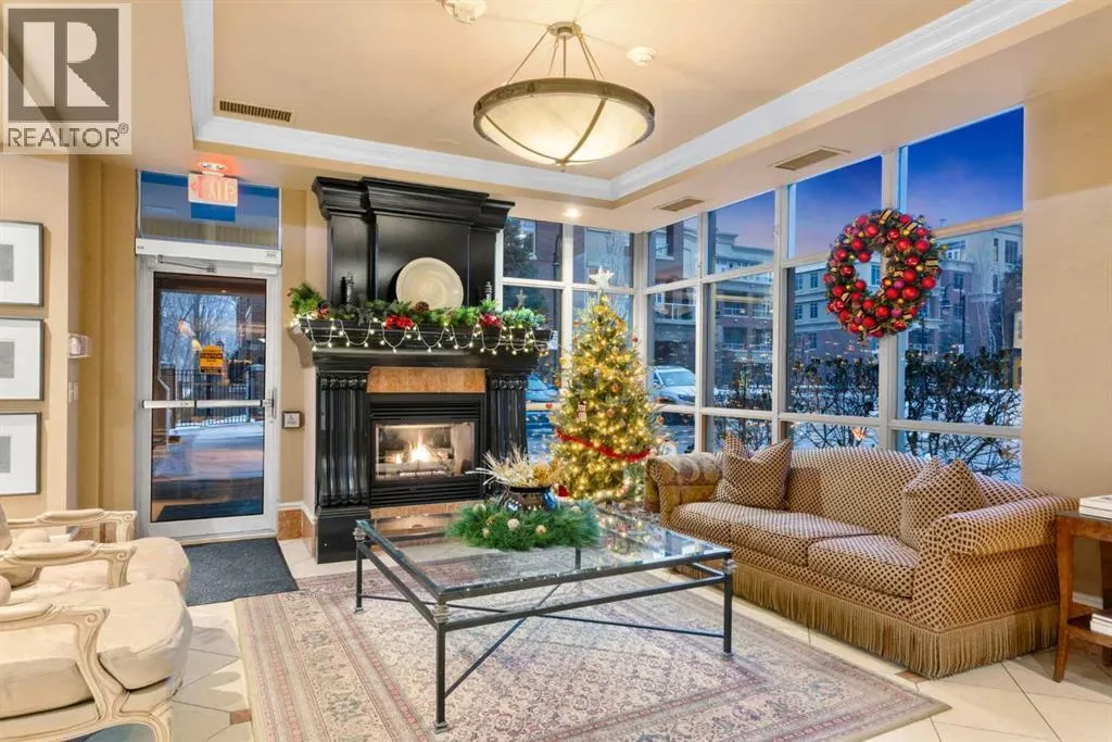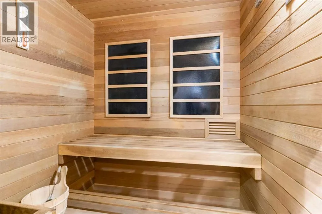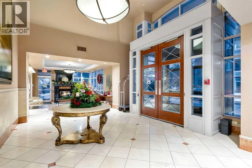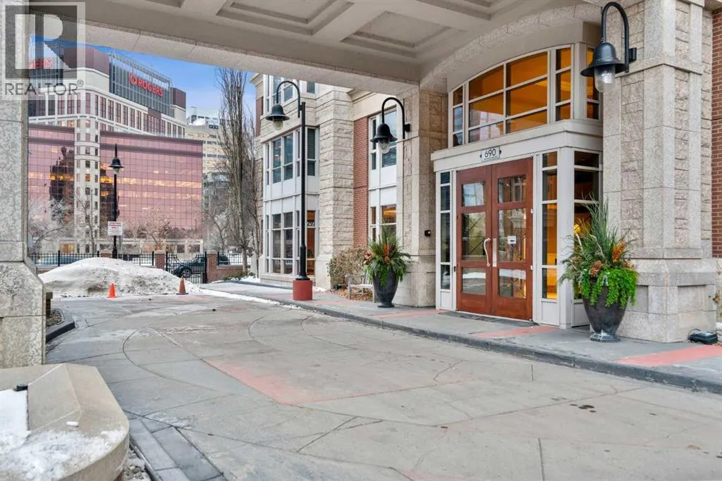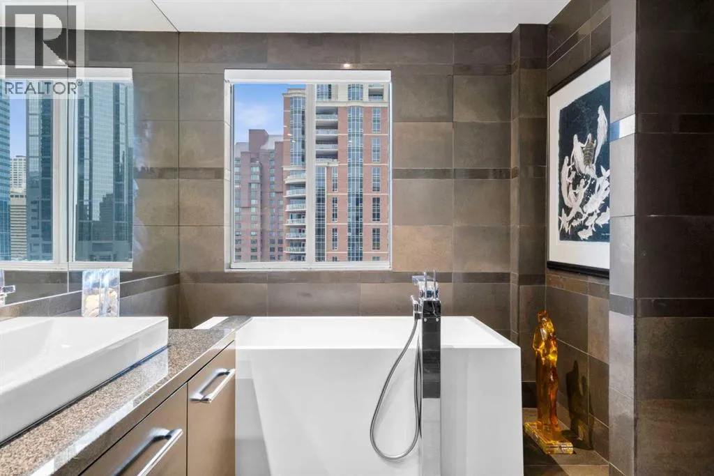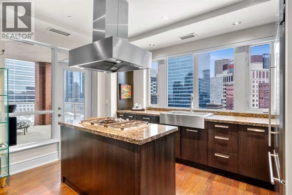 Welcome to Princeton Hall, one of Calgaryâs most prestigious and renowned residential addresses, ideally situated in the heart of Eau Claire, directly along the Bow River and Princeâs Island Park. This exceptional 8th-floor, southwest-facing corner residence offers 1716 sq. ft. of luxurious living space, flooded with natural light through expansive floor-to-ceiling windows showcasing breathtaking views of the river, park, and downtown skyline. Meticulously redesigned by pre-eminent interior designer Douglas Cridland, the home is a refined contemporary masterpiece featuring rich solid hardwood flooring, exotic zebra wood paneling, custom solid wood built-ins, coffered ceilings, gas fireplaces, B&O sound system, luxurious wool carpeting in the bedrooms, Hunter Douglas window coverings, and central AC. The open concept living and dining areas are ideal for both elegant entertaining and everyday comfort featuring floor to ceiling windows, fireplace with custom feature wall, plus feature shelving in the dining area. The primary suite is a private retreat, totally separated from the main living area, featuring two walls of windows, a dual sided fireplace to the ensuite, wall-mounted TV, boutique style wood paneled walk-in closet, in addition to a full wall of built-in drawers and cabinets, custom blinds, a spa-inspired 5-piece ensuite with freestanding wet tub, multiple head walk-in shower, granite counters, private water closet and granite tiled walls. The second bedroom / den showcases stunning wood paneling, plus discreetly concealed 3 piece ensuite and closets. The gourmet kitchen impresses with extensive custom cabinetry, thick granite counters, an oversized storage rich island, dual sized deep sink, professional appliances including gas cooktop with designer hood fan, built-in wall oven, microwave/oven, warming drawer, wine and bar fridges, Monogram fridge, dishwasher, and sleek aluminum pull-down cabinet doors that allow the storage to be concealed. The unique eat ing bar affords additional storage. The generous covered terrace with a gas BBQ line extends the living space. The beautifully finished service room combines in-suite laundry and storage. Exclusive features include private elevator access directly into the suite, two titled heated underground parking stalls, and an oversized titled storage locker. Princeton Hall offers a truly elevated lifestyle with 24 hour concierge, grand two story lobby, fitness center with steam and sauna, temperature controlled wine cellar and tasting room, private function and board rooms, ownerâs lounge, guest suite, visitor parking, and a heated underground parkade with car wash. Steps from river pathways, downtown offices, boutique shopping, fine dining, Kensington, and major routes, this remarkable residence presents a rare opportunity to own an extraordinary home in one of Western Canadaâs most distinguished condominium developments. (id:27476)