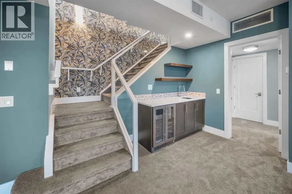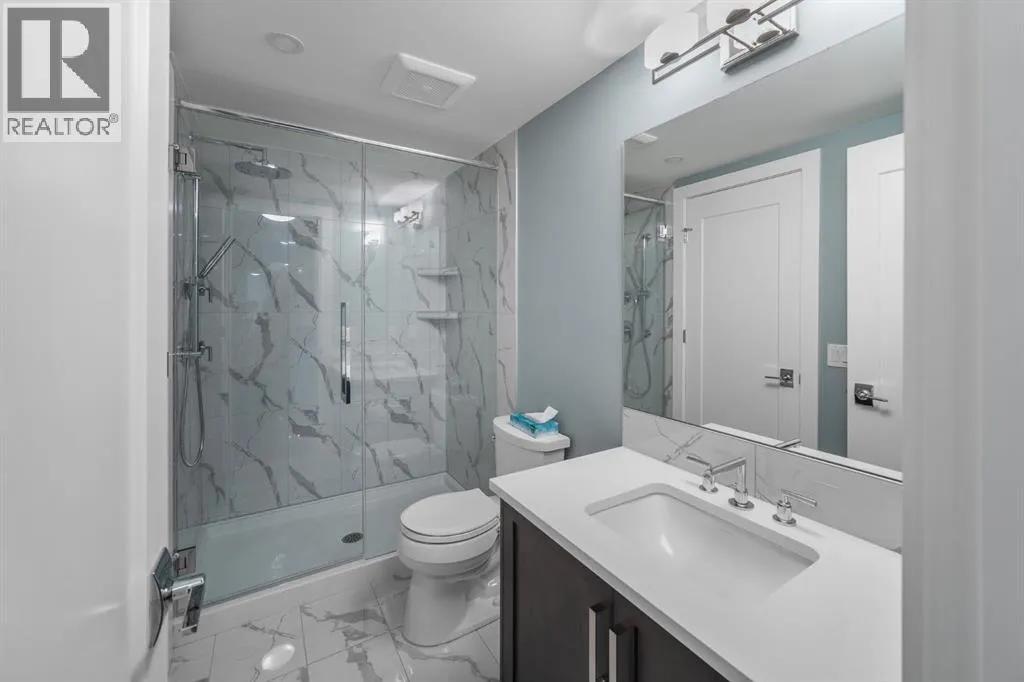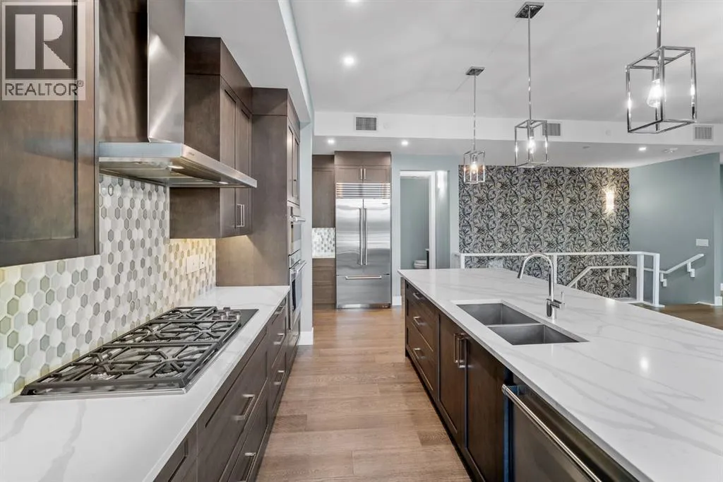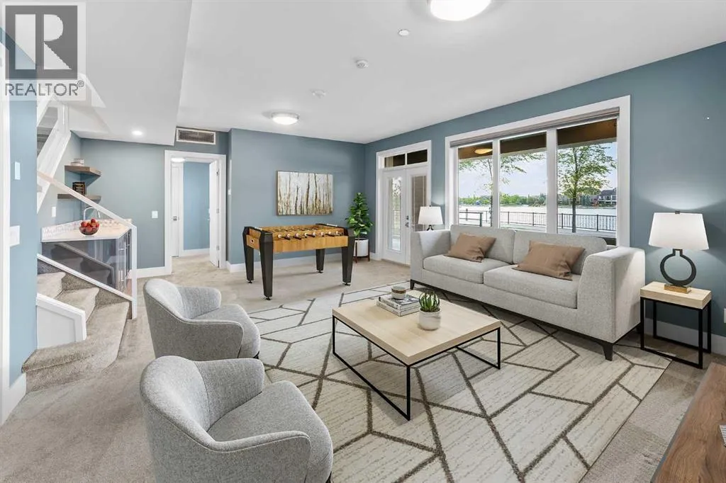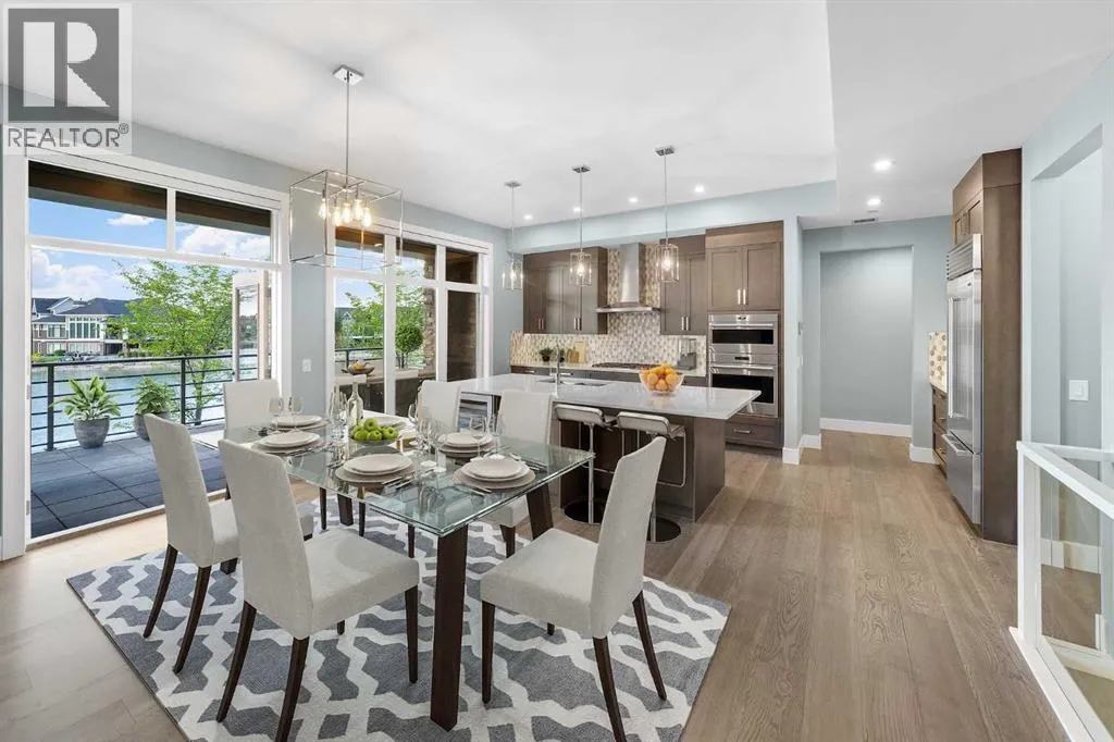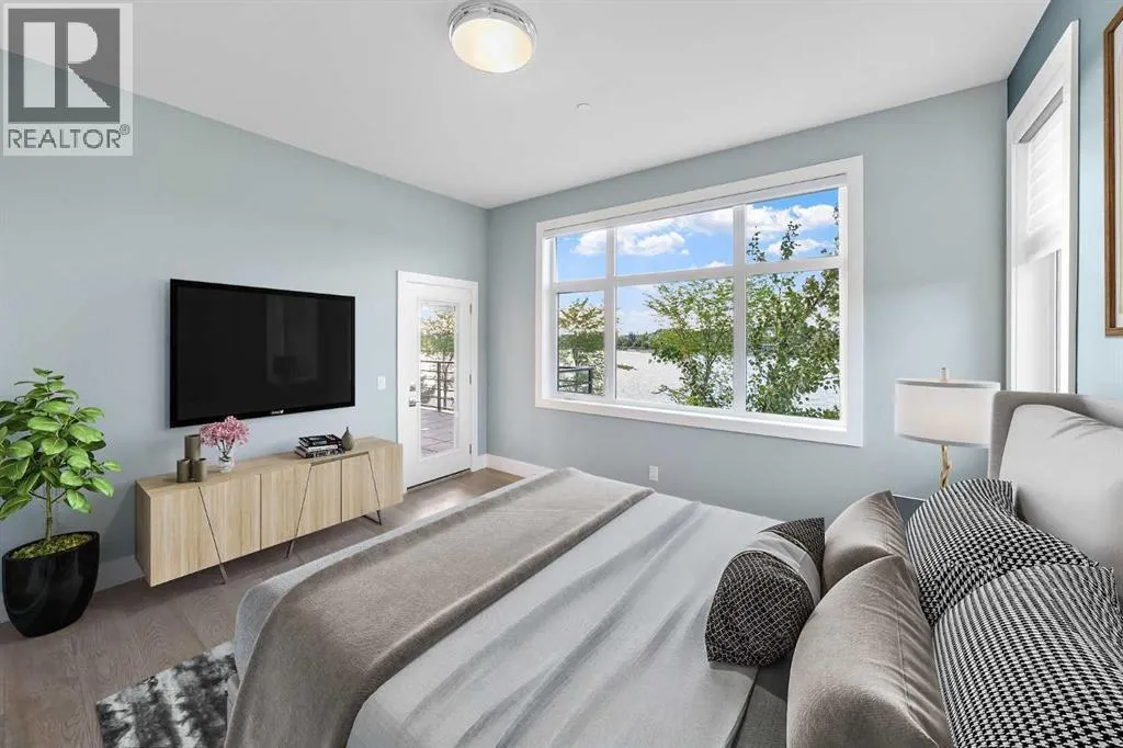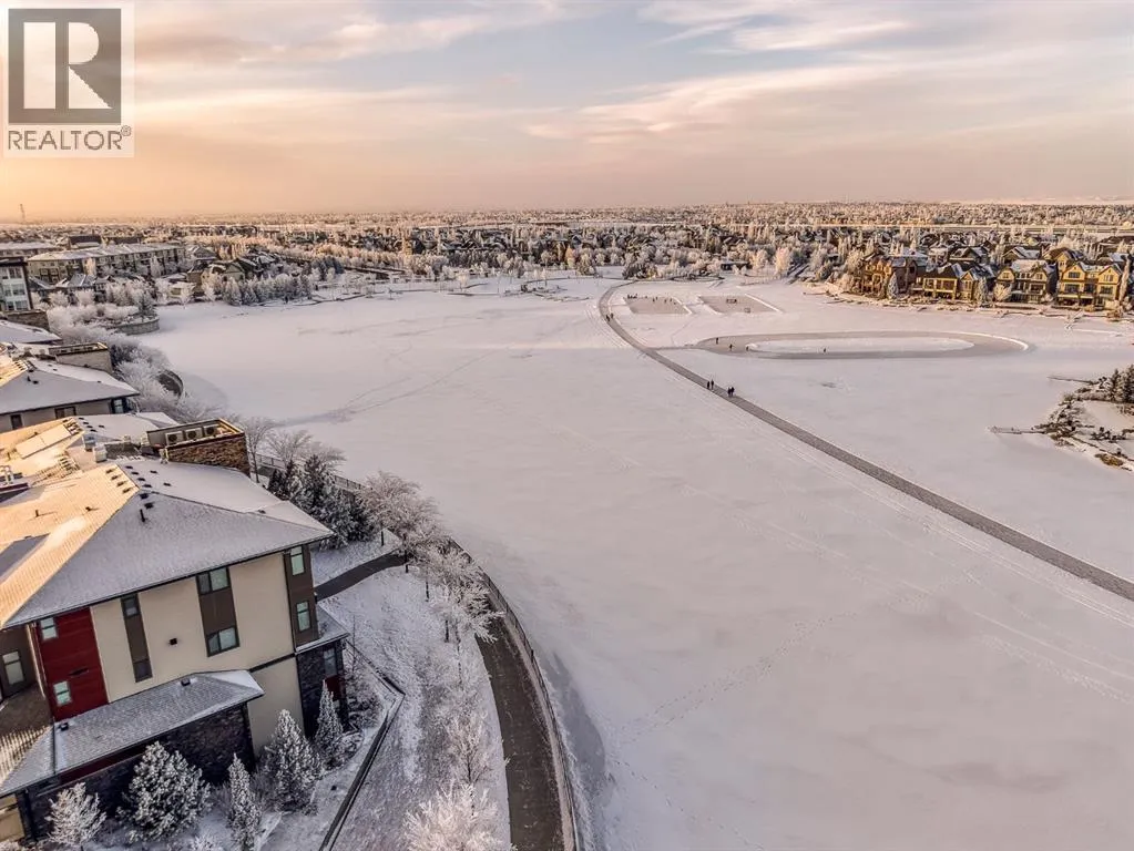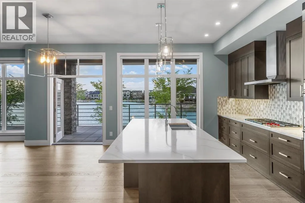 Welcome to an exceptionally rare lakefront residence in Westman Village, where intentional multi-level design elevates both privacy and livability. Perfectly positioned along the shores of Mahogany Lake, this sophisticated walkout home offers over 2,380 sq ft of thoughtfully separated living space, paired with an extraordinary 725 sq ft of covered outdoor balconiesâall with uninterrupted lake views from both levels.Designed with purpose, the multi-level layout creates natural zones for living, entertaining, and retreat. The main level is devoted to elevated everyday livingâanchored by a stunning chefâs kitchen featuring bold cabinetry, a gas cooktop, built-in wall ovens, premium appliances, and curated designer finishes. Expansive walls of glass flood the open-concept living and dining areas with natural light, while the lake becomes a living backdrop for hosting, relaxing, and gathering.The primary suite is intentionally positioned for privacy, offering a true retreat away from the main living spaces. Here, direct balcony access and a spa-inspired five-piece ensuiteâcomplete with a deep soaker tub, dual vanities, walk-in shower, and refined detailingâcreate a sanctuary designed for rest and rejuvenation.The walkout lower level introduces a second living experienceâideal for guests, family, or extended stays. With direct access to the lakefront pathways and parks, this level functions as a private lounge, guest retreat, or flex space that seamlessly connects indoor comfort with outdoor serenity. Itâs a layout that offers the feel of a luxury home with the ease of condominium living.Living in Westman Village means enjoying a lifestyle that is as refined as it is effortless. Residents have exclusive access to a 40,000 sq ft private amenity centre, featuring a fitness studio, indoor pool with waterslide, golf simulator, wine room, art studio, movie theatre, and more. Just steps away, world-class dining and retailâincluding Chairmanâs Steakhouse, Alvinâs Jazz Lounge , and Analog Coffeeâbring a vibrant, walkable energy to everyday life.This is true lock-and-leave luxury, enhanced by 24/7 concierge and security, heated underground parking for residents and guests, and an integrated +15 skywalk and underground tunnel systemâensuring comfort, privacy, and peace of mind year-round.For those who value intentional design, defined spaces, and elevated living, this multi-level lakefront residence offers a lifestyle that feels both expansive and intimate.A statement in architectural purpose, refined living, and unparalleled lakefront locationâthis is Westman Village living, elevated. (id:27476)