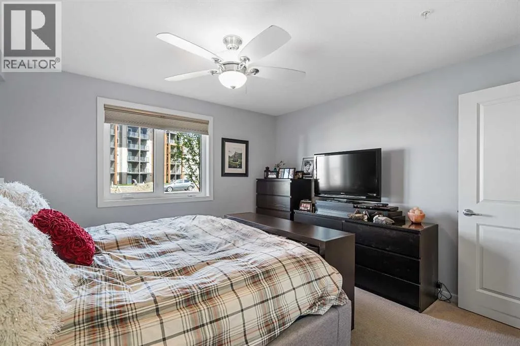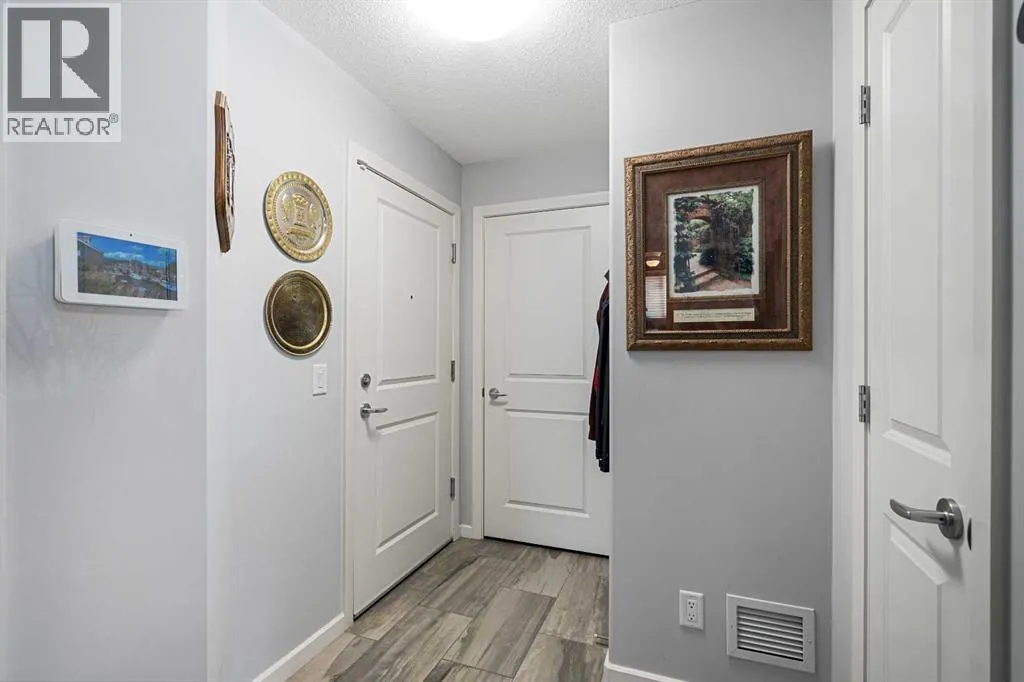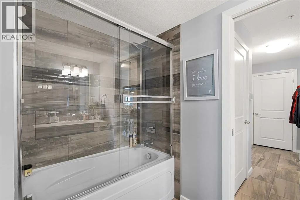 High-end finishes and thoughtfully curated upgrades define this elegant residence! Highlighted by a chefâs dream kitchen, featuring an extra-long island with seating. This condo perfect for entertaining and everyday living. Additional upgrades include tile flooring in the entryway, kitchen, and bathrooms; quartz countertops; premium stainless steel appliances; a designer backsplash; a custom window blind package; and a striking full-wall fireplace with mantle. Central air conditioning ensures year-round comfort.A rare and highly sought-after feature is the direct access from the private balcony, creating a seamless indoor-outdoor lifestyle. The home includes 2 titled parking stalls, featuring an underground stall and a second stall conveniently located just steps from the patio door. Stall #2. Completing the offering is a private, oversized storage room measuring 4'8" wide x 8'5" deep x 9'2" high.Located in the desirable northwest community of Kincora, residents enjoy a peaceful setting surrounded by green spaces and scenic walking paths, with effortless access to Stoney Trail. Shopping and dining at Creekside Shopping Centre and Sage Hill Crossing are just minutes away, offering everyday convenience within a refined, connected lifestyle. (id:27476)