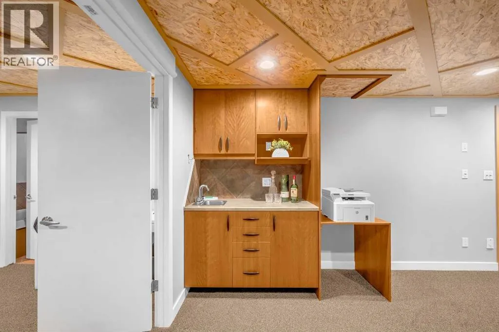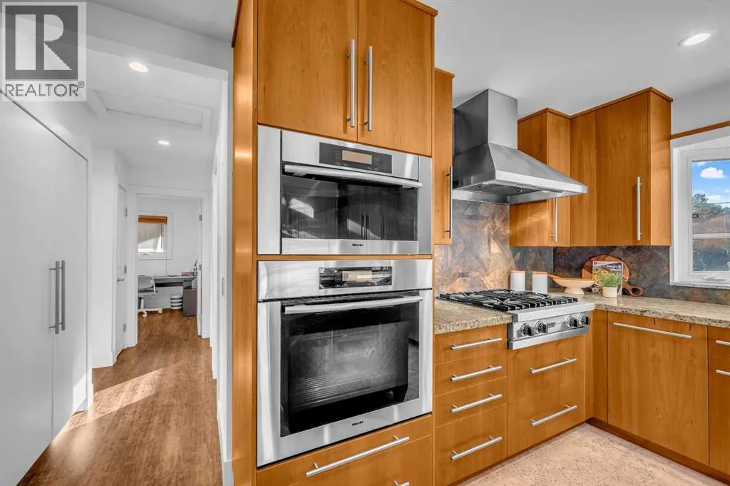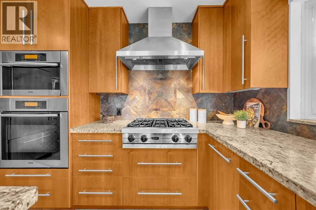 Welcome to this exquisitely renovated bungalow situated in the prestigious Willow Park community, conveniently located near the Willow Park Golf Club. This property encompasses an expansive lot with a west-facing backyard, featuring zero-maintenance landscaping that includes stamped concrete walkways, an aggregated stone front patio, artificial turf, and custom decorative concrete curbing, valued at $100,000.The home boasts a dream kitchen equipped with custom-built cabinetry, under-cabinet lighting, top-of-the-line Miele stainless steel appliances, including a steam oven and convection oven, a Viking gas range with a stainless steel range hood, a Sub-Zero refrigerator, a dishwasher, a garbage disposal, an instant hot water tap, a purified water tap, granite countertops, a pantry, an island, and heated tile flooring, all valued at over $70,000. The main floor is complemented by LED recessed lighting, upgraded interior doors, beautiful flooring throughout, and a four-piece bathroom featuring a jetted soaker tub/shower combination and a low-flush toilet.The home includes two bedrooms and a master retreat with a vaulted ceiling in the addition, which features a large built-in wall closet and a private ensuite with a spacious tiled shower, granite countertops, and a low-flush toilet. The main floor also offers a large living room, dining room, and ample closet space. Relax by the gas fireplace in the basement rec room, which includes a wet bar area. A large fourth bedroom with a spacious built-in wall closet and another beautiful four-piece bathroom with a jetted soaker tub large enough for two, a low-flush toilet, heated tile floors, and an oversized tiled shower complete the basement. The basement offers versatile options, suitable for additional living space or as a reconfigurable basement suite(illegal), with a kitchen area already in place, including a refrigerator, cabinets, and sink.Recent upgrades include central air conditioning (2019), a high-efficiency furnace (2016), a 75-gallon hot water tank (2024), a water softener (2025), a roof-shingles (2016), new blown-in attic insulation (2016), upgraded front and rear exterior doors , LED lighting throughout the home and garage, redone and painted stucco (2016), triple-glazed windows on the main level, double-glazed basement windows, and professional window tinting installed in 2020, providing privacy and reducing heat in the summer ($5,000 value).The property also includes an oversized double-car garage (25âx28â) built in 2002, accommodating three vehicles, featuring epoxy flooring (2016), full insulation, heating with 220 wiring, and two additional outdoor paved parking stalls with paved back alley access, along with a matching custom-built, oversized shed in the backyard. A must view property. (id:27476)