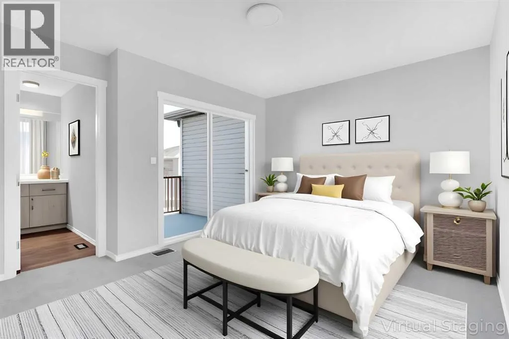 You are invited to view this Never occupied, absolutely Brand New and Freehold (No Condo Fee) Townhome equipped with Solar Panels that has it all- Front Porch, very practical layout of the living, dining and kitchen as large as some detached homes, a large mudroom with inbuilt shelves and coat hooks leading to a large powder room and the best of all- A double attached Garage adding much needed convenience over the winters to come. Upstairs: Owner's suite that consists of a large bedroom with attached balcony, a true walk-in closet and a 4 pc ensuite. There are two more Bedrooms that can all fit king sized bed, another common 4 pc bath and a must have 2nd level laundry. The home is sunlit all day due to the exposure and the evergreen finishes. There's a fence across the back alley separating the rear lane from the homes behind, for a nice clean access to the garage. Come and check it out today! (id:27476)