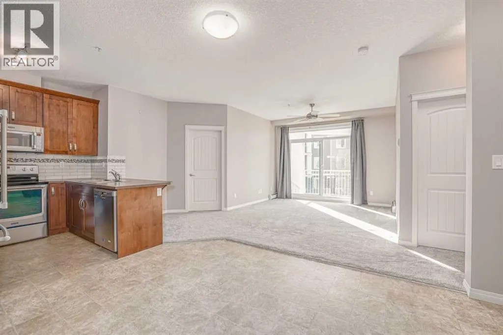 Beautifully updated unit facing into the courtyard, this 2-bedroom, 2-bathroom condo has been meticulously maintained. Recently refreshed with new paint and plush carpet, this bright and airy unit features an open layout, 9-foot ceilings, incredible south-facing windows with views overlooking the courtyard. The thoughtful layout includes a spacious living room and upgraded kitchen perfect for entertaining or just enjoying some quiet time along with the convenience of in-suite laundry. This unit comes complete with a titled underground parking stall and an assigned storage locker conveniently located right in front of the parking stall, making organization a breeze. All this in a well managed complex and walking distance to multiple parks, schools and Cranston Ridge pathways, connecting you to miles of walking trails. With quick and easy access to Deerfoot Trail, Stoney Trail, shopping, schools, and the South Campus Hospital, this prime location offers unparalleled accessibility to everything you need. (id:27476)