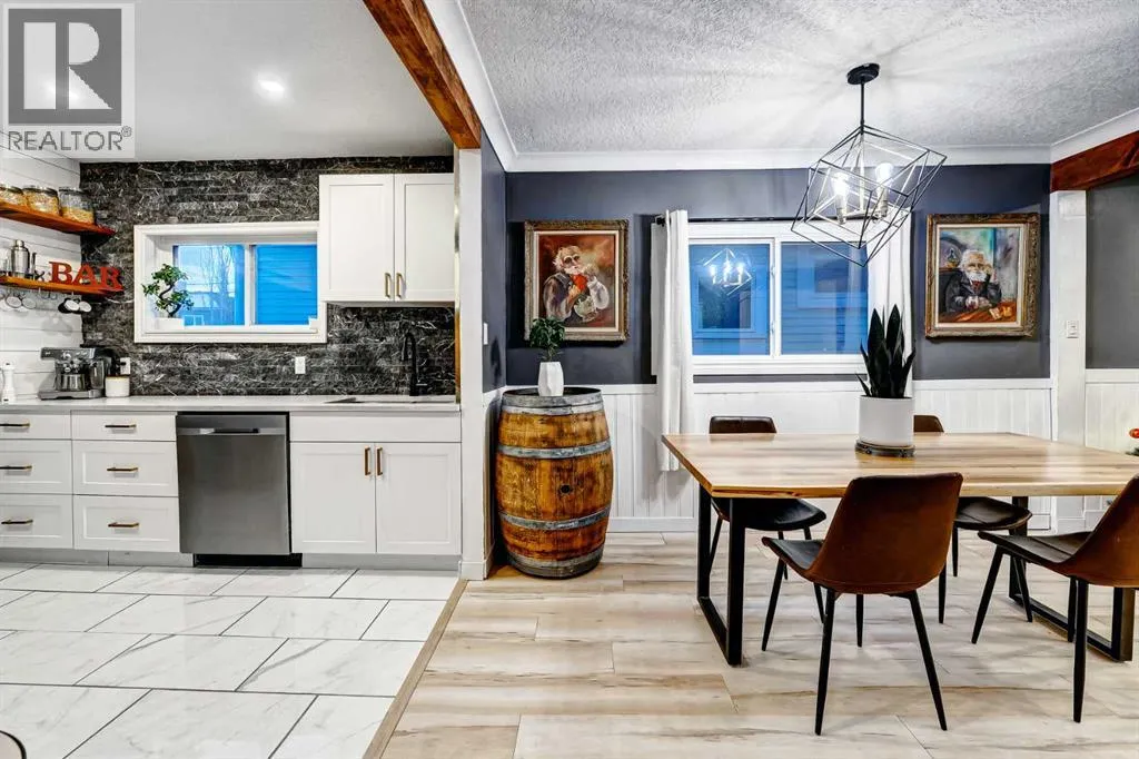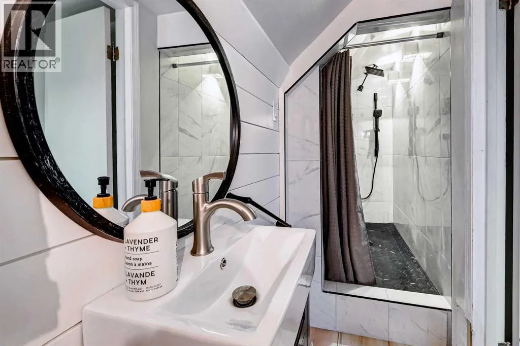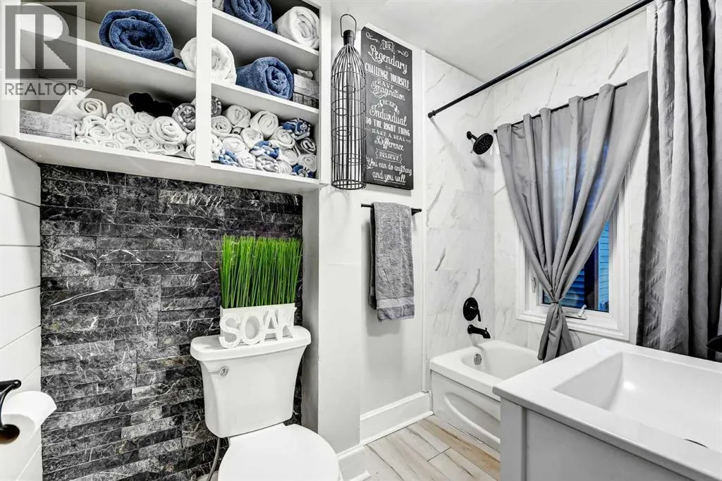 A renewed opportunity after a previous buyer was unable to secure financing! MC zoning introduces versatility and long-term value in this beautifully updated, move-in-ready character home set in the heart of Marda Loop. Investors appreciate the redevelopment potential on an increasingly sought-after corridor, business owners gain a rare chance to live and operate in a walkable commercial hub and families enjoy the charm, comfort and function of a single-family home with a remarkable outdoor living space. Character from the original 1914 build adds warmth through wide profile windows, preserved wood elements, exposed brick and thoughtful architectural details that pair seamlessly with extensive modern upgrades. A welcoming entry sets the tone with shiplap and wide luxury vinyl plank flooring that flows into a relaxing living room framed by an exposed wood beam and elegant wainscotting. The dining area sits beneath striking designer lighting and blends easily into a renovated kitchen finished with quartz counters, full-height tile, stainless steel appliances, fridge with a French door, a gas stove and updated white shaker cabinetry for everyday ease. An adjacent family room enhances daily comfort with an electric fireplace and tranquil views of the backyard from oversized windows, creating a natural spot for unwinding. This level includes a main floor bedroom and a 4-piece bathroom for flexible main-floor living. Two additional bedrooms rest on the upper level along with a stylish, recently renovated 3-piece bathroom with modern black hardware. The basement provides valuable bonus space for a gym, play area and storage with easy access to mechanical systems and exterior storage beneath the rear addition. Recent improvements introduce durability and peace of mind, including a high efficiency furnace (2022), hail resistant asphalt shingles (2022), acrylic stucco (2022), vinyl plank flooring, new paint, updated PEX piping and a fully renovated kitchen (2023). Outdoor liv ing is unmatched with an extra deep fenced yard designed for hosting, complete with ornamental grasses, a deck for barbecuing and an incredible covered entertainment pavilion (2023) with lighting and lounge space that extends the seasons. Privacy and security come through with the newly built fence fully encompassing the yard and thoughtful landscaping that frames the yard beautifully. This location places you within minutes of the shops, cafes and amenities of Marda Loop, close to schools, parks, transit and quick routes into downtown, Altadore, South Calgary and the river pathway system. A rare combination of historic character, modern comfort and multi-use flexibility (great holding property) creates meaningful opportunities for a wide range of buyers! (id:27476)