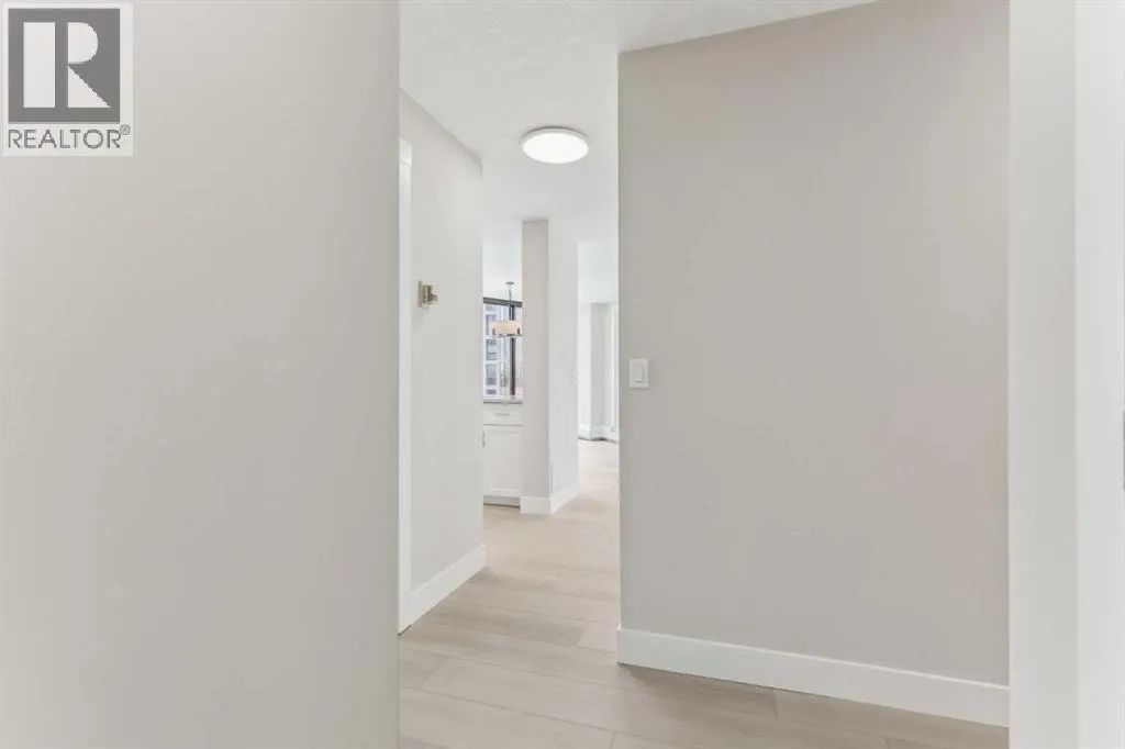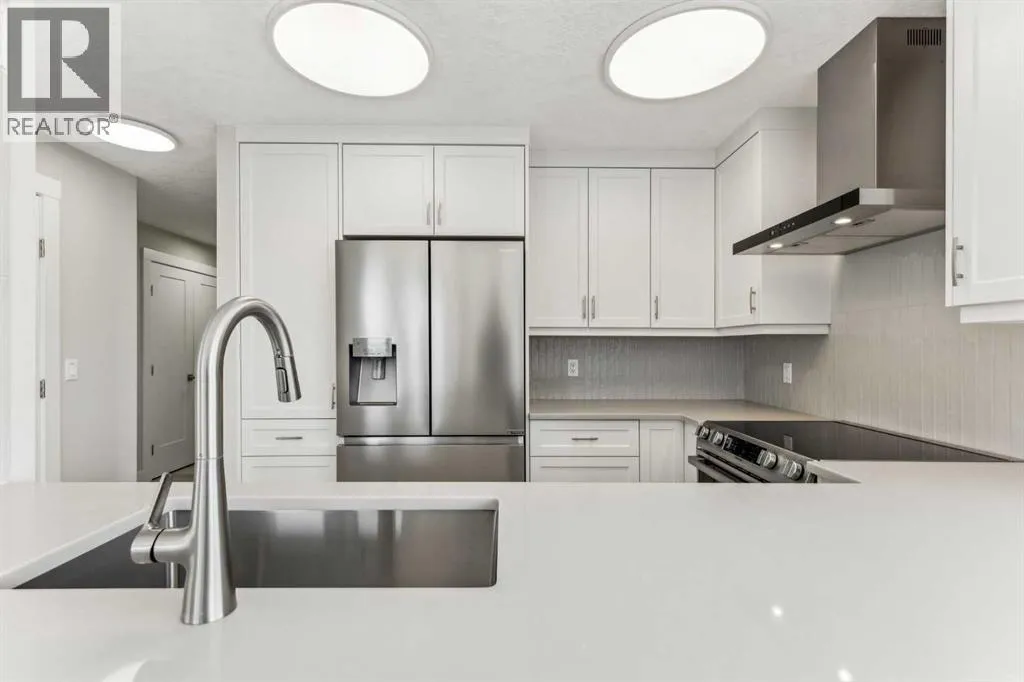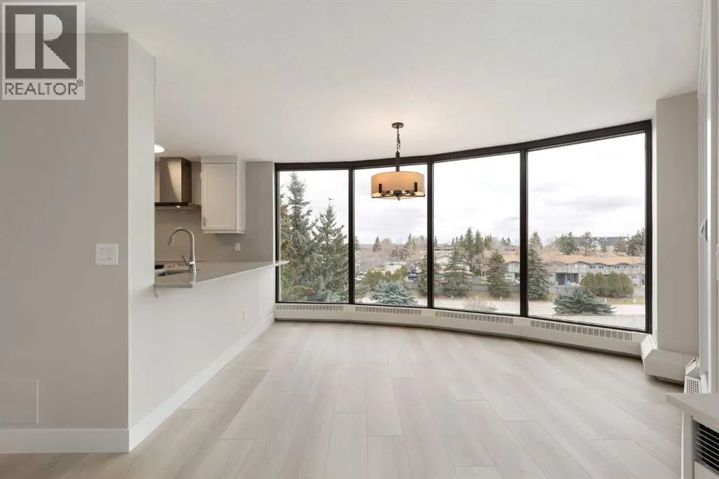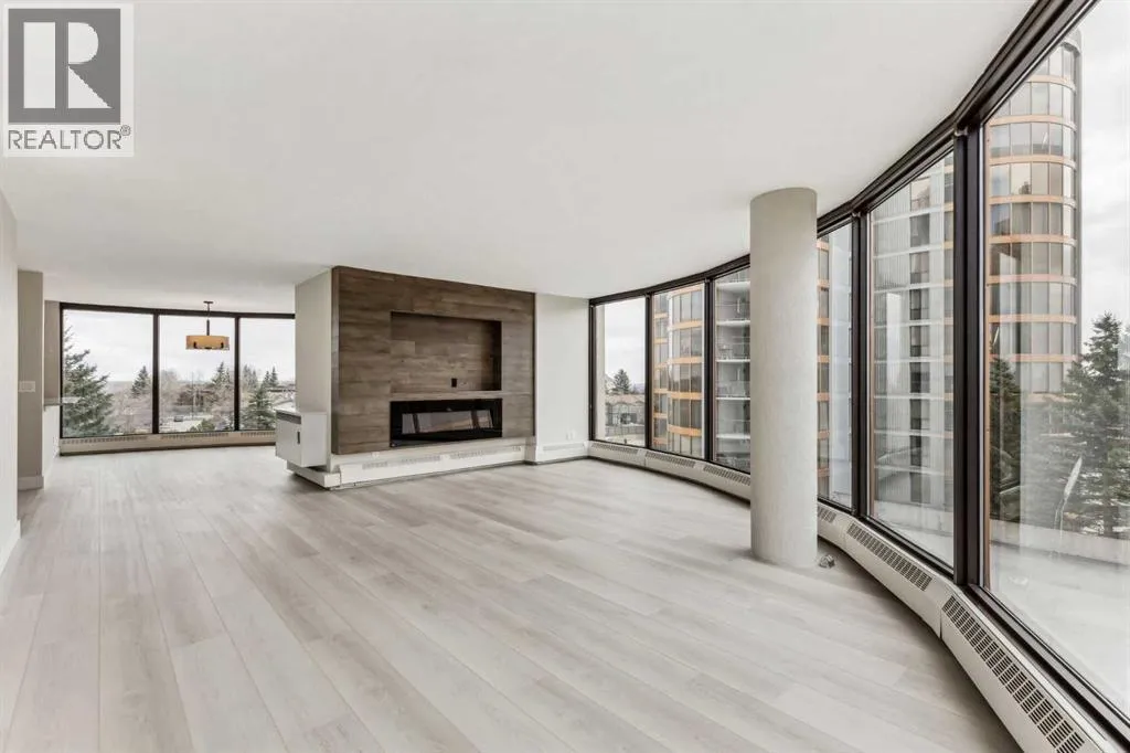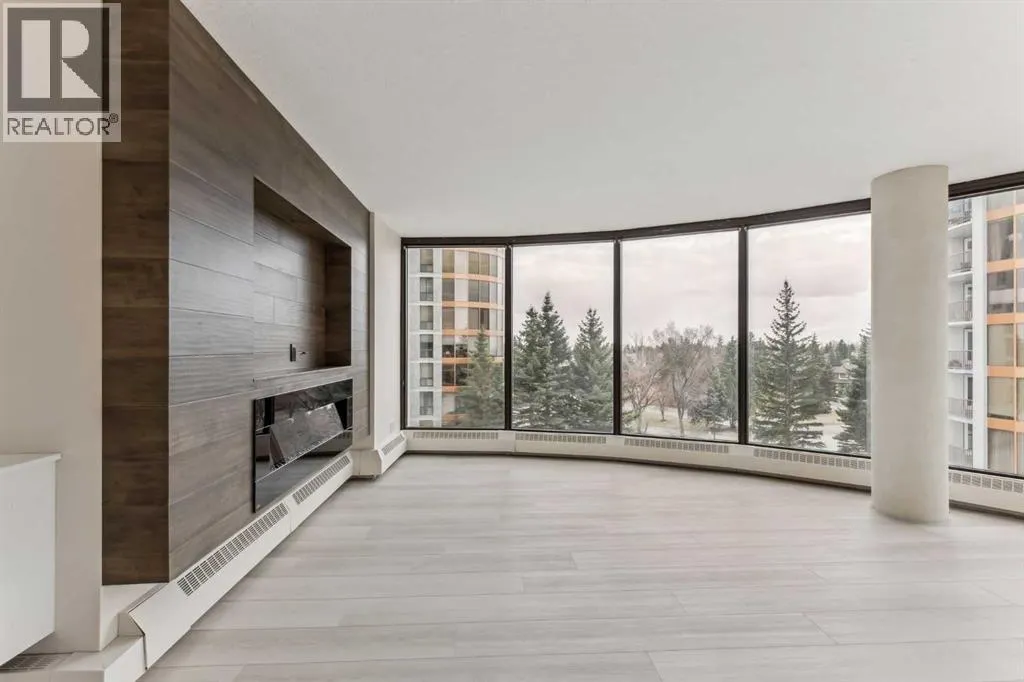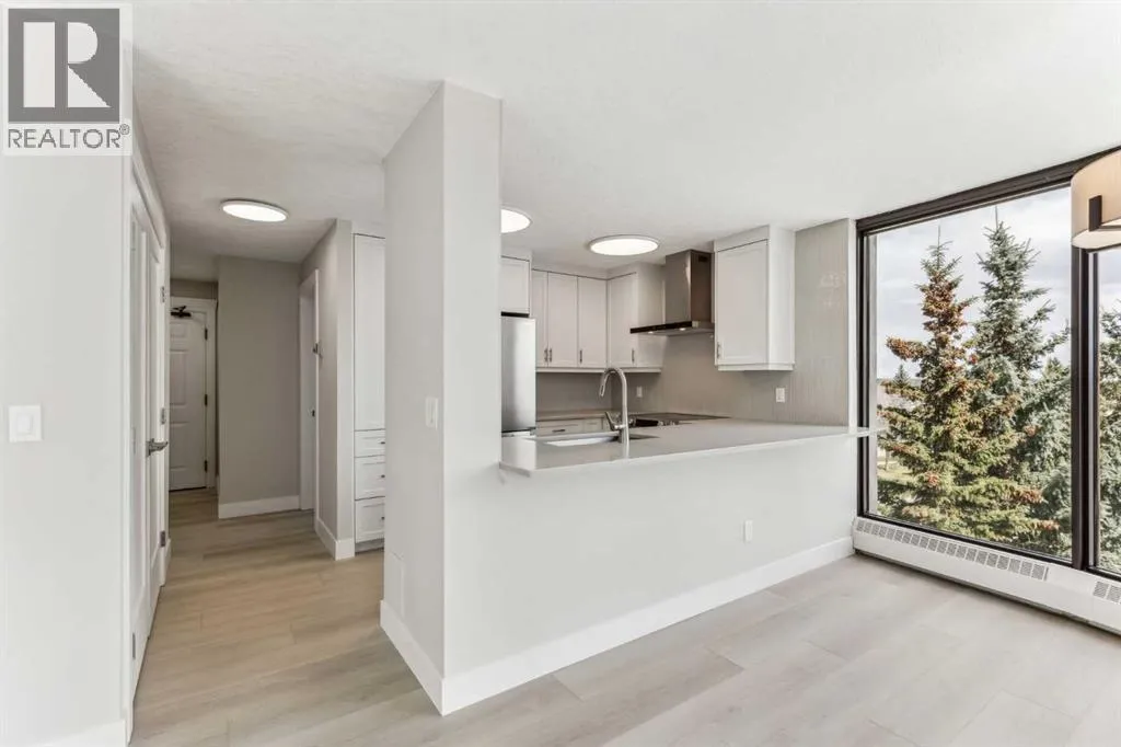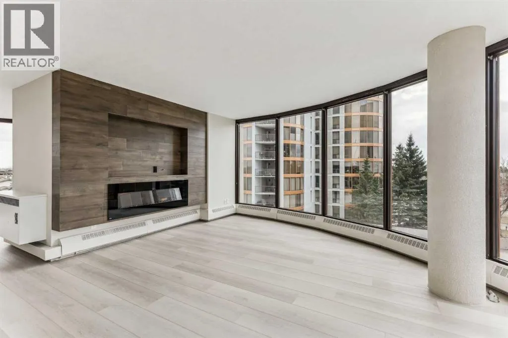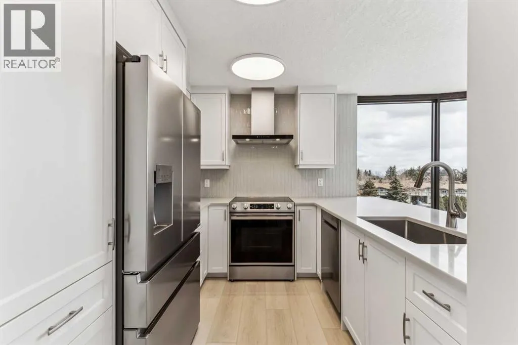 Impressive adult living 18+ COMPLETELY RENOVATED top to bottom 5th floor condo with exceptional workmanship and finishing in the exclusive Odyssey Towers of Coach Hill, with only four units per floor. Enjoy panoramic views from the floor-to-ceiling curved windows in this beautifully appointed 1178sq ft, bright and open floor plan. The condo features a CUSTOM KITCHEN, two bedrooms, an updated bathroom with a walk-in shower, in-suite laundry with a sink, a large in-suite storage room, and a generous-sized balcony. Renovations include a custom kitchen, vanities with quartz throughout, a complete stainless steel appliance package, air conditioning, a stunning feature wall with a built-in electric fireplace, new flooring throughout (luxury vinyl plank, and carpet), a new laundry sink, a wall-to-wall walk-in shower, knockdown textured ceilings throughout, upgraded plumbing and electrical, and much more. There are two parking stallsâone secured underground and a second convenient outdoor stall, as well as ample visitor parking. Amenities include a personalized building manager, a guest suite in each building for overnight guests, a sauna/steam room, a resident's club, beautifully manicured green spaces and gardens, and a very well-managed and maintained complex. Enjoy maintenance-free living in one of Calgary's premier adult living communities! Conveniently located within minutes to the bus stop/direct line to West Side LRT Station, Ambrose University, Rundle College, West Side Rec Center, parks, pathways, restaurants, and less than fifteen minutes to downtown. Quick possession and move-in ready! (id:27476)
