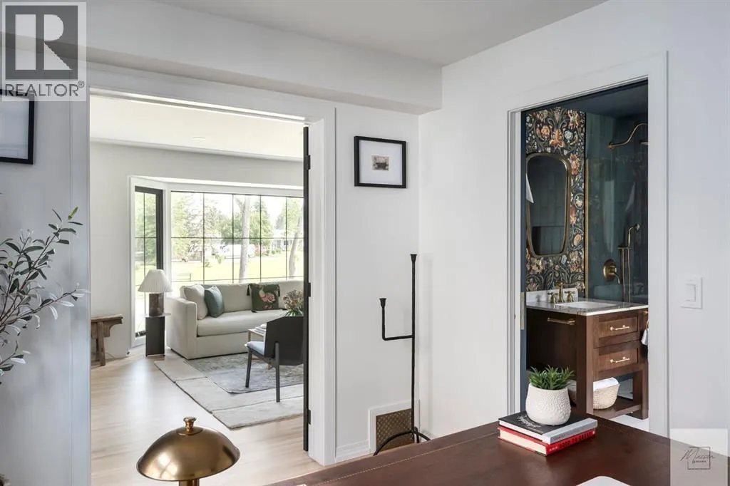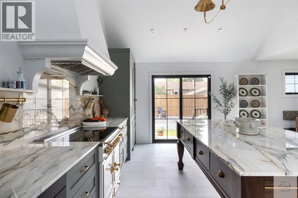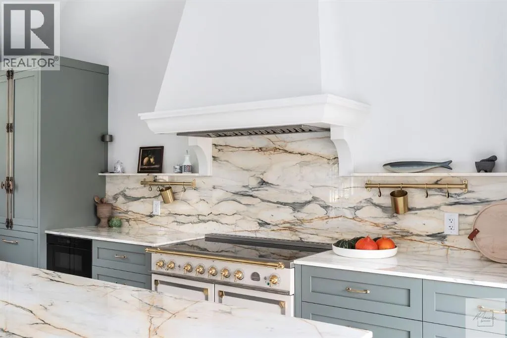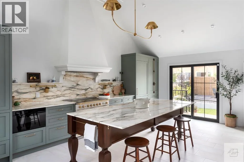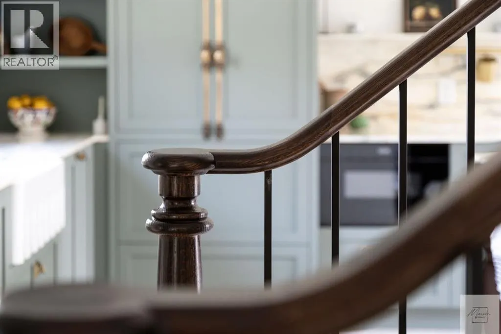 Wow! This stunning completely renovated two storey home has over 3,000 sq ft of total living space and sits on a full size estate lot designed with exceptional and sophisticated taste that will be sure to leave a lasting impression. One of the most anticipated homes to come to market, this executive home stands out from all the rest and is crafted by design firm Maison Artisanal in a forever dream location. Upon entry you are greeted with a modern & old world charm elegance, exceptional details of designer features, custom front door, flat ceilings with custom mouldings, tile + original oak flooring, black framed LUX windows, bright + open contemporary living area w/ a soothing fireplace with imported Louis XV marble surround, front office or bedroom or flex room, hardwood encased stairwell with custom hand crafted railings, large dining room with custom bench seating, designer lighting with transom window poised to host many dinner nights with friends + family enjoying the sculpted interior lines of the show stopper magazine quality kitchen with oversized full height chimney reaching the full height vaulted ceilings with open gable, full Paonazzo imported marble slab island (5 slabs total) with dairy table island with cup pull antique brass handles, shaker cabinetry with Broughtons of Leicester hardware, Gaggenau panel fridge, imported 43' La Cornue induction stove, loads of marble counter space, high end fixtures, Fisher Paykel drawer microwave, double drawer dishwasher, drawer freezer, great storage & fabulous pot lighting! You will enjoy the mudroom with built-in lockers, and at the end of the hall is a spectacular 3 pc washroom with exceptional quality details and shower. Upstairs has a overlook to the kitchen, primary vintage chic suite with fireplace, large spacious walk-in closet with custom closet builtins + steam closet, a luxurious spa ensuite with custom shower w/ 10 mm glass, imported tile, soaker tub, modern fixtures, gorgeous double walnut vanity, and heated tile floors with towel rack. Across the hall is a large second bedroom with good closet space and high end 4-piece Jack + Jill washroom with designer lighting and tile that meets the other spacious bedroom plus upper laundry. Lower area features a fully finished entertainers dream space that hosts a recreation area with custom builtin bench seating, amazing custom bar with full size wine fridge, brass inlay, gym, family fun games area, second laundry area, 3 piece washroom, large storage, spacious 5th bedroom with egress windows, and high end mechanical. While you are taking it all in donât miss the upgrades such as the landscaping, custom composite exterior, EV charger, rough-in AC/ solar panel, sumps pump, HRV, cat 6 throughout, high end roof + windows + access to your new oversized double car garage, over 55k appliance package, west facing yard with deck, huge front concrete patio overlooking greenspace, original oak floors, built-ins, estate level finishing & so much more! A must to see! (id:27476)