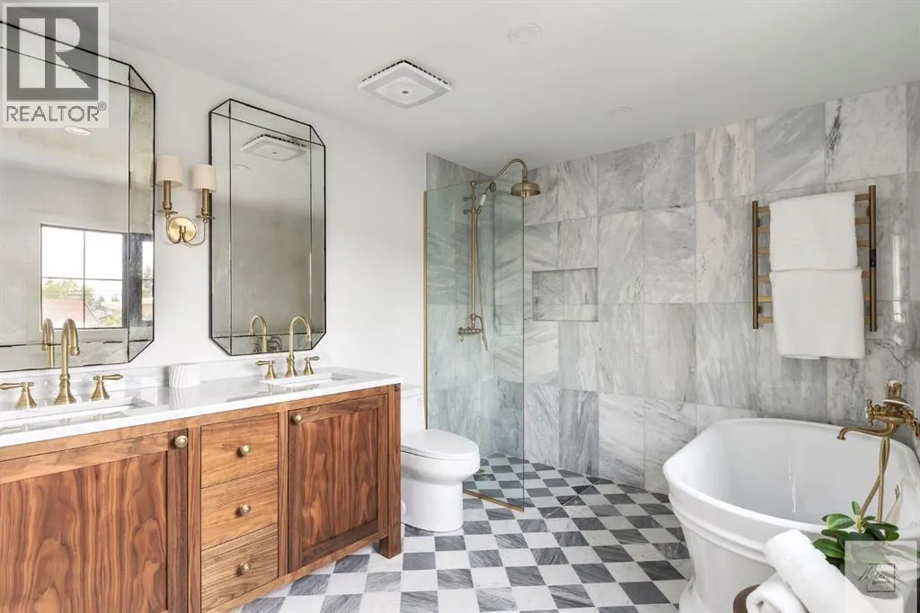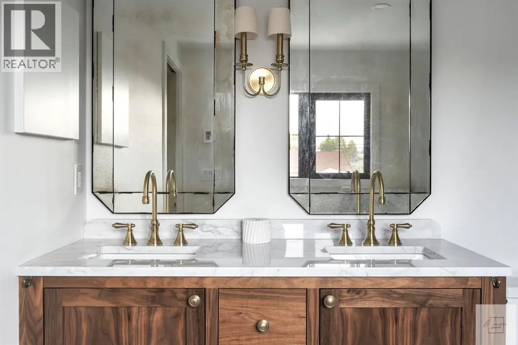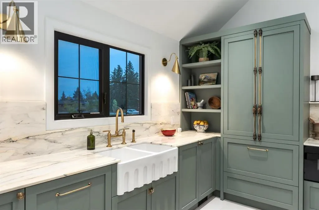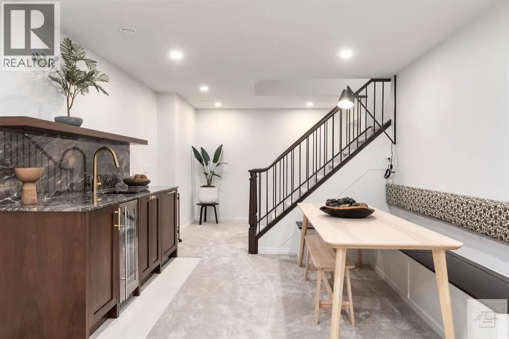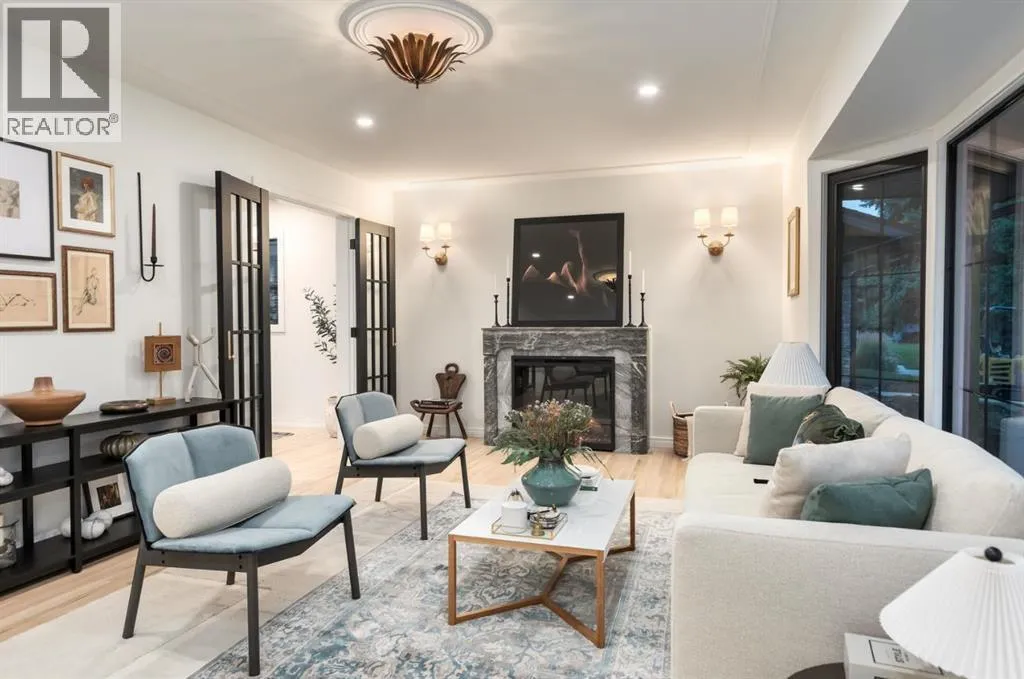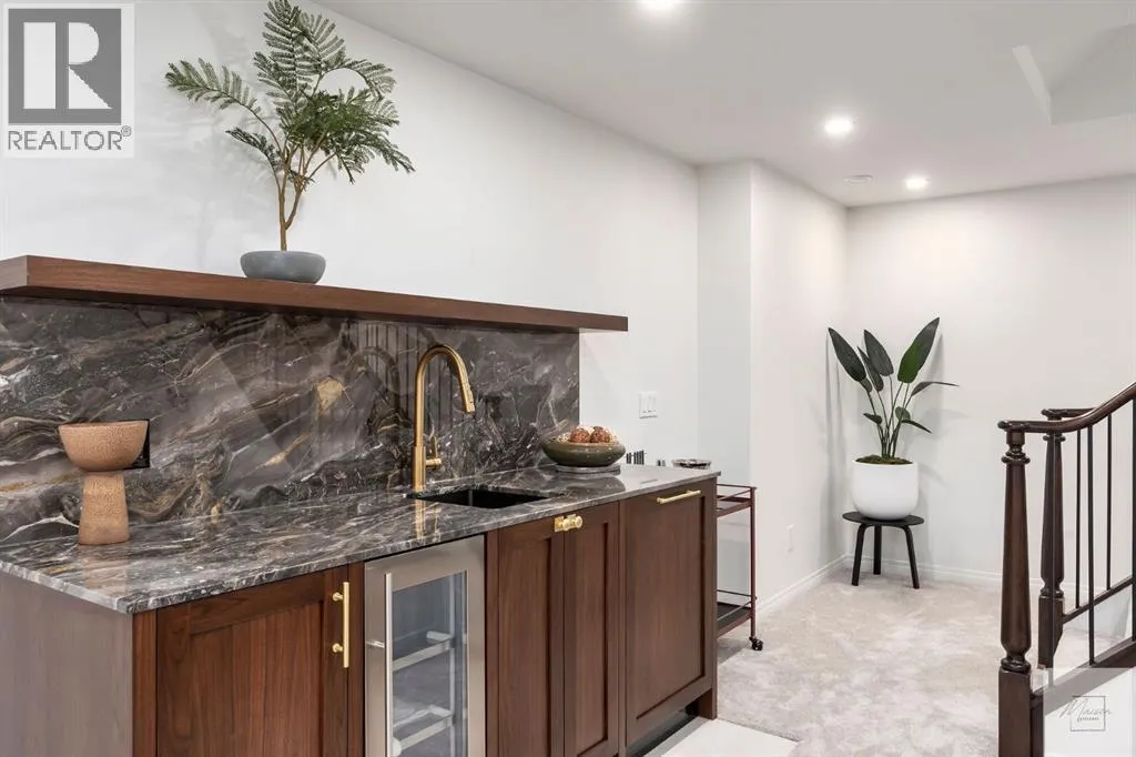 Wow! This stunning completely renovated two storey home has over 3,000 sq ft of total living space and sits on a full size estate lot designed with exceptional and sophisticated taste that will be sure to leave a lasting impression. One of the most anticipated homes to come to market, this executive home stands out from all the rest and is crafted by design firm Maison Artisanal in a forever dream location. Upon entry you are greeted with a modern & old world charm elegance, exceptional details of designer features, custom front door, flat ceilings with custom mouldings, tile + original oak flooring, black framed LUX windows, bright + open contemporary living area w/ a soothing fireplace with imported Louis XV marble surround, front office or bedroom or flex room, hardwood encased stairwell with custom hand crafted railings, large dining room with custom bench seating, designer lighting with transom window poised to host many dinner nights with friends + family enjoying the sculpted interior lines of the show stopper magazine quality kitchen with oversized full height chimney reaching the full height vaulted ceilings with open gable, full Paonazzo imported marble slab island (5 slabs total) with dairy table island with cup pull antique brass handles, shaker cabinetry with Broughtons of Leicester hardware, Gaggenau panel fridge, imported 43' La Cornue induction stove, loads of marble counter space, high end fixtures, Fisher Paykel drawer microwave, double drawer dishwasher, drawer freezer, great storage & fabulous pot lighting! You will enjoy the mudroom with built-in lockers, and at the end of the hall is a spectacular 3 pc washroom with exceptional quality details and shower. Upstairs has a overlook to the kitchen, primary vintage chic suite with fireplace, large spacious walk-in closet with custom closet builtins + steam closet, a luxurious spa ensuite with custom shower w/ 10 mm glass, imported tile, soaker tub, modern fixtures, gorgeous double walnut vanity, and heated tile floors with towel rack. Across the hall is a large second bedroom with good closet space and high end 4-piece Jack + Jill washroom with designer lighting and tile that meets the other spacious bedroom plus upper laundry. Lower area features a fully finished entertainers dream space that hosts a recreation area with custom builtin bench seating, amazing custom bar with full size wine fridge, brass inlay, gym, family fun games area, second laundry area, 3 piece washroom, large storage, spacious 5th bedroom with egress windows, and high end mechanical. While you are taking it all in donât miss the upgrades such as the landscaping, custom composite exterior, EV charger, rough-in AC/ solar panel, sumps pump, HRV, cat 6 throughout, high end roof + windows + access to your new oversized double car garage, over 55k appliance package, west facing yard with deck, huge front concrete patio overlooking greenspace, original oak floors, built-ins, estate level finishing & so much more! A must to see! (id:27476)