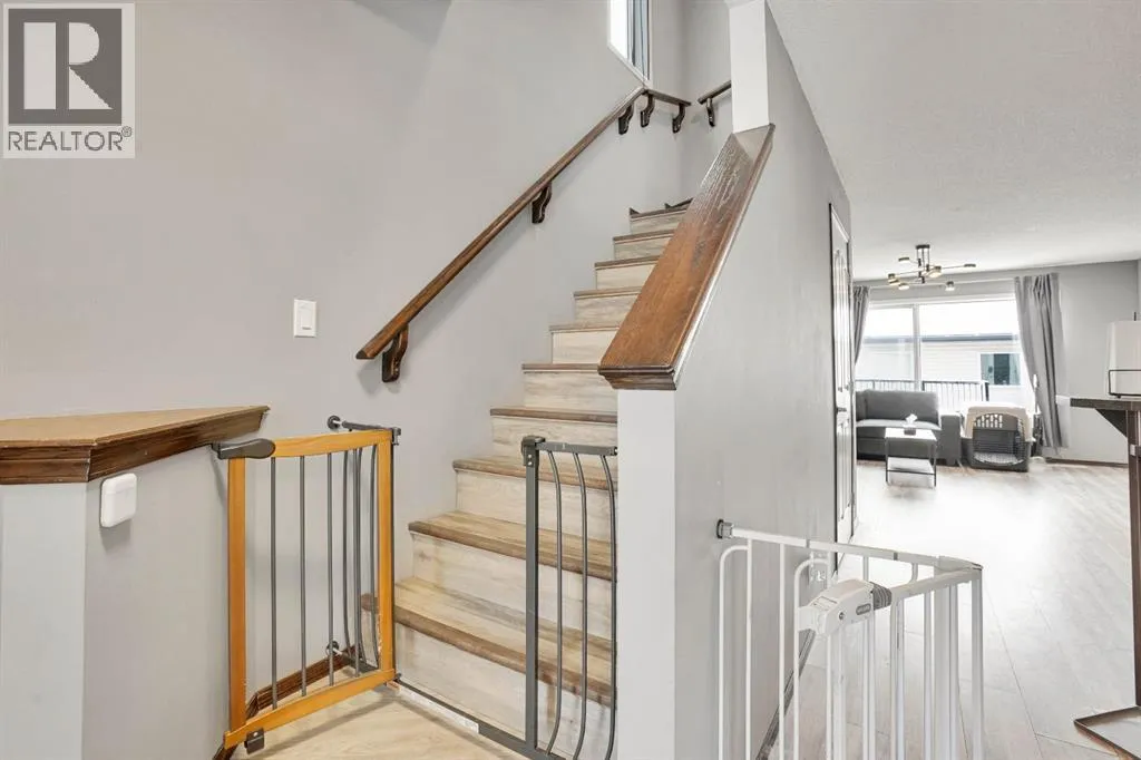 Welcome to 210 Cranberry Place SE, a charming and updated home in the heart of Cranston â just steps from parks, schools, shopping, public transit, and the community center. This well-maintained property offers great curb appeal and a sunny, south-facing backyard complete with a large L-shaped deck, a spacious shed, and a insulated double detached garage for added convenience. Inside, you'll find a bright, open-concept main floor with a front flex room thatâs perfect for a home office or quiet reading space. The kitchen is well laid out with a center island and eat-up bar, a pantry, and all appliances have been replaced within the past year. The living and dining areas flow nicely together, and a 2-piece bathroom completes the main level. Upstairs offers a generous primary suite with a walk-in closet and full 4-piece ensuite, plus two additional bedrooms connected by a Jack & Jill bathroom. The laundry is conveniently located on this level as well. The developed basement includes two additional rooms that could function as bedrooms (note: no closets), a rec space, and a dedicated dog grooming room equipped with two grooming stations and a washing machine â all of which can be included in the sale or removed at the buyerâs request. This is an excellent opportunity to own a move-in ready home in one of Calgaryâs most family-friendly communities. Book your showing today! (id:27476)