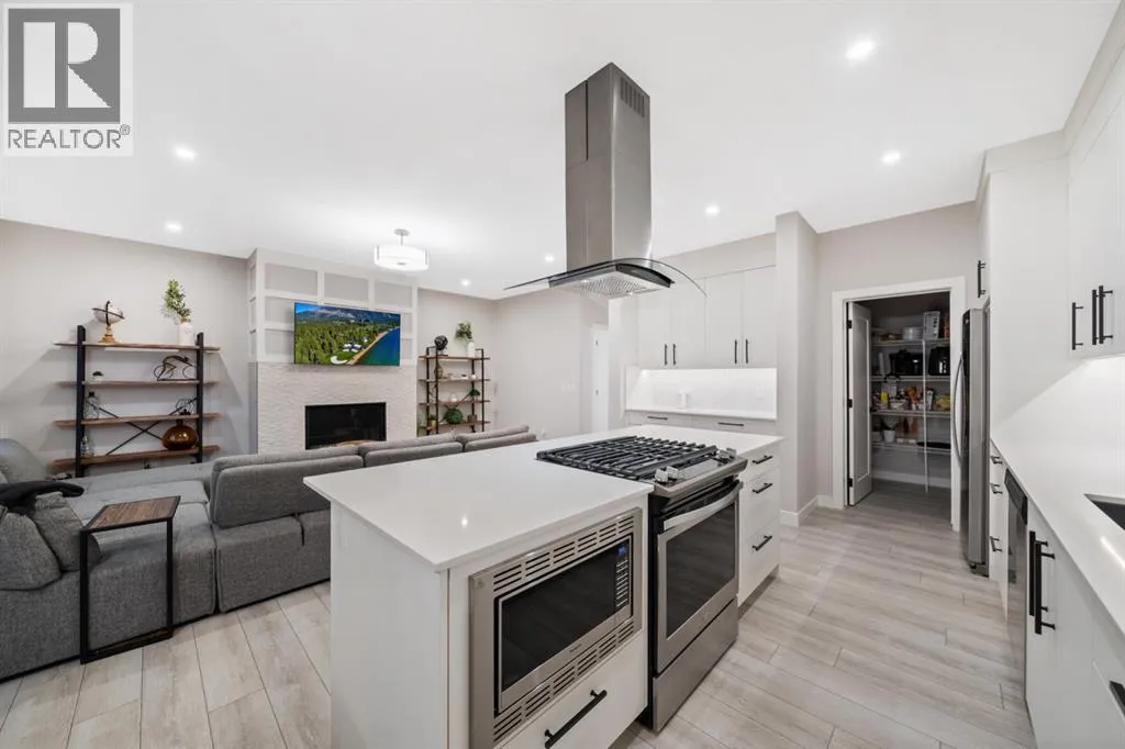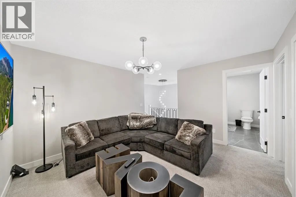 Experience elevated luxury living in the prestigious NW community of Carrington. This stunning custom Truman-built home offers 2,340 sq. ft. of refined living space, showcasing timeless design, exceptional craftsmanship, and premium upgrades throughout. The open-concept main floor features 9-foot ceilings, abundant natural light, and a chef-inspired gourmet kitchen with gas range, chimney hood fan, marble backsplash, oversized island, and under-cabinet lighting. The elegant living room is anchored by a gas fireplace, creating the perfect space for entertaining. A main-floor bedroom with a full 4-piece bath adds rare flexibility for guests or multigenerational living. Upstairs, enjoy four spacious bedrooms, a bonus/family room, upper-level laundry, and two full bathrooms, including a luxurious primary retreat with a spa-like 5-piece ensuite and walk-in closet. Meticulously maintained and in prestige condition, this exceptional home blends luxury, comfort, and functionality in one of NW Calgaryâs most sought-after communities. A rare opportunity not to be missed. (id:27476)